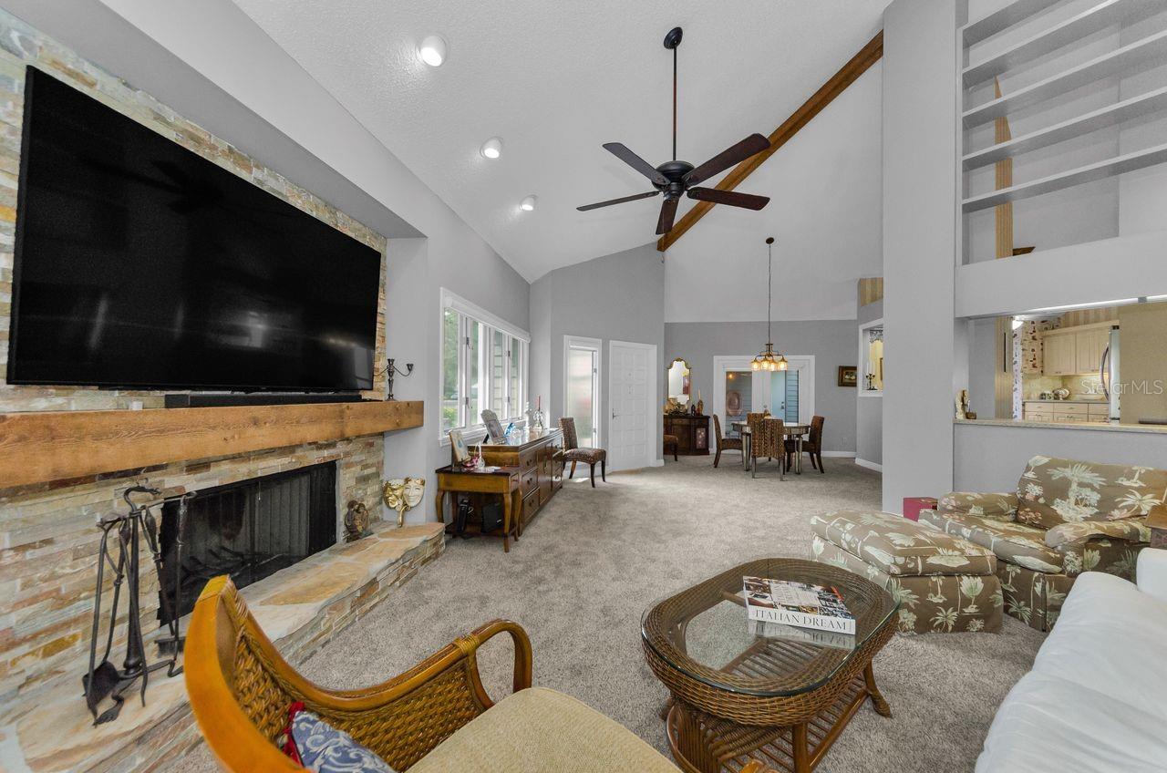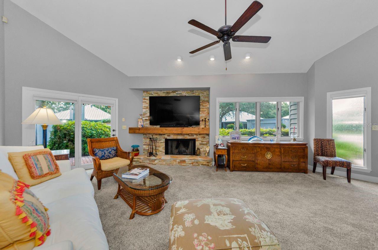 The Arbors at Bardmoor is a charming community with only 20 homes; this lovely property has a NEW METAL ROOF AND AIR CONDITIONER!. This spacious home has three bedrooms, two full baths, lovely stacked stone fireplace in the great room, A TWO CAR GARAGE, huge back yard and NO FLOOD ZONE AND LOW HOA, $265.MO. This elegant community has all metal roofs, private road and excellent location in the midst of Bardmoor Country Club North and the center the Pinellas County. Golf carts are welcome! This home offers a new dishwasher and 2023 water heater in addition to the new roof and a/c. Modern lines and bright natural light add to the open feel of this home! The back yard is huge and there is room to add a pool or lovely garden spot. There is a dining room adjacent to the living room and a spacious eat-in kitchen, plus many closets throughout and extra storage in the two car garage. Enjoy the evenings on your screened breezeway, which sits between the home and your two-car garage. The Arbors is known for it's distinctive architecture and it's ease of living. Pets are welcome and appreciated. The primary bedroom has ample closet space, a sliding door to a private patio and huge backyard. In the ensuite master bath you will enjoy the updated walk-in shower and soaking tub, plus double vanities. The other two bedrooms have either a walk in closet or an 8' closet with lots of natural light! The Arbors at Bardmoor is not in a flood zone and all utilities are underground. Rentals are not allowed; community rules. The corner shopping center in the Bardmoor Prominade has a Publix, Panera, Starbucks and many locally owned eateries! The Baycare Health facility within 1 mile is so convenient. Plus the beaches are 15 minutes to the west and the Tampa International Airport is only 25 minutes away. The perfect mid Pinellas county location to allow you to enjoy all of Tampa Bay! This home offers a new metal roof, A/C system, new dishwasher and 2023 water heater and tons of style for the discriminating buyer! Furnishings negotiable. Please confirm ANY information from 3rd party sites for accurate information. No Flood zone.