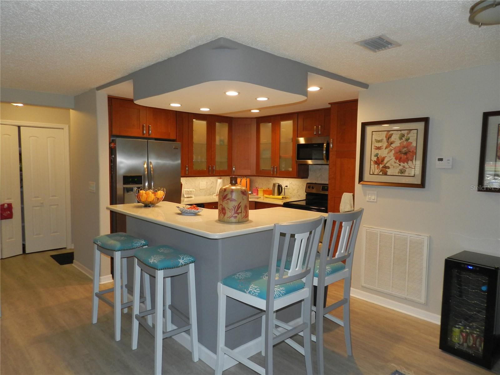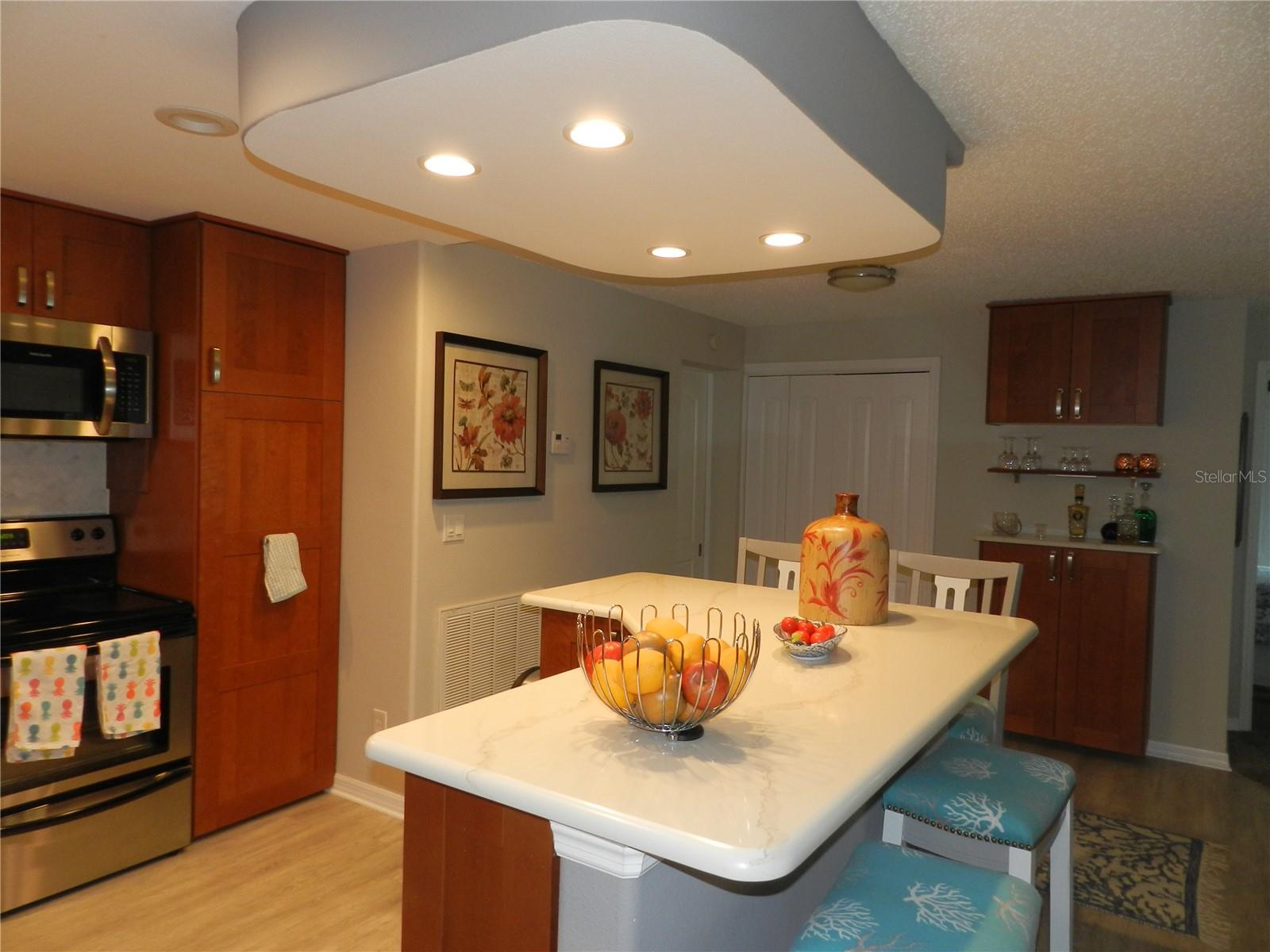 Completely updated 3 bedroom, 2 bath condo on the 1st floor. This end unit has been completely remodeled. Open kitchen with top line wood cabinets and solid surface counters. Stainless steel appliances, recessed lighting, breakfast bar and pantry. Spacious living room with plantation shutters throughout. Large master bedroom with a walk in closet, updated bath, vanity and shower. the two additional bedrooms have plenty of room and closet space. The dining room is light and bright with plenty of windows. Furnishings are negotiable. Threr are two covered parking spaces at your front door. This is one of three units that has its own private patio with a BBQ grill for entertaining, private parties and cookouts all just a few steps from the clubhouse and pool. The Gardens is Seminoles "Best Kept Secret. Resort style living at an affordable price. Located close to shopping, dining, medical, banking and a short drive to the Gulf Beaches. St Pete/Clearwater International Airport is approximately 20 minutes away and Tampa International Airport is approximately 25 minutes. The Seminole City Entertainment Center is a short distance from the Gardens. The Gardens offers a clubhouse with a kitchen, pool, pool table, laundry facilities, shuffelboard, tennis pickelball and bike racks. A great place to call home or as a vacation retreat. All room dimensions have been estimated. Buyer should measure rooms for exact sizes and verify all printed material herein.