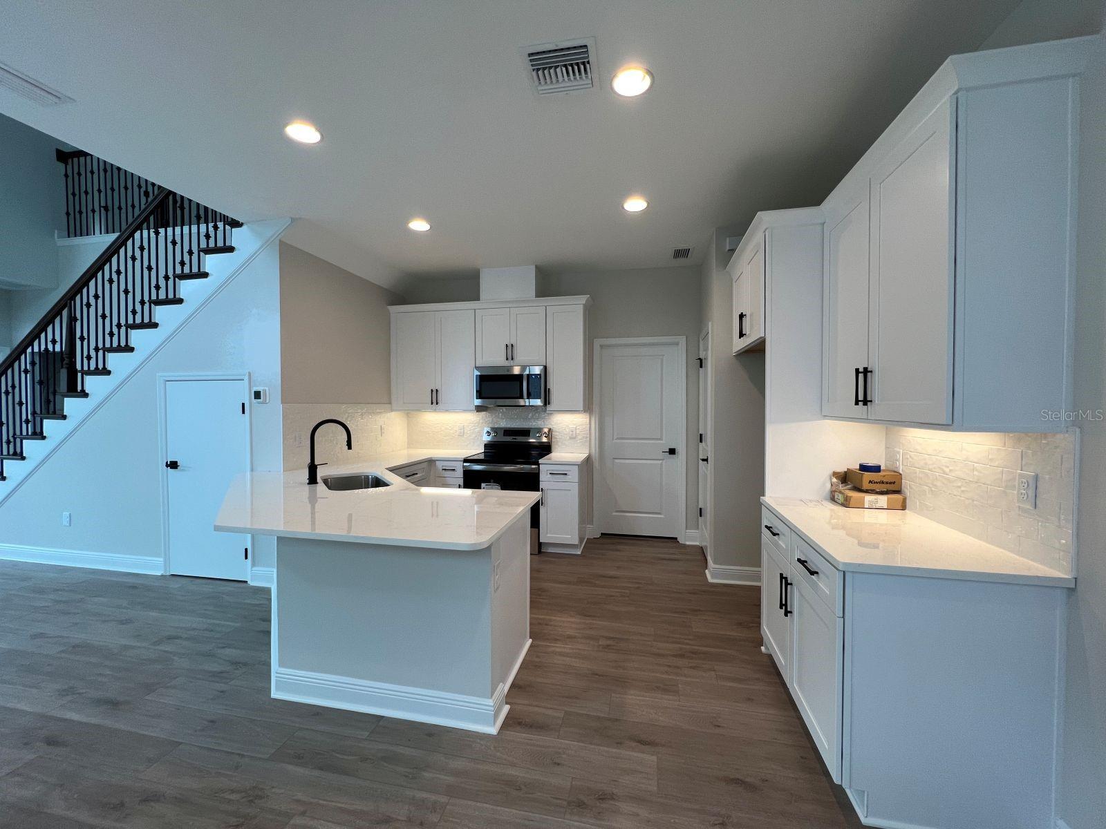 Under Construction. Highly sought-after end unit available for August/September occupancy. This 3-bedroom, 3.5-bath townhome offers a thoughtfully designed open floor plan with soaring ceilings, abundant windows that flood the space with natural light, and an elegant grand staircase. Primary suite conveniently located on the first floor, featuring his-and-her sinks, walk-in closet, and direct access to the covered lanai. Gourmet kitchen with tall light cabinetry, tile backsplash, contrasting hardware, stainless steel appliances, quartz countertops, and peninsula island layout. Spacious living room with direct outdoor access and powder room beneath the stairs. Second-floor loft overlooks the great room and seamlessly separates two guest bedrooms served by two full bathrooms. Premium luxury vinyl flooring throughout, 9'4" ceilings upstairs, and craftsmanship in every detail. The Towns at Long Bayou is an intimate, 34-home HOA community, offering upscale living with minimal upkeep. Lawn maintenance, exterior care, roof and pest control are included, and no flood insurance is required! Located just 2.5 miles from the Gulf Coast beaches, with easy access to Seminole City Center, Publix, Johns Pass Village, entertainment, dining, fitness centers, and more!