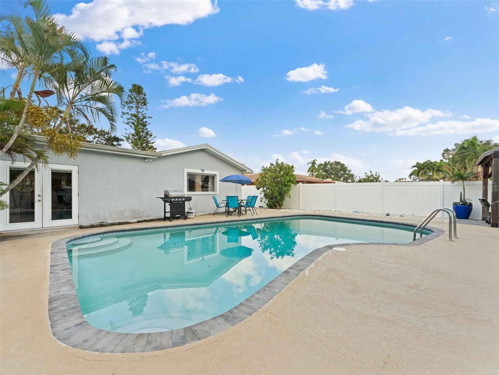 This beautifully maintained 4-bedroom, 3-bath, 2-car garage pool home offers over 2,400 sq. ft. of comfortable living in a highly sought-after Seminole school district. The split floor plan features two generous primary suites, each providing privacy and luxury—one overlooking the pool and the other with direct backyard access, dual walk-in closets, and a spa-inspired bath. The additional bedrooms share a thoughtfully updated bath, while the kitchen showcases granite countertops and modern appliances, seamlessly connecting to the formal dining room and great room with a granite bar—perfect for entertaining. Step outside to your fully fenced backyard oasis, complete with a sparkling pool, pergola, and covered pavilion, ideal for relaxing or hosting gatherings. Recent updates include a 2025 water heater, 2023 HVAC, fresh interior paint and new flooring in select bedrooms. Located just minutes from Gulf beaches, Pinellas Trail, Walsingham Park, and shopping, this home blends style, comfort, and convenience in one of Seminole’s most desirable neighborhoods. Schedule your private showing today!