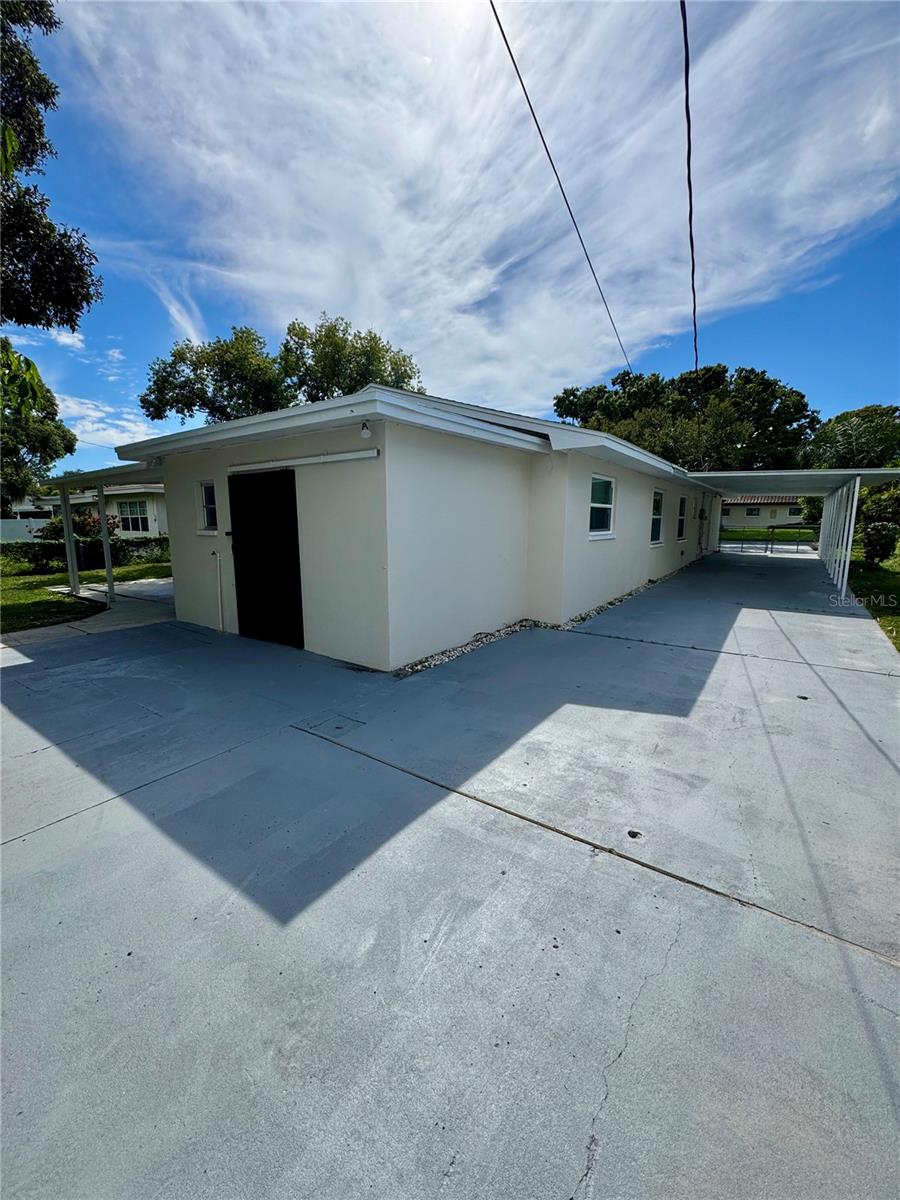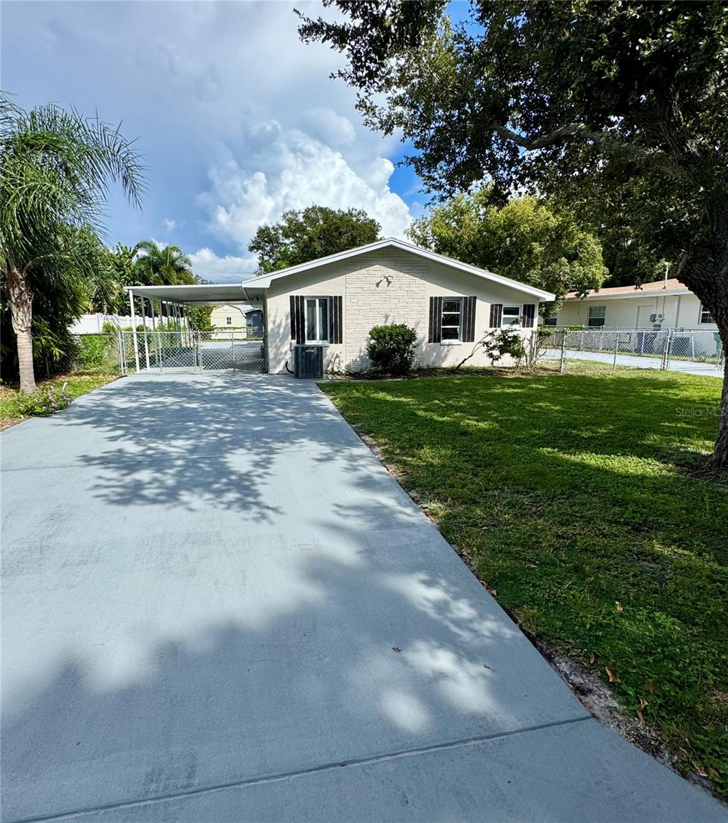 5 miles from the beach and not in a flood zone!? Sounds too good to be true but don't miss the chance to own this beautifully updated and unique home!! Turn-key ready with freshly painted exterior & interior, updated kitchen with brand new stainless steel appliances, new LVP flooring in bedrooms, and ceramic tile through the remainder of the home providing durability for years to come! Enjoy the ample parking with 2 separate driveways, one of which accommodates 3 cars in covered parking to keep things nice and cool on our hot Florida days! Completely fenced yard perfect for your furry friends! Need additional storage?? No problem. This home has not 1, not 2, but 3 separate storage rooms to meet all your needs! Sewer line replaced 2025, water heater 2022, AC 2016, and roof in 2013. Convenient to plenty of shopping and food destinations and the crystal blue waters of Indian Shores Beach.