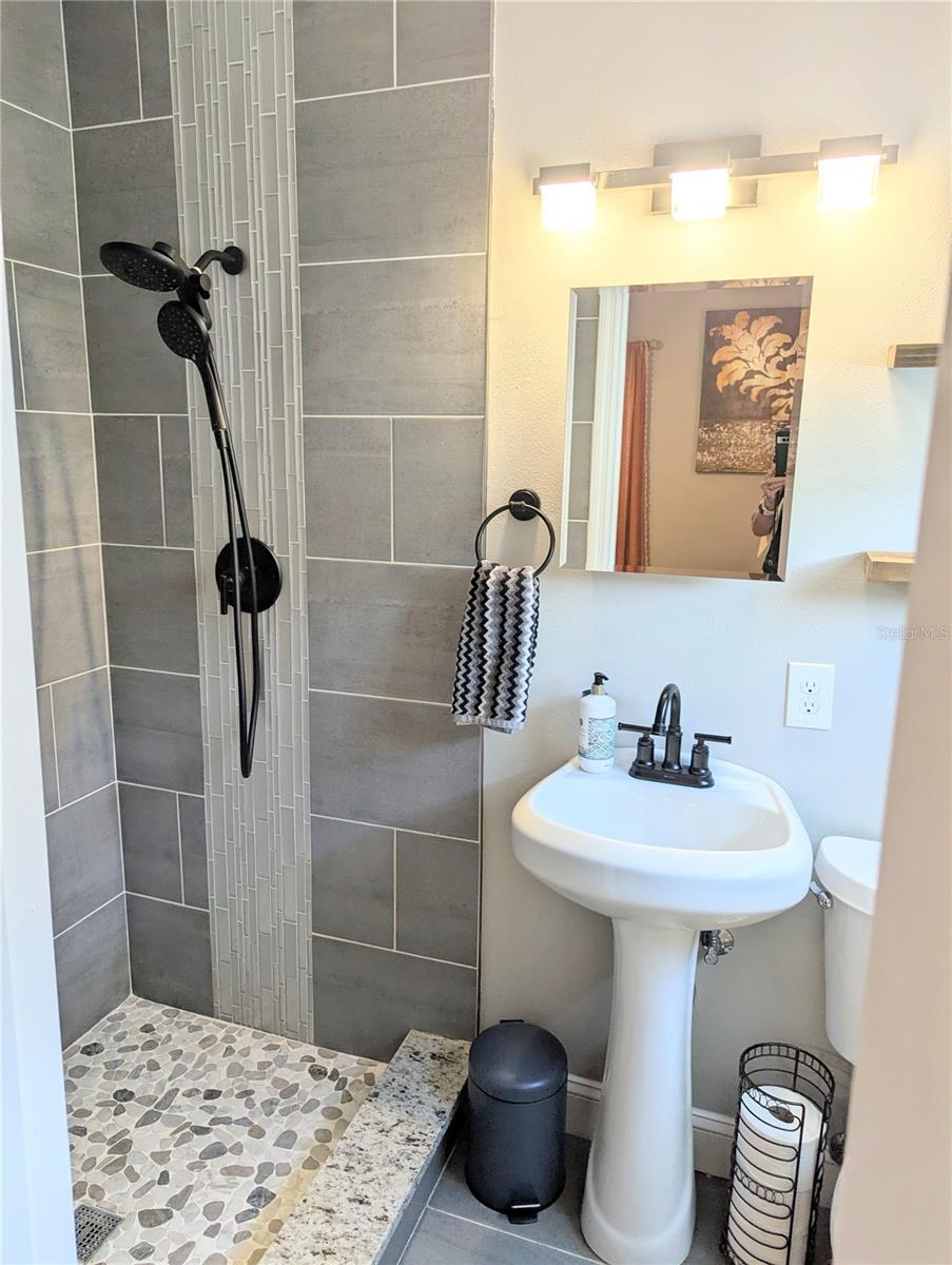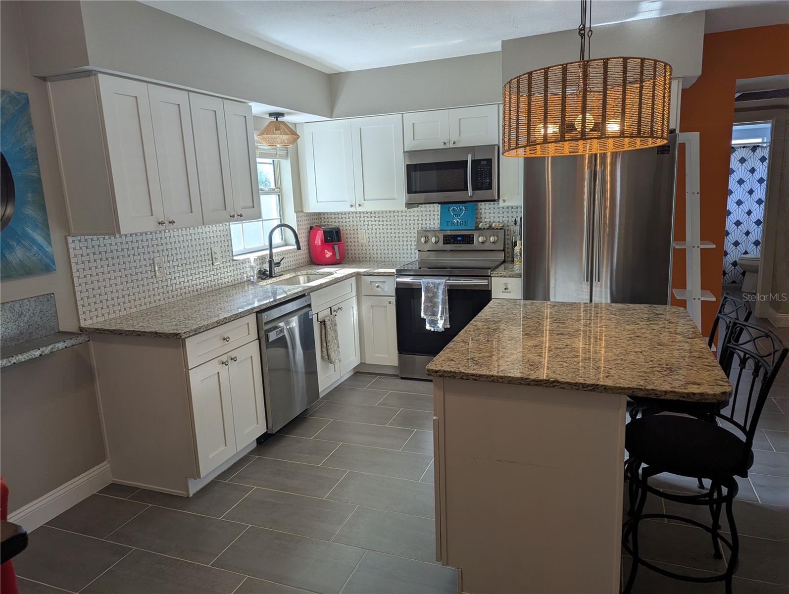 "Newly lowered price Stop by" Discover your dream home in Central Seminole, located in a safe non-evacuation zone! This updated 3-bedroom, 2-bath residence features fresh paint, modern light fixtures, stylish ceiling fans, and luxury vinyl flooring throughout. The kitchen boasts stainless steel appliances, granite countertops, soft-close cabinets, and a spacious island. The primary bedroom includes two closets and an upgraded bathroom, while two additional bedrooms provide ample space. The versatile garage, upgraded with luxury vinyl flooring and a heating/cooling window unit, can function as a garage or be converted into additional living space. A large laundry closet with a new stackable ThinQ washer and dryer is also included. Enjoy the expansive backyard equipped for entertaining, with an open porch and a cute shed for extra storage. Recent upgrades include a new roof and gutters (2019), an upgraded AC system (2019), and an expanded electrical box with a generator hook-up (2019). Centrally located, this home is just minutes from parks, libraries, shopping centers, movie theaters, restaurants, and beautiful beaches. Don’t miss out on this incredible opportunity!