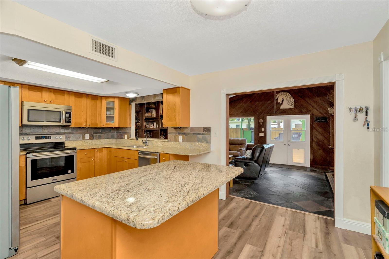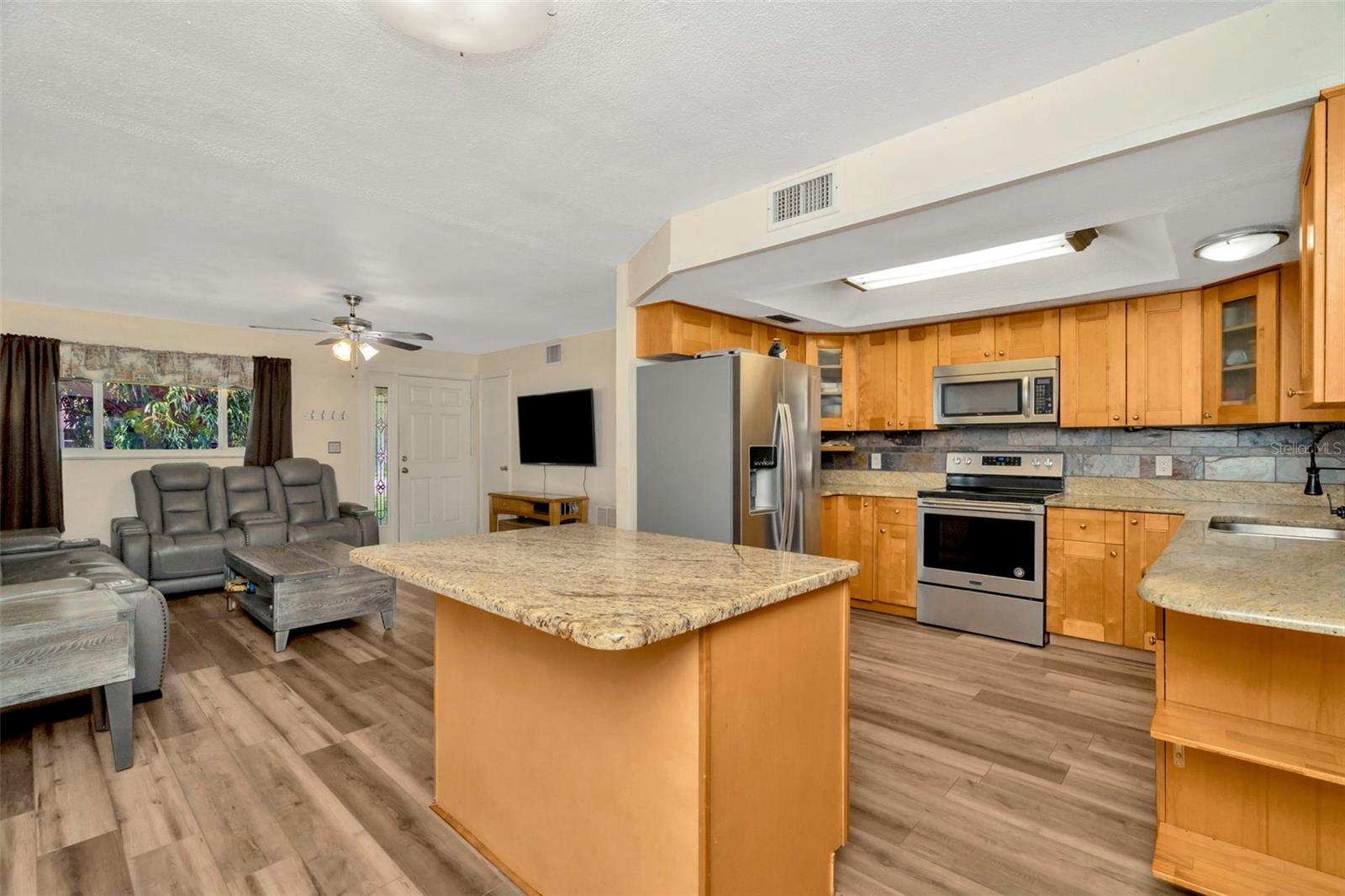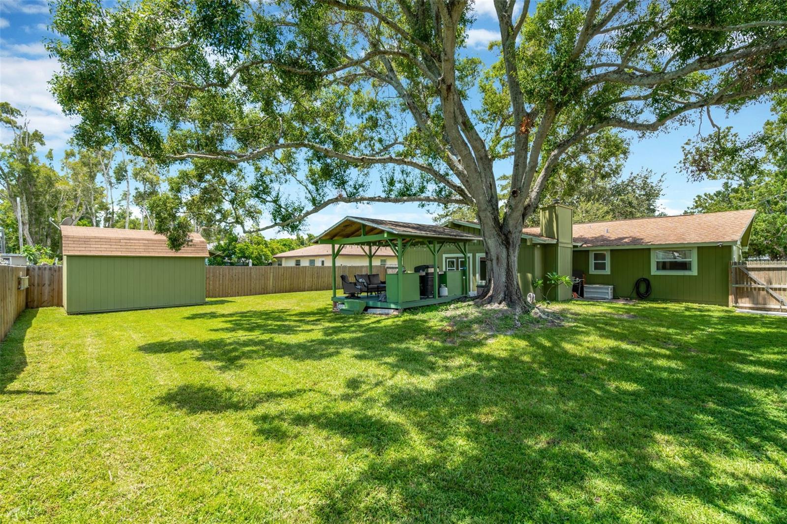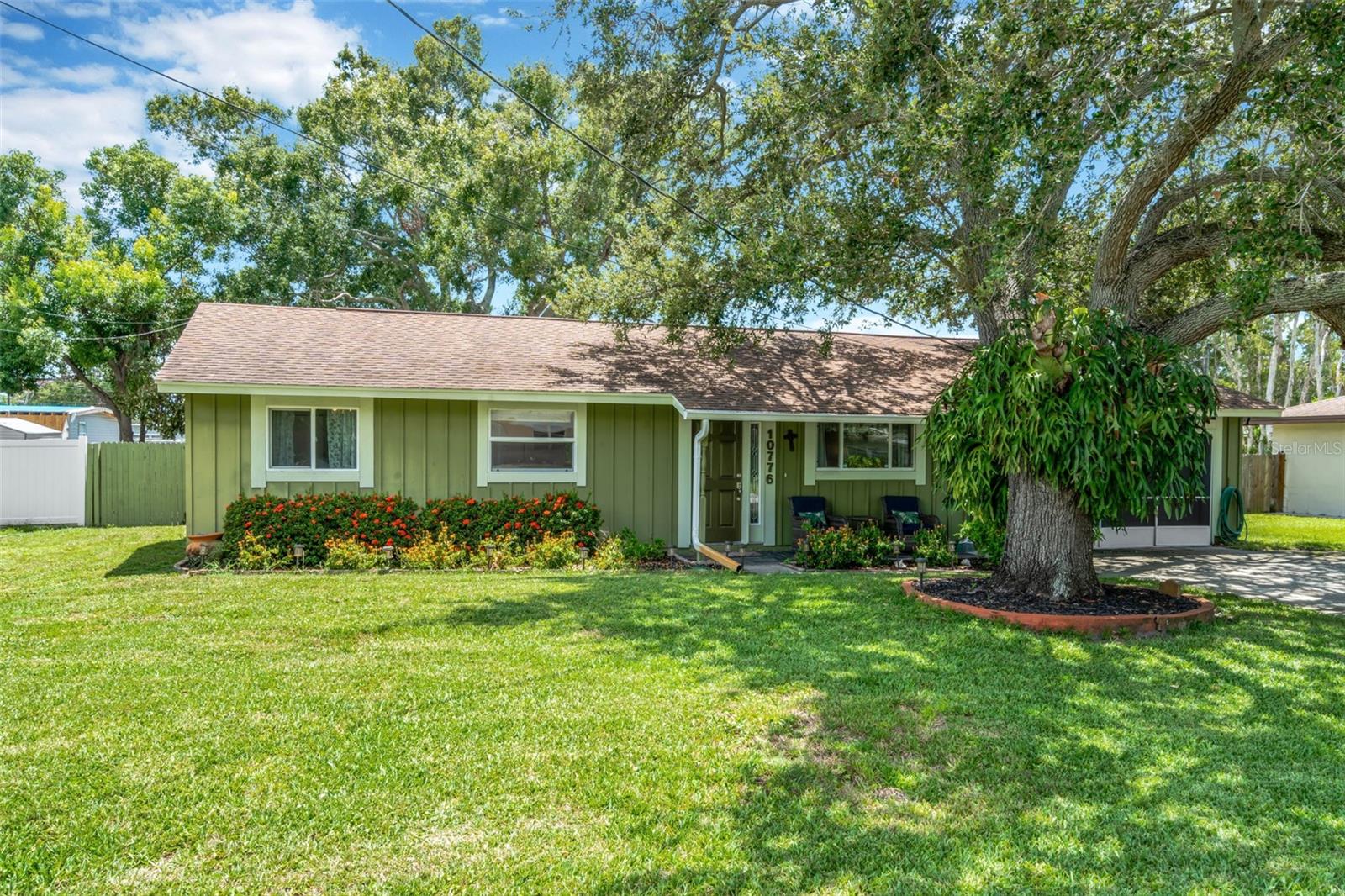 Beautifully maintained 3-bed/2-bath home perfectly positioned just minutes from the Gulf Beaches. Tucked away on a quiet street with no HOA, this property blends comfort, convenience, and the true Florida lifestyle. Inside, you’ll find an open and functional floor plan with great natural light and new flooring (2024) throughout the main living areas and a spacious kitchen with granite countertops. Step outside to an amazing outdoor setup featuring a raised, covered deck with a fully built-in outdoor kitchen. The newly fenced yard (2025) also includes a 10x15 powered shed and still provides plenty of room for a boat or RV. The exterior of the home was also freshly painted in 2024. SELLERS HAVE ARRANGED AND WILL PAY FOR NEW ROOF PRIOR TO CLOSING ALLOWING BUYER(S) THE OPTION TO SELECT SHINGLE COLOR. This is a fantastic opportunity to own a move-in ready home in one of the most convenient locations.
