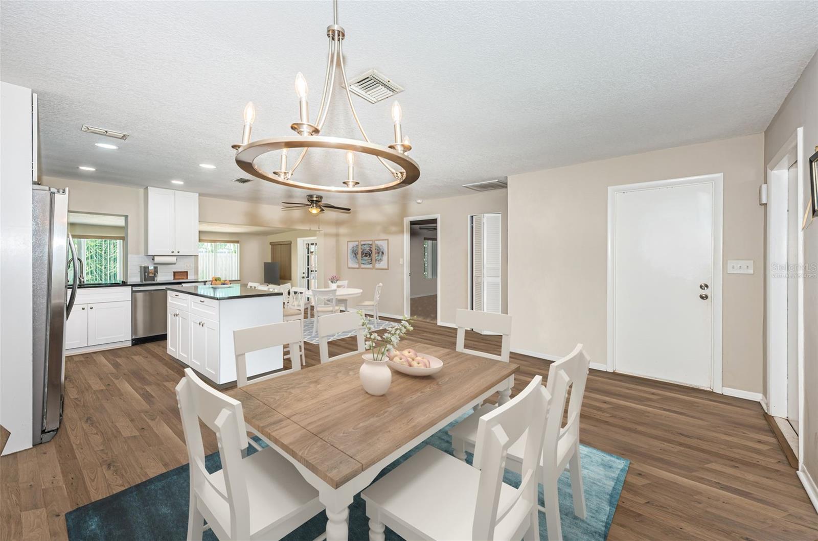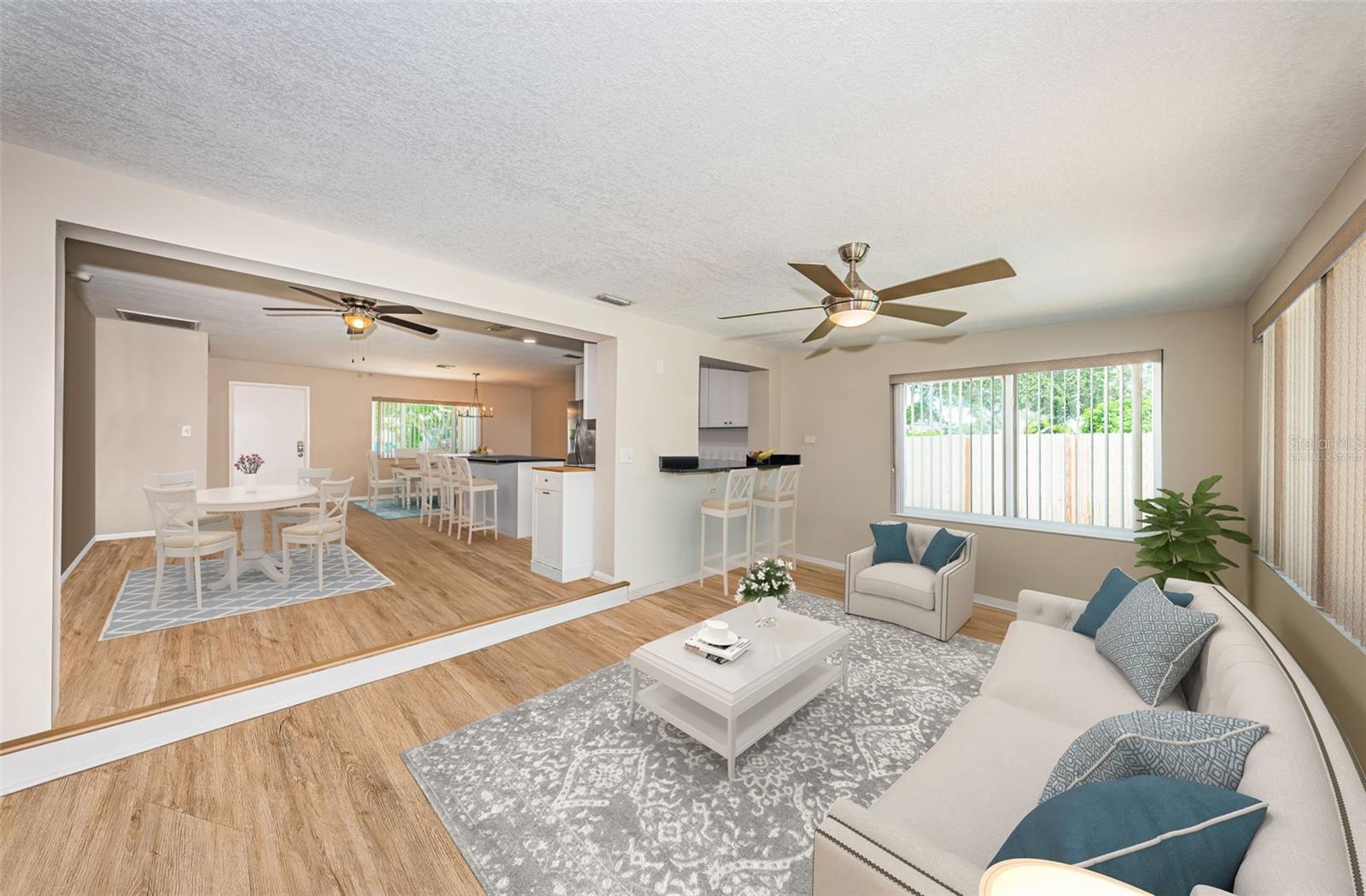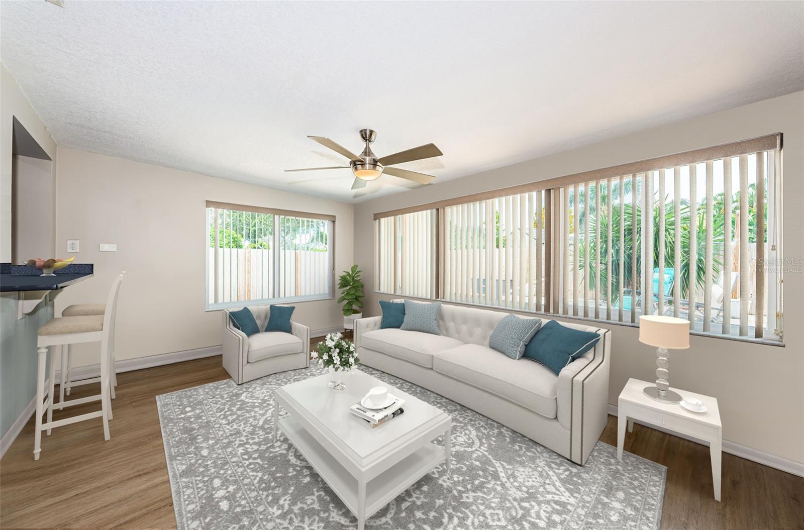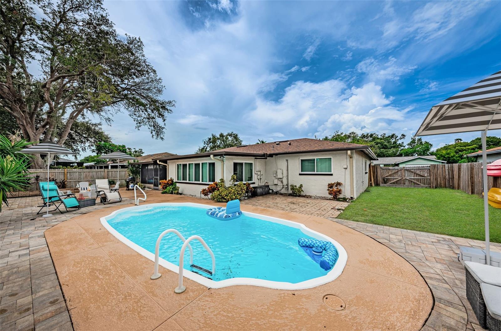 One or more photo(s) has been virtually staged. Your poolside paradise in Seminole Grove Estates awaits you! Looking to grow your investment short-term rental portfolio or make this your home? The opportunity is yours to have. Enter this stylishly updated four-bedroom, two-bath, two-car garage pool home with an oversized, fully fenced backyard and double gate access—bring your boat or RV. Best part? No HOA and NOT IN A FLOOD ZONE. Major upgrades completed: newer roof (2022) with a transferrable warranty, newer HVAC (2021) and updated windows. Inside, you’ll love the bright open layout, luxury vinyl plank floors and modern fixtures. The designer kitchen is a showstopper—shaker cabinets, granite counters, subway tile backsplash, stainless steel appliances and an island with bar seating. A spacious Great room/Florida room to entertain, relax or host game night in style. Your primary suite is on its own side of the house and proves to be a private retreat with walk-in closet and a sleek en suite bath featuring a glass-enclosed shower. Three additional bedrooms all carpeted, offering flexibility, privacy for family, guests or a chic home office. Your second bath offers a shower/tub combination. Go outside to your ultimate backyard escape—a screened lanai, sparkling in-ground pool, plus a spacious patio perfect for barbecues, firepits and endless outdoor fun. Washer and dryer hookups are in the garage. This home checks every box such as stylish updates, functional space and a backyard built for Florida living. All just minutes from schools, gorgeous beaches, and Seminole City Center shopping and dining as well as the Pinellas Trail. Welcome Home. Unincorporated Seminole allows STR allowing AirBNB.
