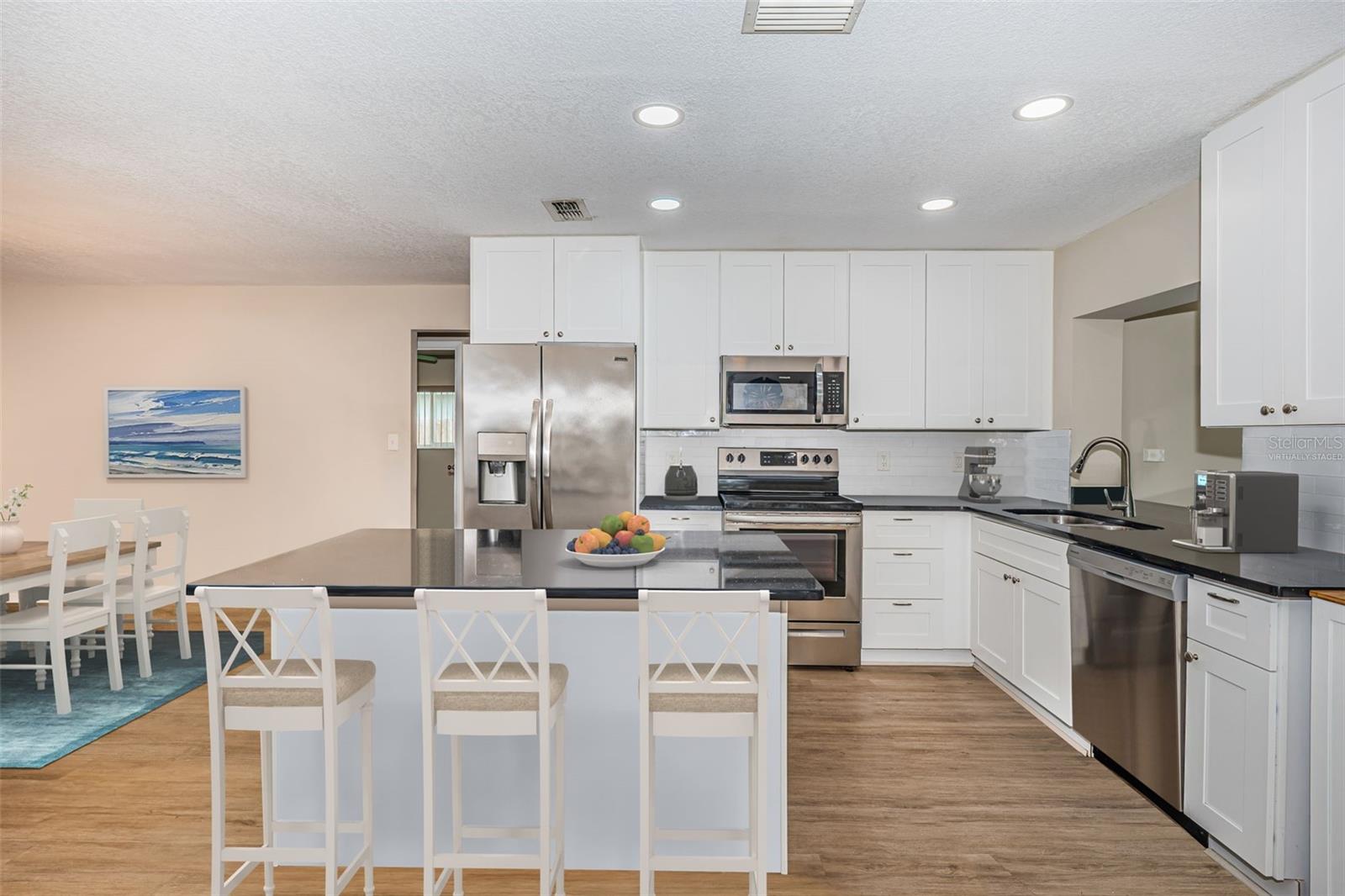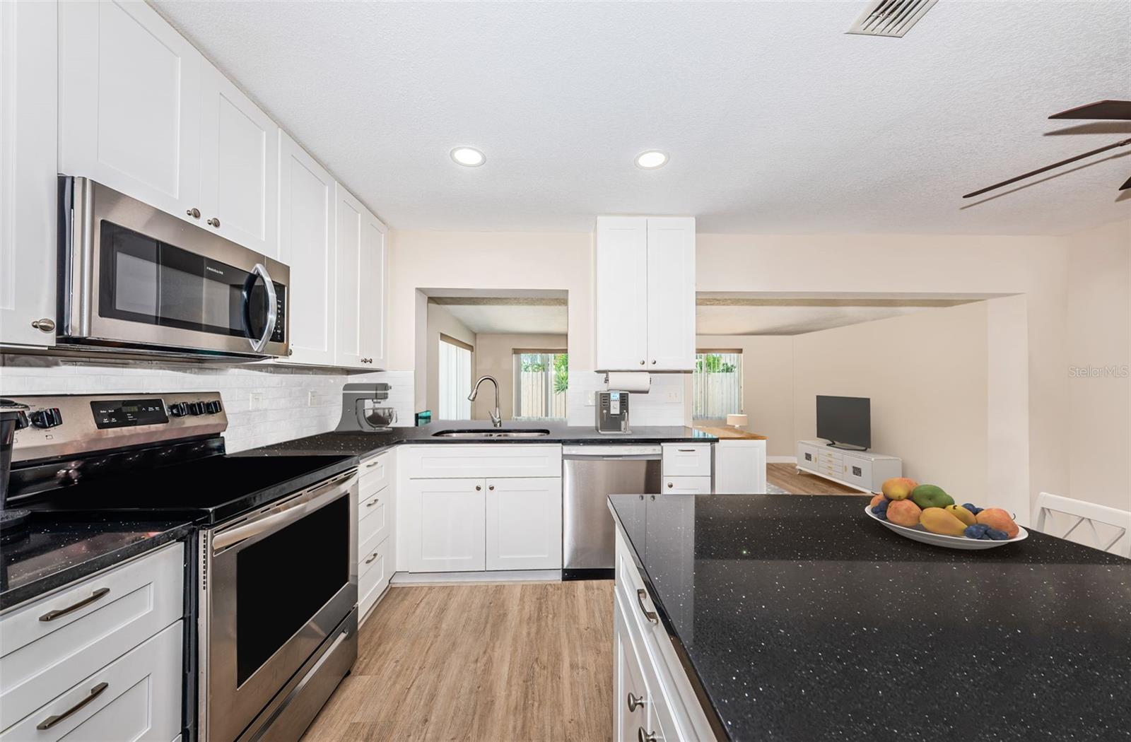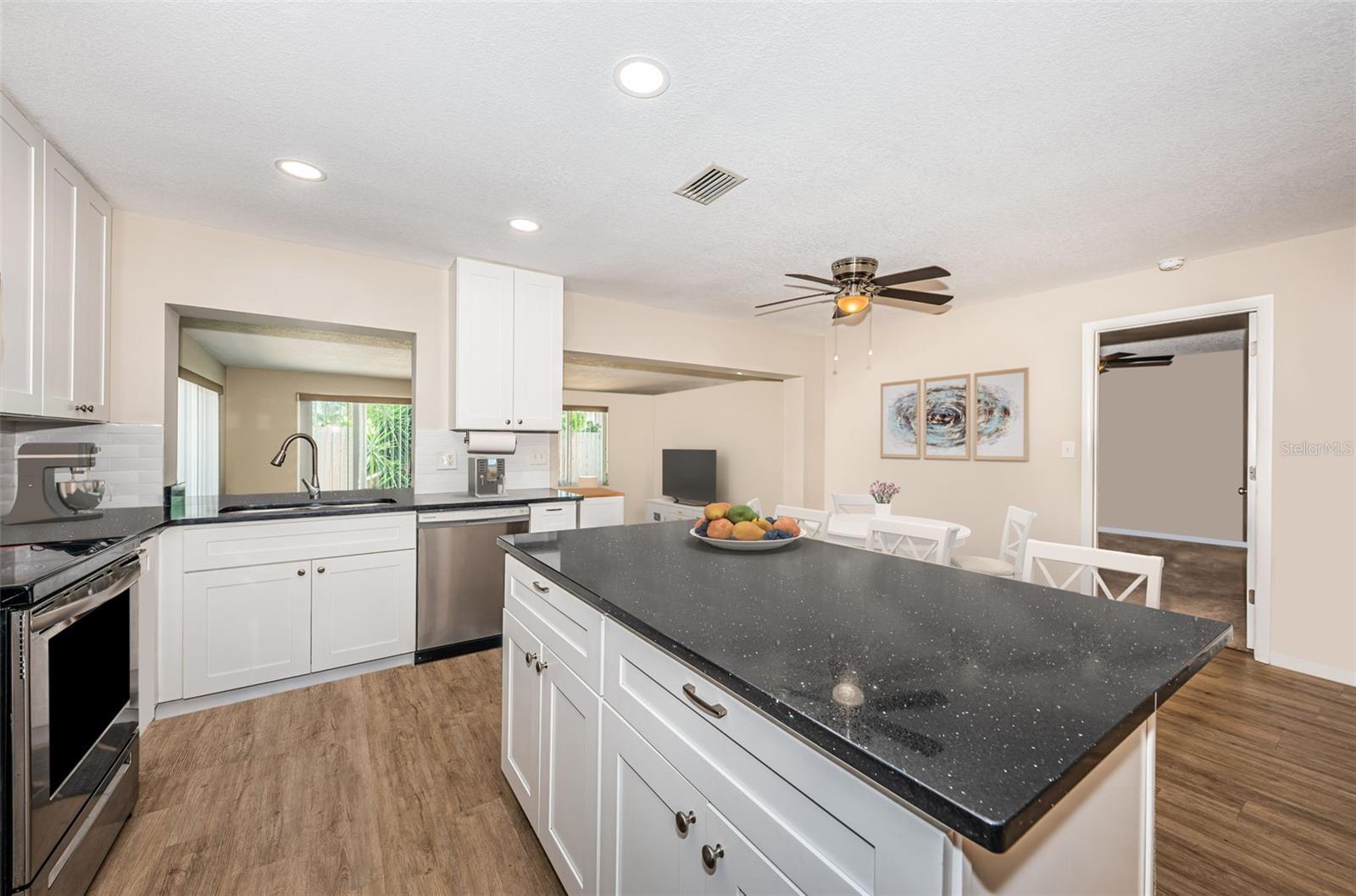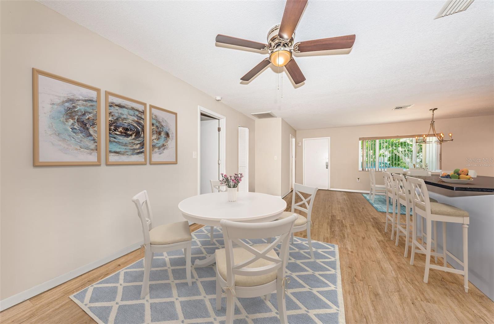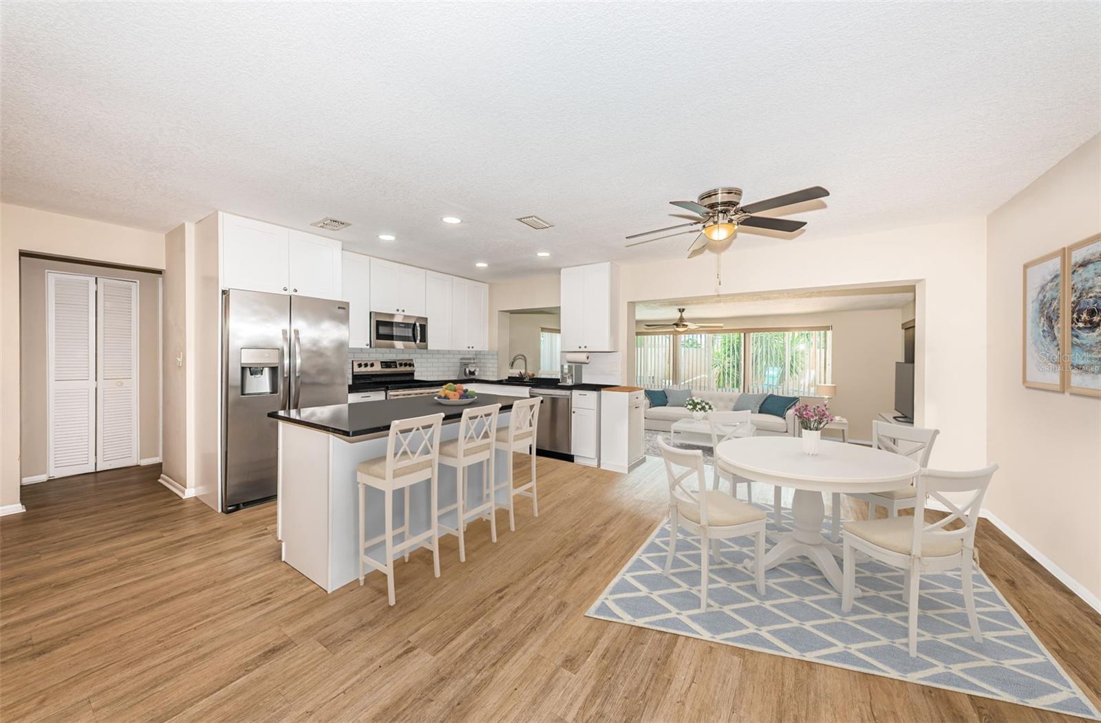 One or more photo(s) has been virtually staged. Your poolside paradise in Seminole Grove Estates awaits you! Looking to grow your investment short-term rental portfolio or make this your home? The opportunity is yours to have. Enter this stylishly updated four-bedroom, two-bath, two-car garage pool home with an oversized, fully fenced backyard and double gate access—bring your boat or RV. Best part? No HOA and NOT IN A FLOOD ZONE. Major upgrades completed: newer roof (2022) with a transferrable warranty, newer HVAC (2021) and updated windows. Inside, you’ll love the bright open layout, luxury vinyl plank floors and modern fixtures. The designer kitchen is a showstopper—shaker cabinets, granite counters, subway tile backsplash, stainless steel appliances and an island with bar seating. A spacious Great room/Florida room to entertain, relax or host game night in style. Your primary suite is on its own side of the house and proves to be a private retreat with walk-in closet and a sleek en suite bath featuring a glass-enclosed shower. Three additional bedrooms all carpeted, offering flexibility, privacy for family, guests or a chic home office. Your second bath offers a shower/tub combination. Go outside to your ultimate backyard escape—a screened lanai, sparkling in-ground pool, plus a spacious patio perfect for barbecues, firepits and endless outdoor fun. Washer and dryer hookups are in the garage. This home checks every box such as stylish updates, functional space and a backyard built for Florida living. All just minutes from schools, gorgeous beaches, and Seminole City Center shopping and dining as well as the Pinellas Trail. Welcome Home. Unincorporated Seminole allows STR allowing AirBNB.