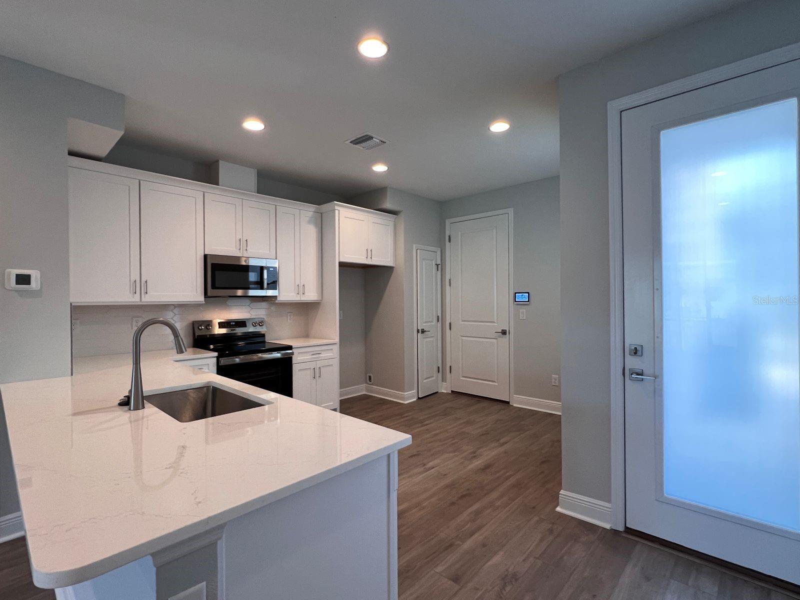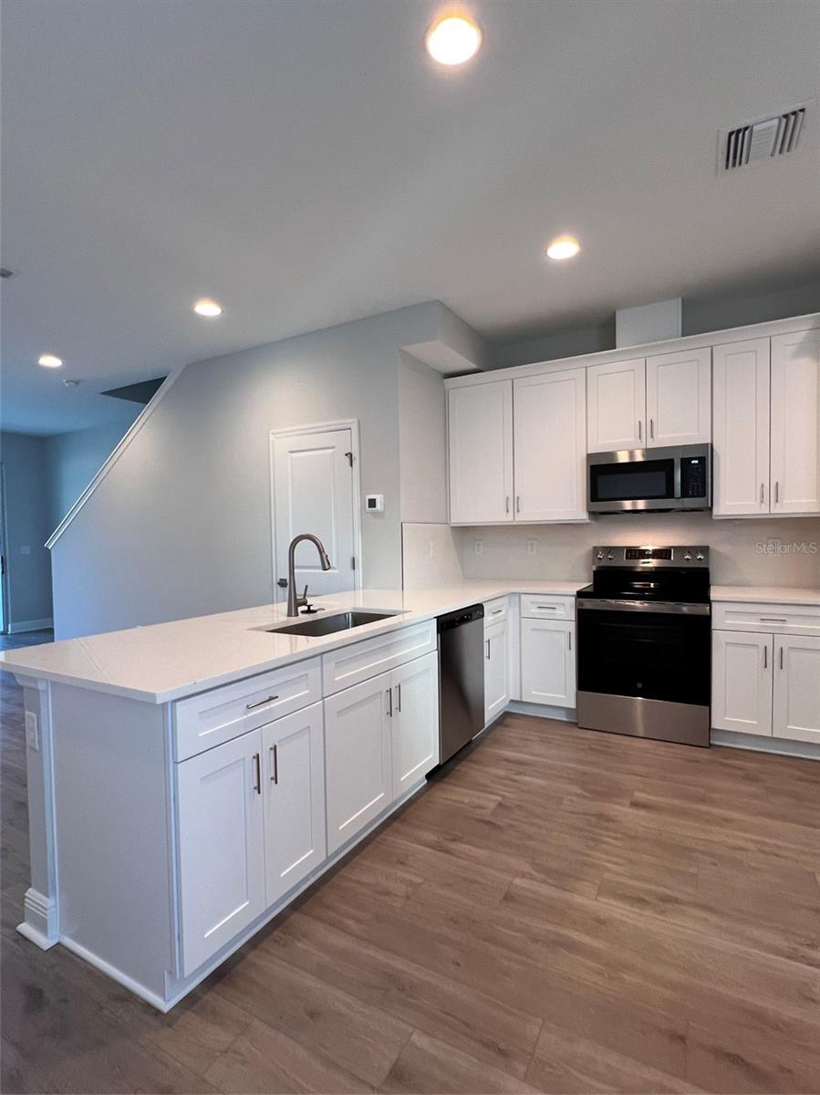 Introducing The Towns at Long Bayou where Luxury Meets Affordability! Step into modern elegance with this brand new, ready to move in 2 bedrooms, 2.5 bath townhome in this boutique coastal community of 34 homes. With 1,534 sq ft of thoughtfully designed living space and an oversized 1 car garage, this home blends upscale finishes with the ease of low maintenance living. The main level greets you with a light, modern kitchen featuring soft close cabinetry, polished hardware, quartz countertops, coordinating ceramic tile backsplash and Stainless-steel appliances. Luxury vinyl plank flooring throughout the kitchen and great room flow seamlessly to peaceful pond views from the great room and the covered, screened in lanai. Convenient first floor powder room tucked beneath the staircase. Beautiful hard oak tread staircase with painted risers lead to the upper-level space created to live, work and relax in the spacious loft perfect as a second living area, office, studio, gym, gaming space, or home theatre and the 9' ceilings keep the second floor open and airy. The quietly positioned Primary Suite overlooks serene pond views with abundant natural light. Private ensuite featuring quartz countertops, a walk in shower with floor to ceiling tile, niche, and glass enclosure. Separate guest bedroom and hall bath for privacy. The upper-level laundry is conveniently located near both bedrooms. Location is just minutes from the Gulf Beaches, John’s Pass Village, shopping, dining, nightlife, fitness, arts and music venues. Peace of mind comes with the New Home Warranty, Insurance discounts for new construction, and Flood Zone X for added savings.