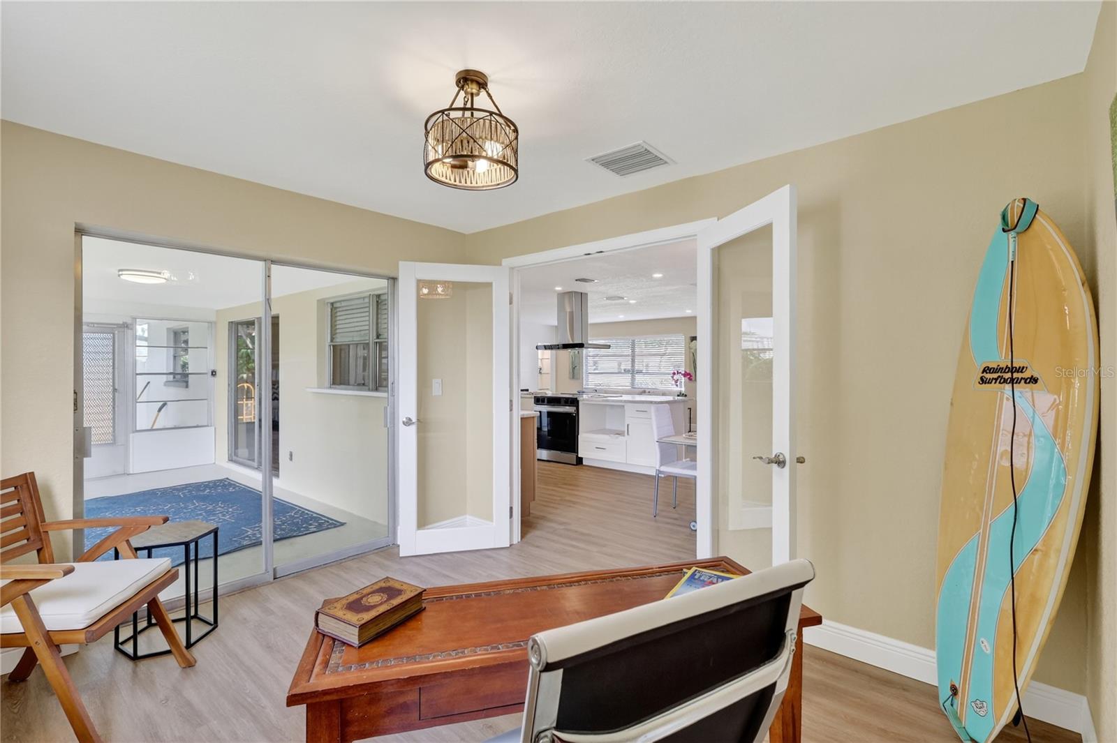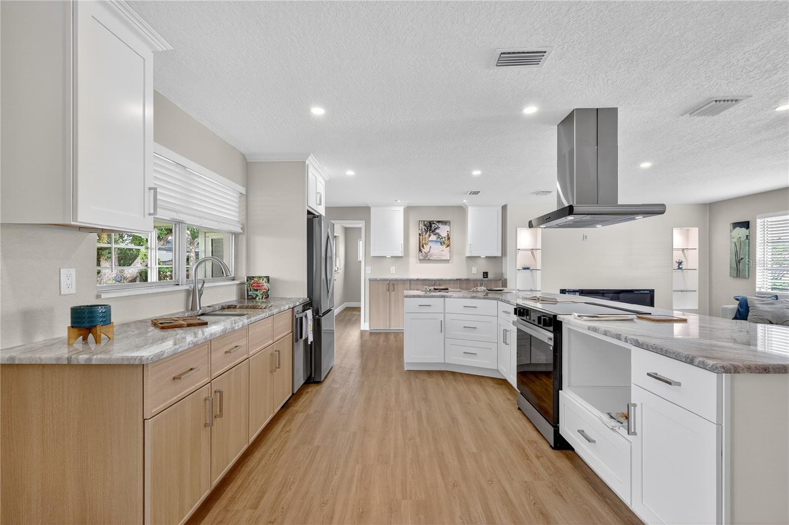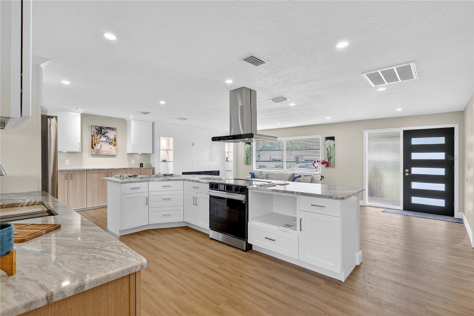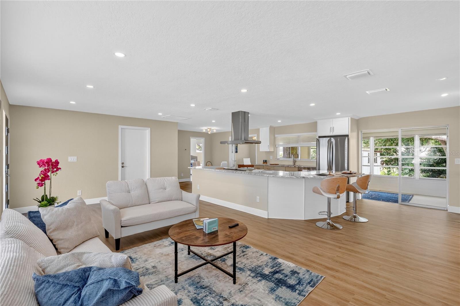 Modern Coastal Living in Yacht Club Estates – Fully Renovated & Move-In Ready! Welcome to this beautifully updated 3-bedroom, 2-bathroom home with a 2-car garage, ideally situated on a spacious corner lot in the desirable Yacht Club Estates. Just minutes from Seminole High School, Seminole City Center, and the Gulf beaches, this home combines location, comfort, and style. Step inside and you’ll immediately notice the transformation. The open-concept floor plan features a brand-new designer kitchen with sleek cabinetry, stainless steel appliances, an oversized island with seating, and stunning stone countertops—perfect for entertaining family and friends. Natural light flows through large windows, enhancing the airy feel of the main living spaces. The split-bedroom layout ensures privacy, while both bathrooms have been fully renovated with modern finishes. One bathroom boasts a walk-in shower with pebble-stone flooring, while the other offers a spa-like soaking tub with contemporary fixtures. Additional features include new flooring throughout, upgraded lighting, and fresh neutral paint, making this home truly move-in ready. The flexible 3rd bedroom with glass French doors would make a wonderful work from home space. Outside, the quarter acre corner lot and side yard provide endless possibilities—whether you envision a pool, lush garden, or expanded outdoor entertaining area, parking for a boat or RV. A newer roof (2022), updated AC (2017), and newer water heater give peace of mind.