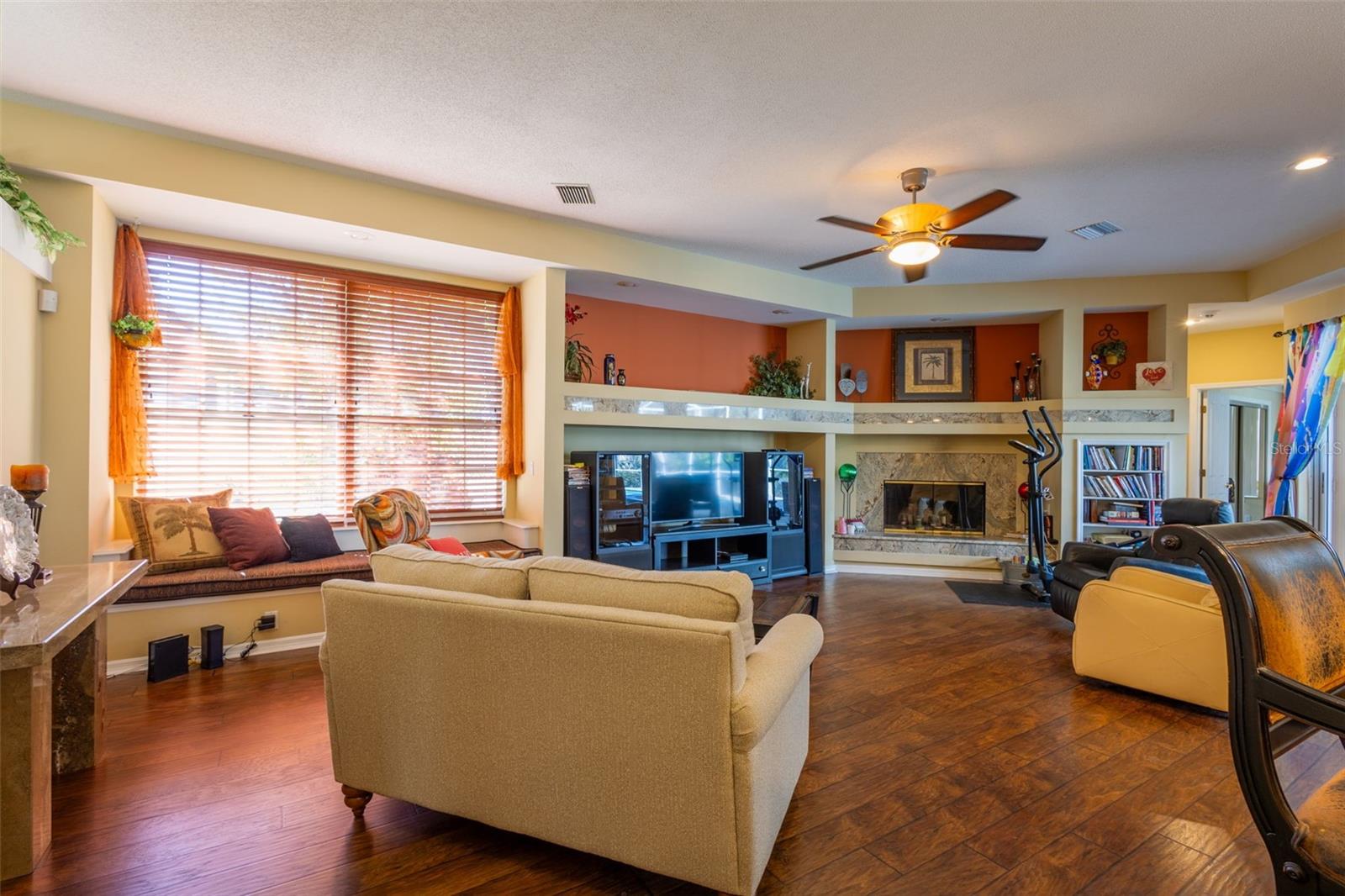 Custom built 4 bedroom (2 are Primary Suites), 3.5 bath, 3 car garage, pool home on a small, well-kept cul-de-sac in a very desirable community. Property backs up to a lake/pond for a retreat-like setting in the back. The home boasts of large rooms and vaulted ceilings throughout. The main PRIMARY suite features its own gas fireplace, sitting area, wet bar, a very spacious walk-in closet, en-suite bathroom with a garden tub and separate shower. It also features a private entry to the pool through a large pocket slider glass door. The second primary suite is located in the middle of the home, and also has its own walk-in closet and en-suite bath. Two additional bedrooms and bathroom are located on the other side of the home. The kitchen is conveniently located in the center of the home, equipped with stainless appliances and a natural gas stove. The kitchen opens to the large family room including another gas fireplace, an eat-in breakfast room with sliding glass doors to the pool. In fact, this home features 5 exits to the pool and lanai. The formal living and dining room have high-end polished porcelain tile floors. All bedrooms have carpet. The main living areas feature hard wood floors. Caged pool and spa were resurfaced several years ago. The rooms are larger than the measurements provided in the listing. Roof - 2020, AC – 2017. There are two HVAC systems in the home, with multi-thermostats for room comfort. This community is in close proximity to hospitals, churches, shopping, restaurants, approx 8 miles to the beach, and 10 miles to the St Pete/Clearwater Airport with easy access to I-275 and area bridges.