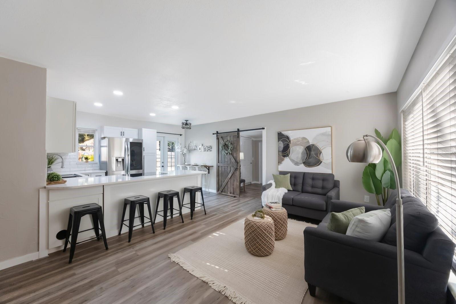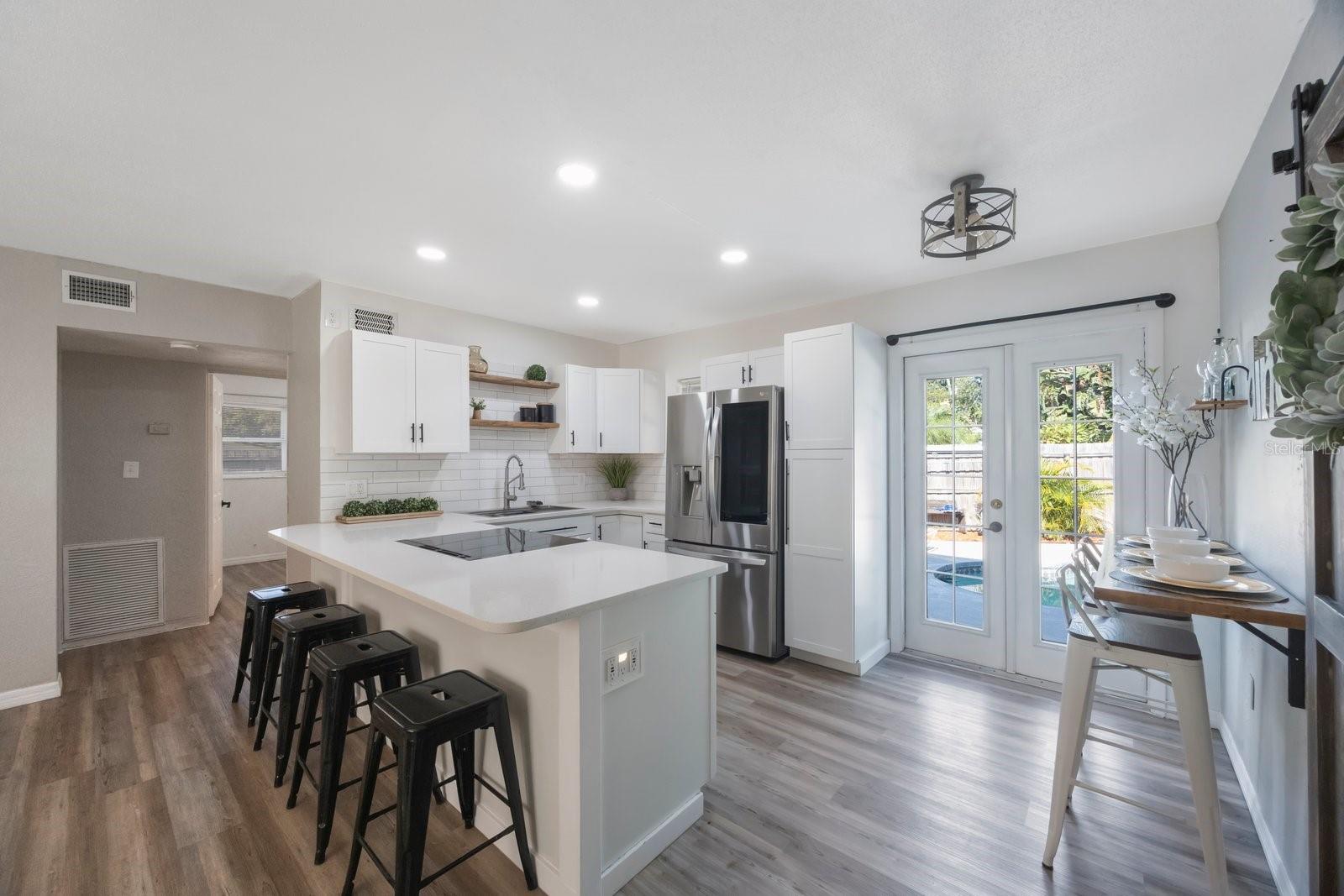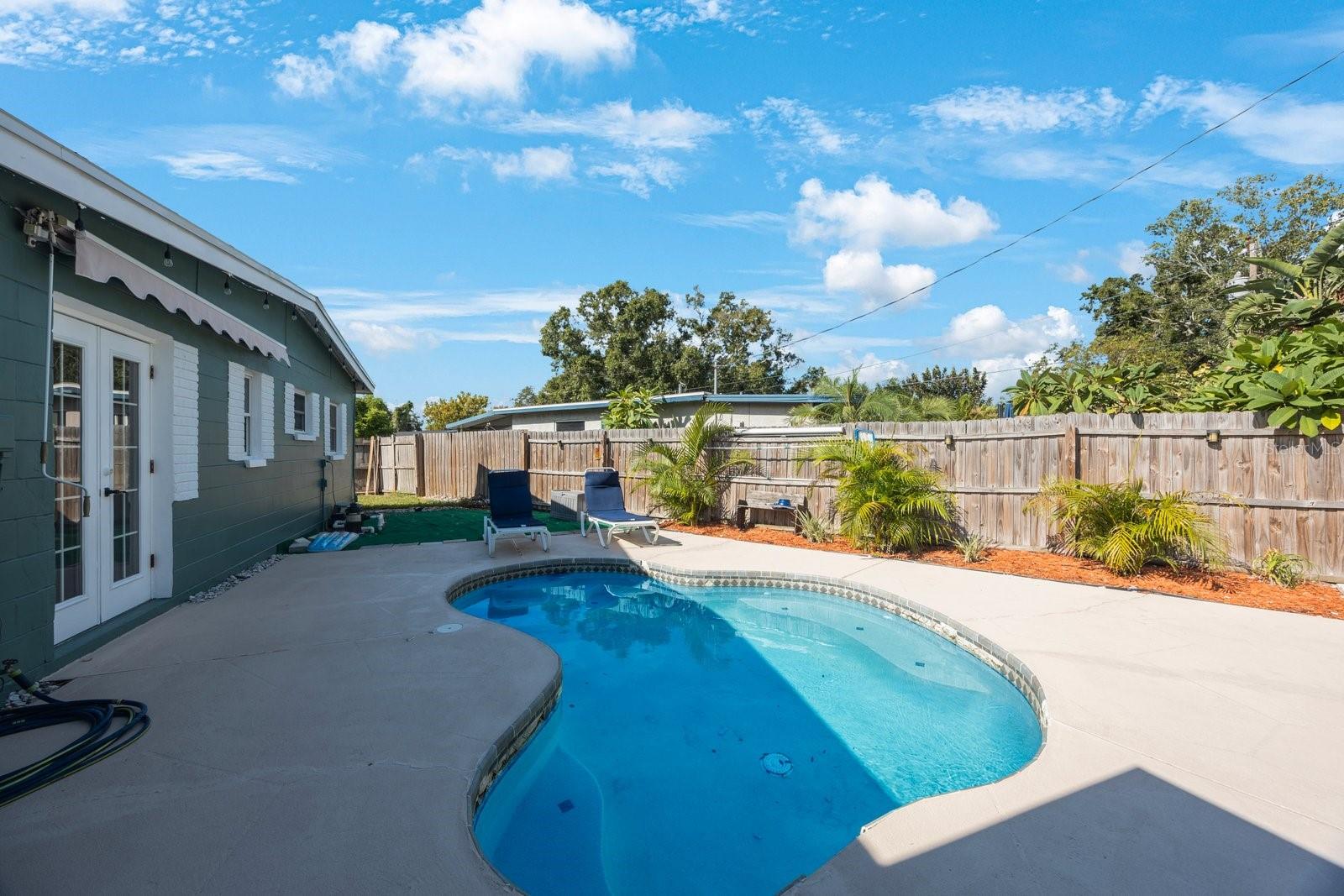 Look no further! This corner lot, split bedroom POOL home is located in the desirable city of Seminole. No flood damage from any hurricanes! This beautifully remodeled home offers 3 bedrooms, 1 bathroom, a covered carport, indoor laundry room, and a fenced backyard with a POOL and outdoor shower! This dream kitchen features white cabinets, stone countertops, and stainless steel appliances. Enjoy having no worries with a 1 year old roof! Conveniently located near shopping and schools! Don't wait, schedule your showing today!