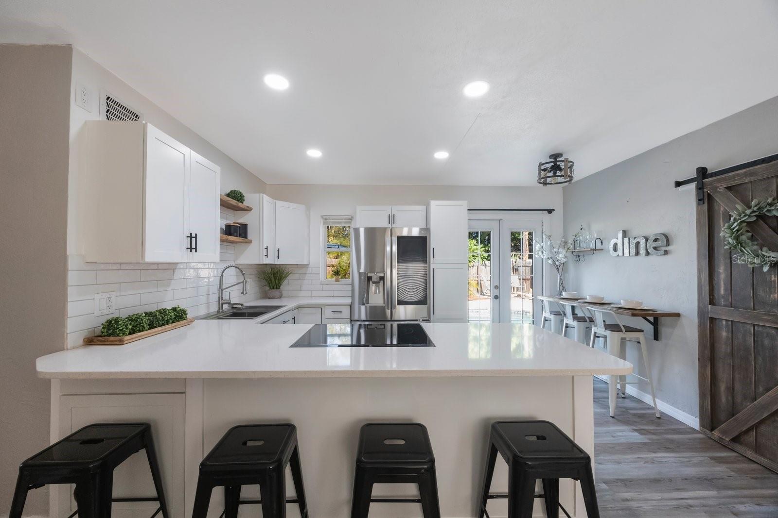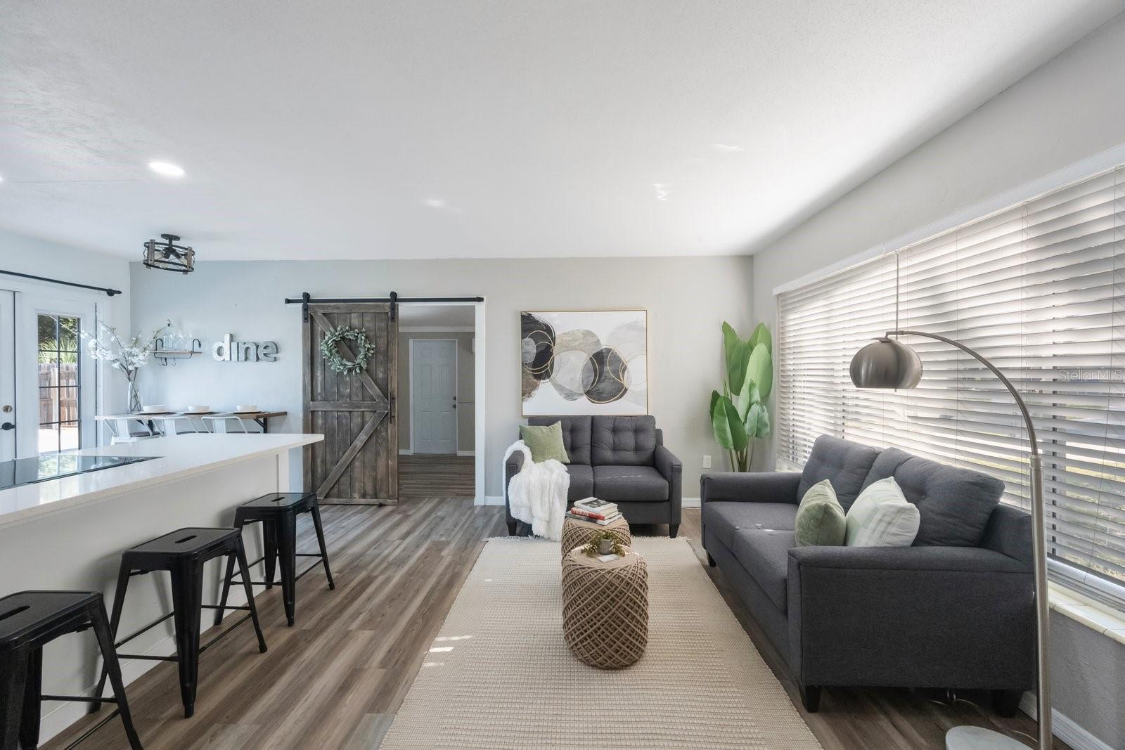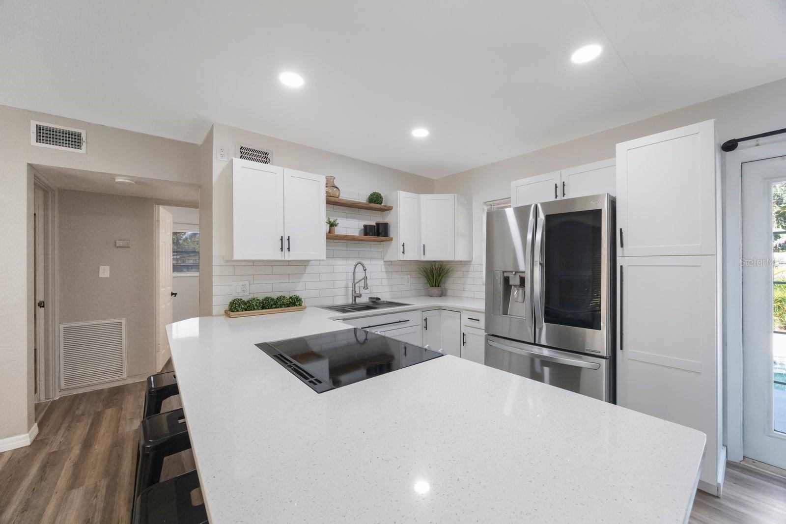 Look no further! This corner lot, split bedroom POOL home is located in the desirable city of Seminole. No flood damage from any hurricanes! This beautifully remodeled home offers 3 bedrooms, 1 bathroom, a covered carport, indoor laundry room, and a fenced backyard with a POOL and outdoor shower! This dream kitchen features white cabinets, stone countertops, and stainless steel appliances. Enjoy having no worries with a 1 year old roof! Conveniently located near shopping and schools! Don't wait, schedule your showing today!
