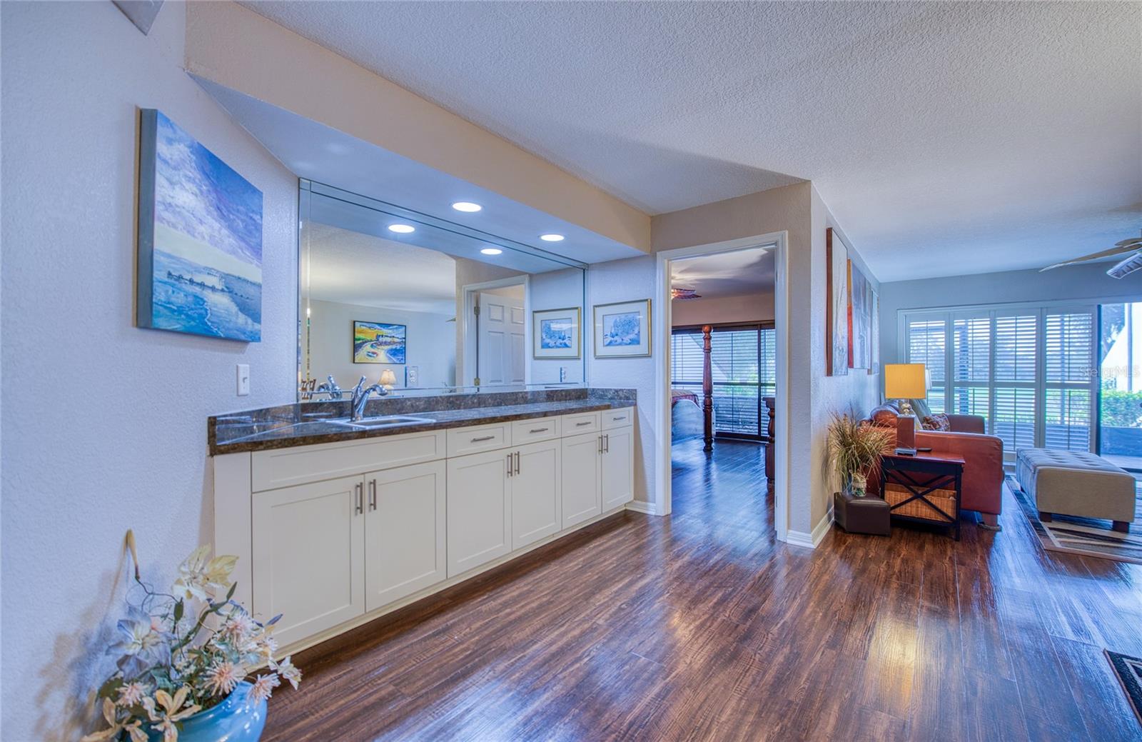 The Links Condo! This IMMACULATE move in ready 2 bedroom, 2 bath GROUND FLOOR condo also features a 1 CAR GARAGE! 1400 sq/ft of living space which includes combination living/dining room with wet bar, kitchen with lots of storage and counterspace and breakfast bar, spacious master and second bedroom, 2 full baths, INSIDE LAUNDRY ROOM with plenty of storage, a large south facing Florida room overlooking the 5th fairway of Seminole Lake Country Club golf course. A/C 2018, water heater 2024, luxury vinyl plank floors installed throughout 2018. The Links is NOT a 55+ community, your small PET is welcome, it has affordable condo fees $763.00 monthly that includes Cable and Internet. This building did not have any issues from the storms! There is a clubhouse, heated pool and spa for your enjoyment. THE LINKS is conveniently located near restaurants, shopping, entertainment, and just a 10 minute drive to beautiful gulf beaches. JUST REDUCED $20K!! Please view the VIRTUAL TOUR.