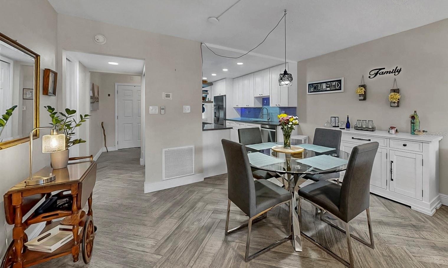 Welcome to the Bardmoor Lifestyle where comfort, style, and convenience meet. Behold this beautifully remodeled condo tucked in the highly sought-after Bardmoor area of Seminole. This serene community, (ages 16+), offers the perfect blend of easy living, modern design, and resort-style amenities, all in a non-flood zone location. Step inside and prepare to be impressed. The moment you enter, the woodgrain tile floors laid in a herringbone pattern set the tone for the home’s elevated design. The open floor plan flows effortlessly between the living, dining, and kitchen spaces, creating the perfect layout for relaxing or entertaining. The fully updated kitchen is a showstopper with new white shaker cabinets, quartz countertops, stainless steel appliances, and custom open shelving that adds warmth and character. You’ll love retreating to the spacious primary suite, featuring an updated en suite bath with a new tiled shower, modern vanity, and ample storage including both a walk-in and secondary closet. The guest bedroom is bright and versatile, ideal for guests or a home office. Enjoy your morning coffee or evening wine on the screened-in patio overlooking the sparkling pool, your own private slice of paradise just steps away. Laundry located inside unit. Elevator for your comfort and convince. With over $33,000 in upgrades since 2024, including new windows, a new sliding door, front door, primary bathroom shower, and a newer HVAC system, this home is truly move-in ready. The beautifully maintained community offers lush green space, a glistening pool, spa, and low-maintenance living so you can focus on what matters most—enjoying life. Located minutes from Madeira Beach, Treasure Island, and North Redington, plus close to shopping, dining, golf, and St. Pete/Clearwater Airport, this condo puts you at the heart of it all. Come experience the carefree Florida lifestyle you’ve been dreaming of. Schedule your private showing today before it’s gone.