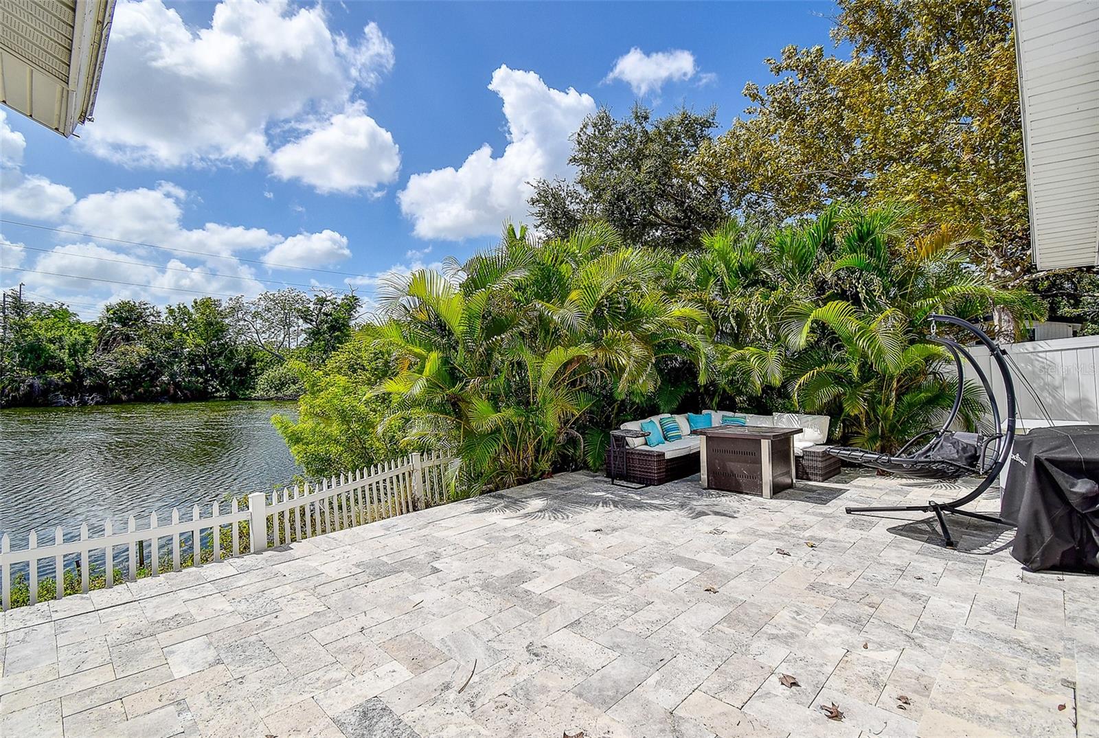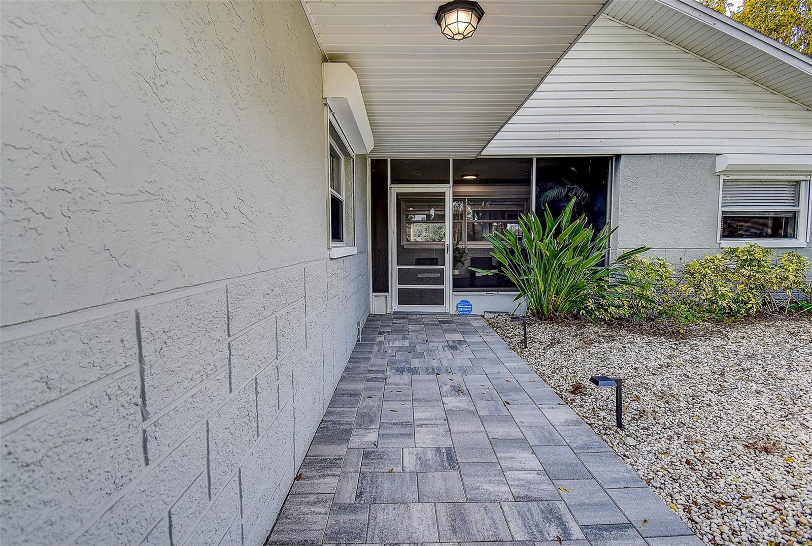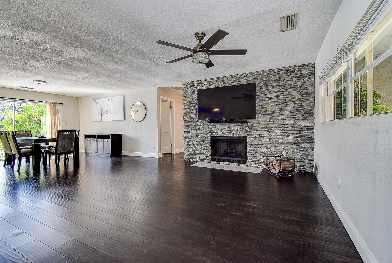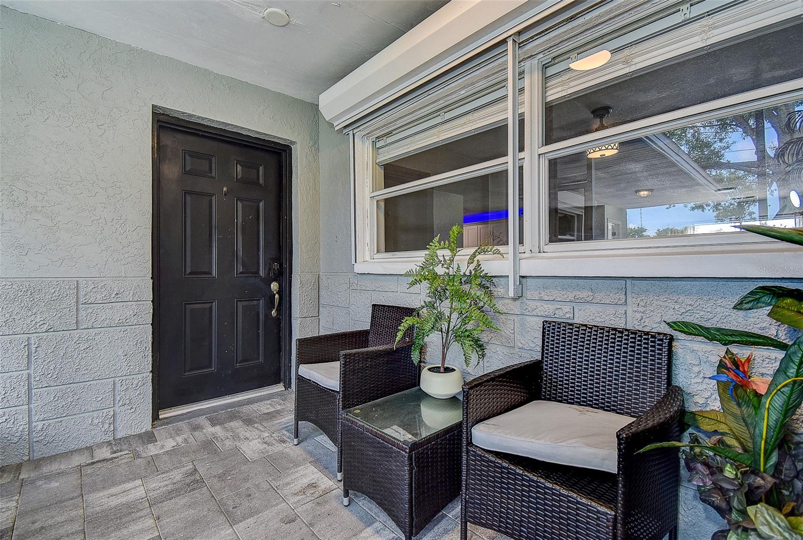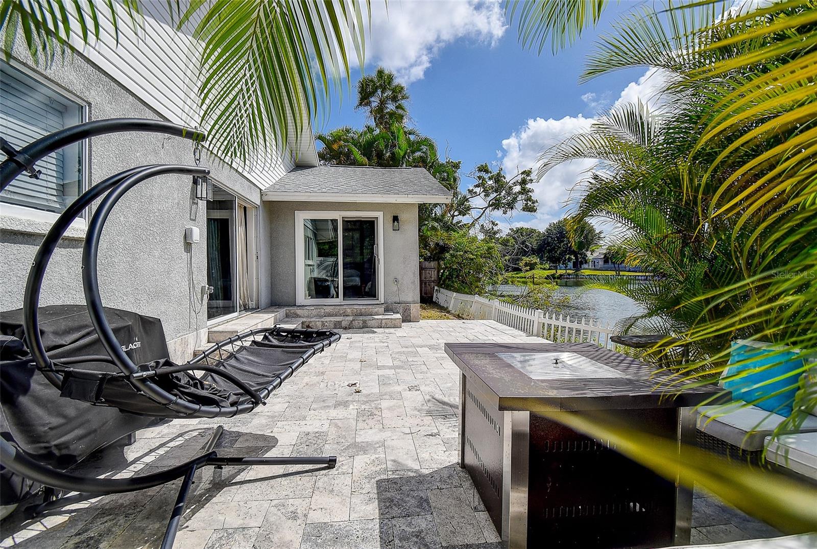 Welcome to this beautifully updated 3-bedroom, 2.5-bath solid block home featuring a 2-car garage and timeless curb appeal with a paver driveway and walkway. Step inside and you’ll immediately notice the warm, inviting atmosphere highlighted by a stunning custom rock accent wall makes the fireplace the focal point of the family room — the perfect centerpiece for cozy evenings or entertaining friends and family. Fully remodeled a few years ago and continuously improved, this home includes all-new ductwork and a newer AC system, along with beautiful new flooring in two bedrooms. The thoughtfully designed split floor plan offers privacy, with the spacious master suite on one side complete with its own en-suite bath and direct access through sliding doors to the back patio. On the opposite side, you’ll find two additional bedrooms and a shared full bath, plus add convenient of a half-bath just off the garage. The kitchen is truly a standout, featuring an unusually generous amount of counter space, ideal for those who love to cook, entertain, and spread out. Ample cabinet storage and an open flow into the dining and living areas make this home as functional as it is beautiful. Both the main living area and master bedroom open through sliding glass doors to a gorgeous travertine patio overlooking a peaceful water view, providing a serene backdrop for morning coffee or evening relaxation. One of the home’s standout features is the massive laundry room — large enough to serve as a full utility area, keeping daily chores tucked neatly out of sight while adding extra storage and workspace. Set in one of the most desirable locations in Pinellas County, this home is just 10 minutes from everything — whether you’re heading to the beach, exploring vibrant downtown St. Petersburg, enjoying Clearwater to the north, or venturing south toward Gulfport and the coastal communities. Modern comfort, natural beauty, and an unbeatable location — this home truly has it all.