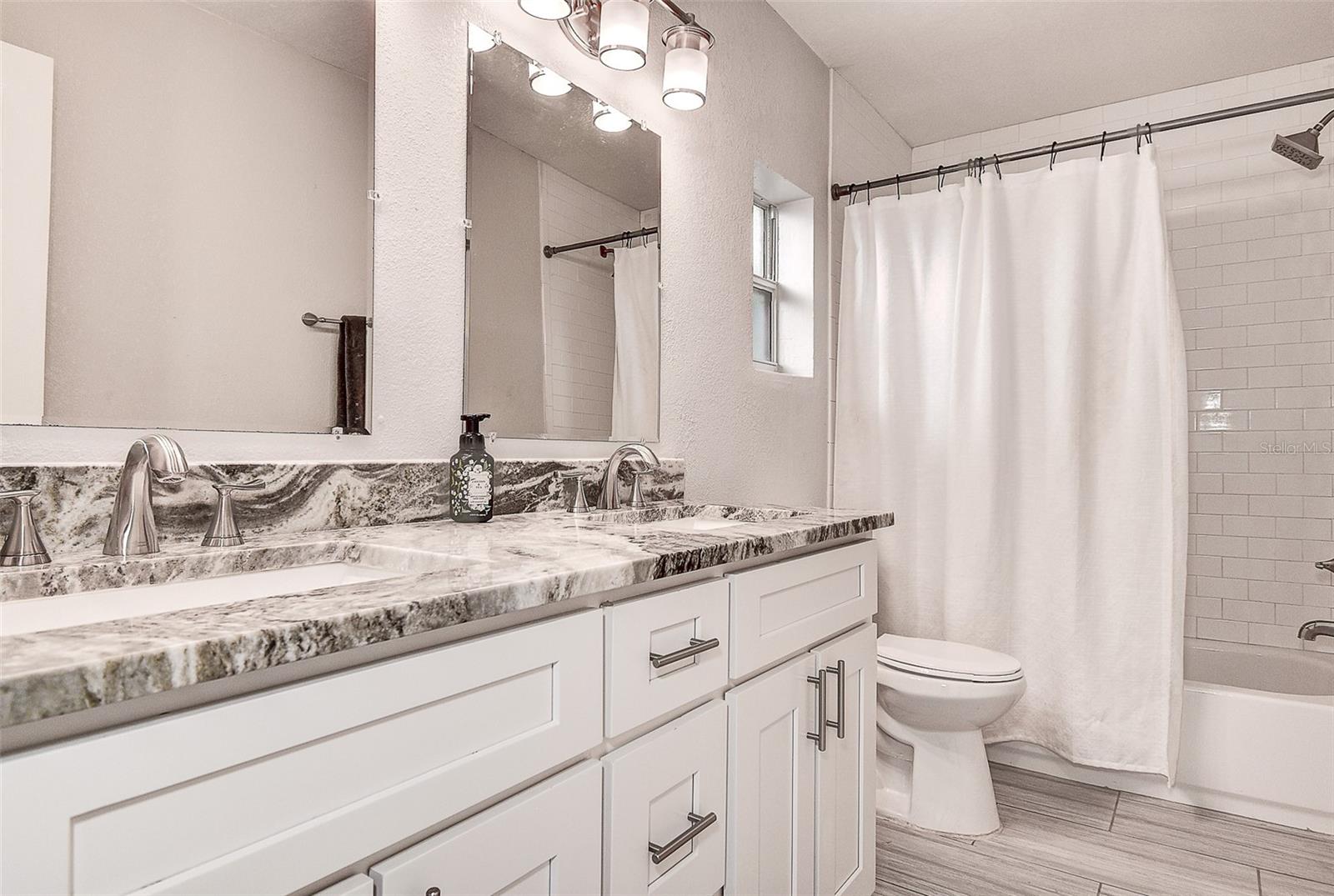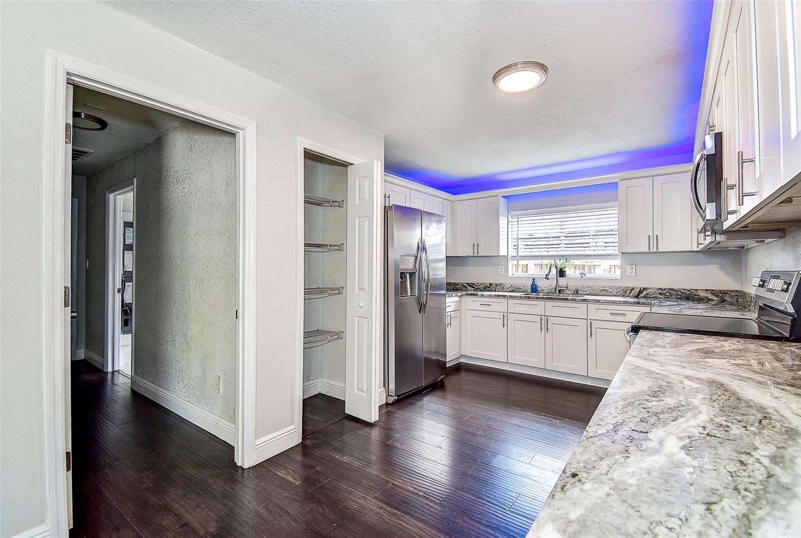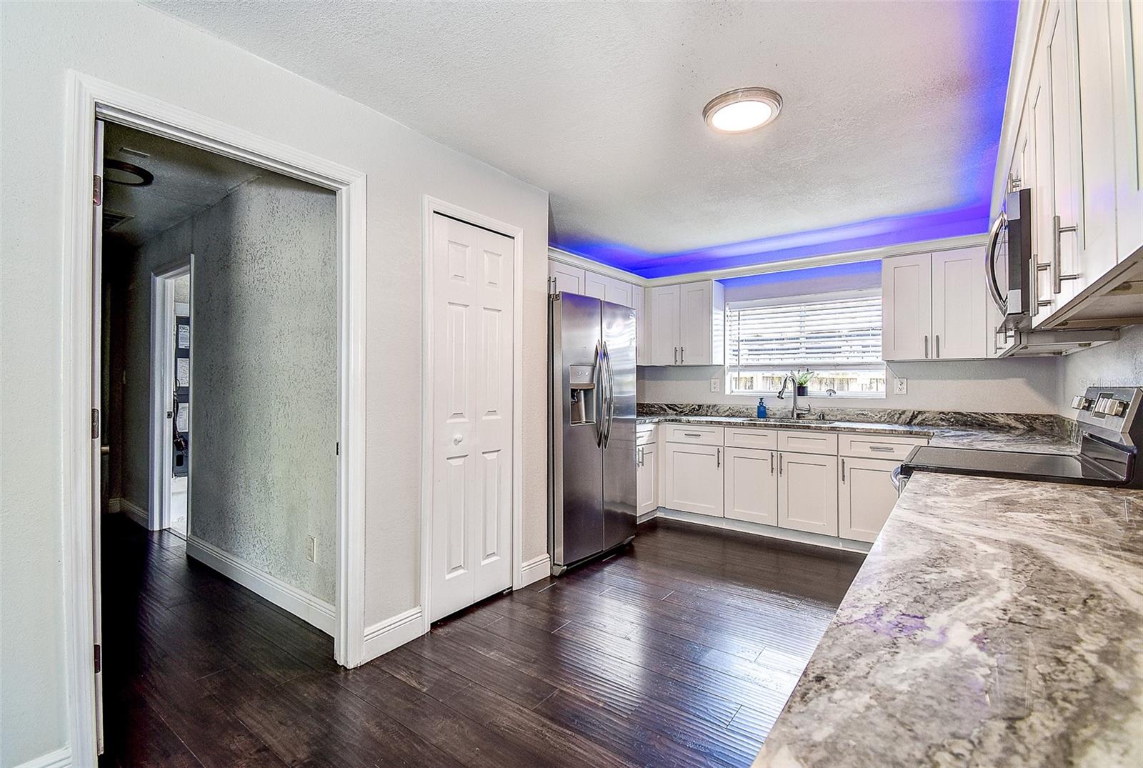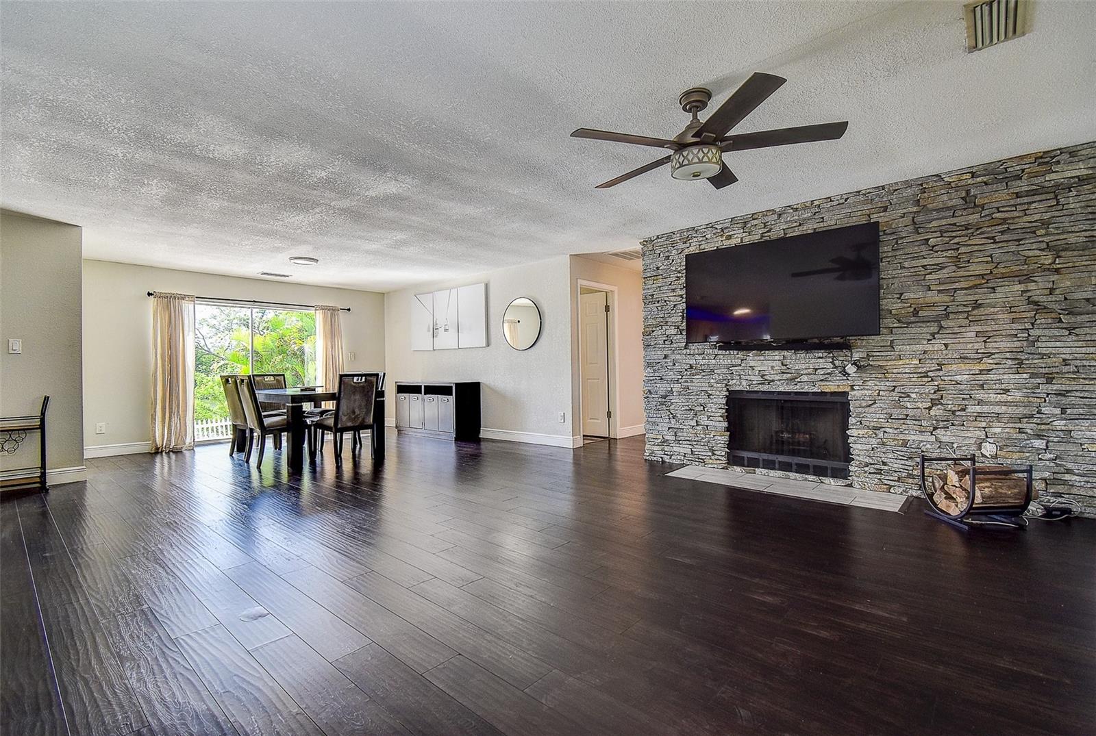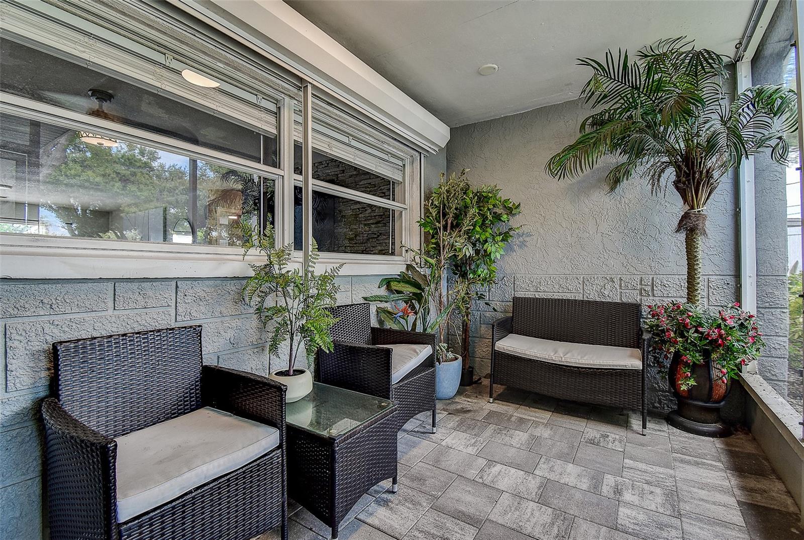 Welcome to this beautifully updated 3-bedroom, 2.5-bath solid block home featuring a 2-car garage and timeless curb appeal with a paver driveway and walkway. Step inside and you’ll immediately notice the warm, inviting atmosphere highlighted by a stunning custom rock accent wall makes the fireplace the focal point of the family room — the perfect centerpiece for cozy evenings or entertaining friends and family. Fully remodeled a few years ago and continuously improved, this home includes all-new ductwork and a newer AC system, along with beautiful new flooring in two bedrooms. The thoughtfully designed split floor plan offers privacy, with the spacious master suite on one side complete with its own en-suite bath and direct access through sliding doors to the back patio. On the opposite side, you’ll find two additional bedrooms and a shared full bath, plus add convenient of a half-bath just off the garage. The kitchen is truly a standout, featuring an unusually generous amount of counter space, ideal for those who love to cook, entertain, and spread out. Ample cabinet storage and an open flow into the dining and living areas make this home as functional as it is beautiful. Both the main living area and master bedroom open through sliding glass doors to a gorgeous travertine patio overlooking a peaceful water view, providing a serene backdrop for morning coffee or evening relaxation. One of the home’s standout features is the massive laundry room — large enough to serve as a full utility area, keeping daily chores tucked neatly out of sight while adding extra storage and workspace. Set in one of the most desirable locations in Pinellas County, this home is just 10 minutes from everything — whether you’re heading to the beach, exploring vibrant downtown St. Petersburg, enjoying Clearwater to the north, or venturing south toward Gulfport and the coastal communities. Modern comfort, natural beauty, and an unbeatable location — this home truly has it all.