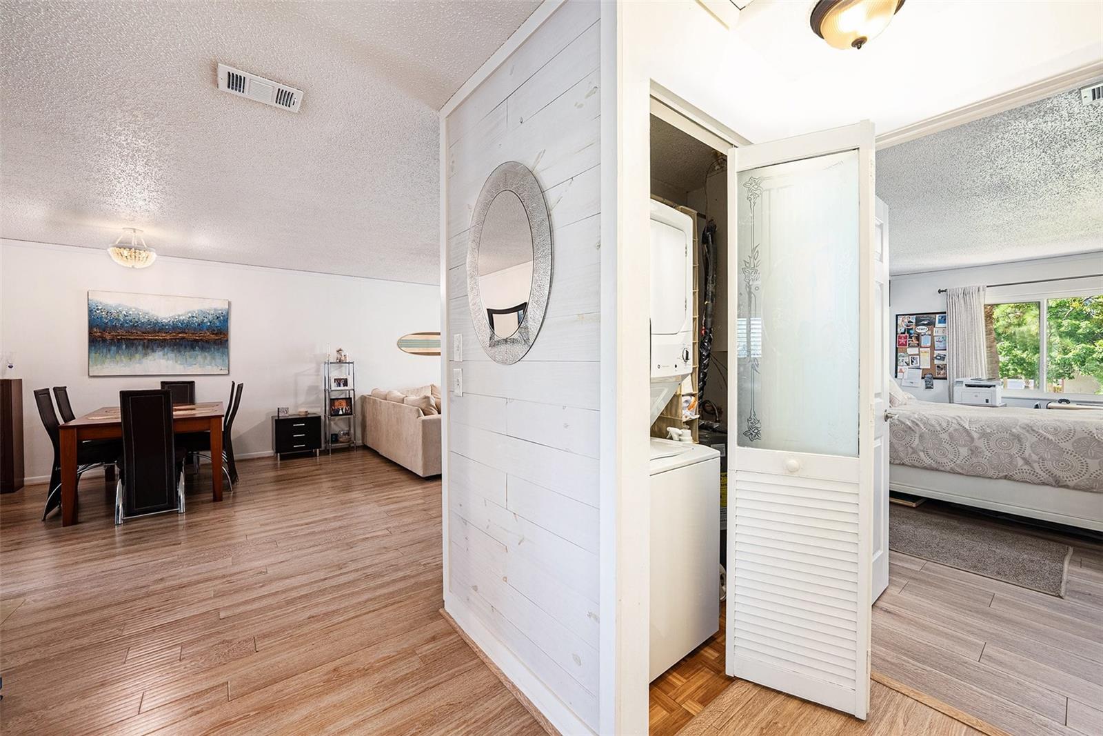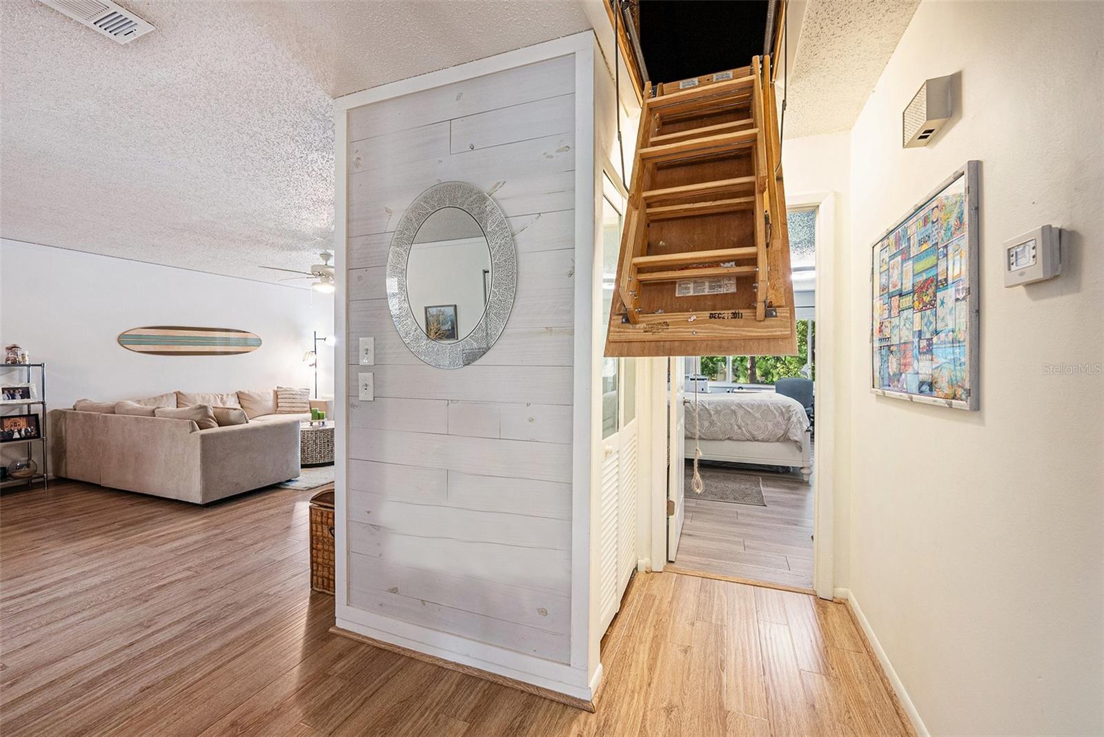 Welcome to this rare top-floor waterfront condo overlooking Seminole Bypass Canal, Long Bayou Watershed, offering 2 bedrooms, 2 baths, and 1,250 sq ft of well-maintained living space. This loft-style unit provides added privacy and abundant storage, including attic space, a screened and glass-enclosed balcony with its own storage closet, exterior storage under the covered parking space, and even a pulley system bike lift over the stairs. Inside, you’ll find plantation shutters, LVP flooring, fresh interior paint (2022), new lights and ceiling fans, crown molding, and an in-unit GE stack laundry. The kitchen features a Bosch dishwasher, KitchenAid double oven range, and a mix of black and stainless-steel appliances with Formica counters. Major updates include a new water heater (2022), HVAC (2011), new electrical panel, new Bath Fitter soaking tub, and PGT double-pane hurricane-impact windows and sliders. The condo fee covers expanded cable and internet, water, sewer, trash, landscaping, building insurance, and exterior maintenance including the tile roof. You’ll also enjoy access to a solar-heated pool, clubhouse with solar panels, and tennis/pickleball courts — leaving you responsible only for the electric bill. With no age restrictions, allowance for two pets (dogs, cats, or birds), and no storm damage from last year’s hurricanes, this second-floor unit offers peace of mind and a low-maintenance lifestyle. Best of all, no second-floor 2-bedroom units have sold here in the past two years, making this a rare opportunity to own one of these highly desirable waterfront homes with unmatched storage and amenities.