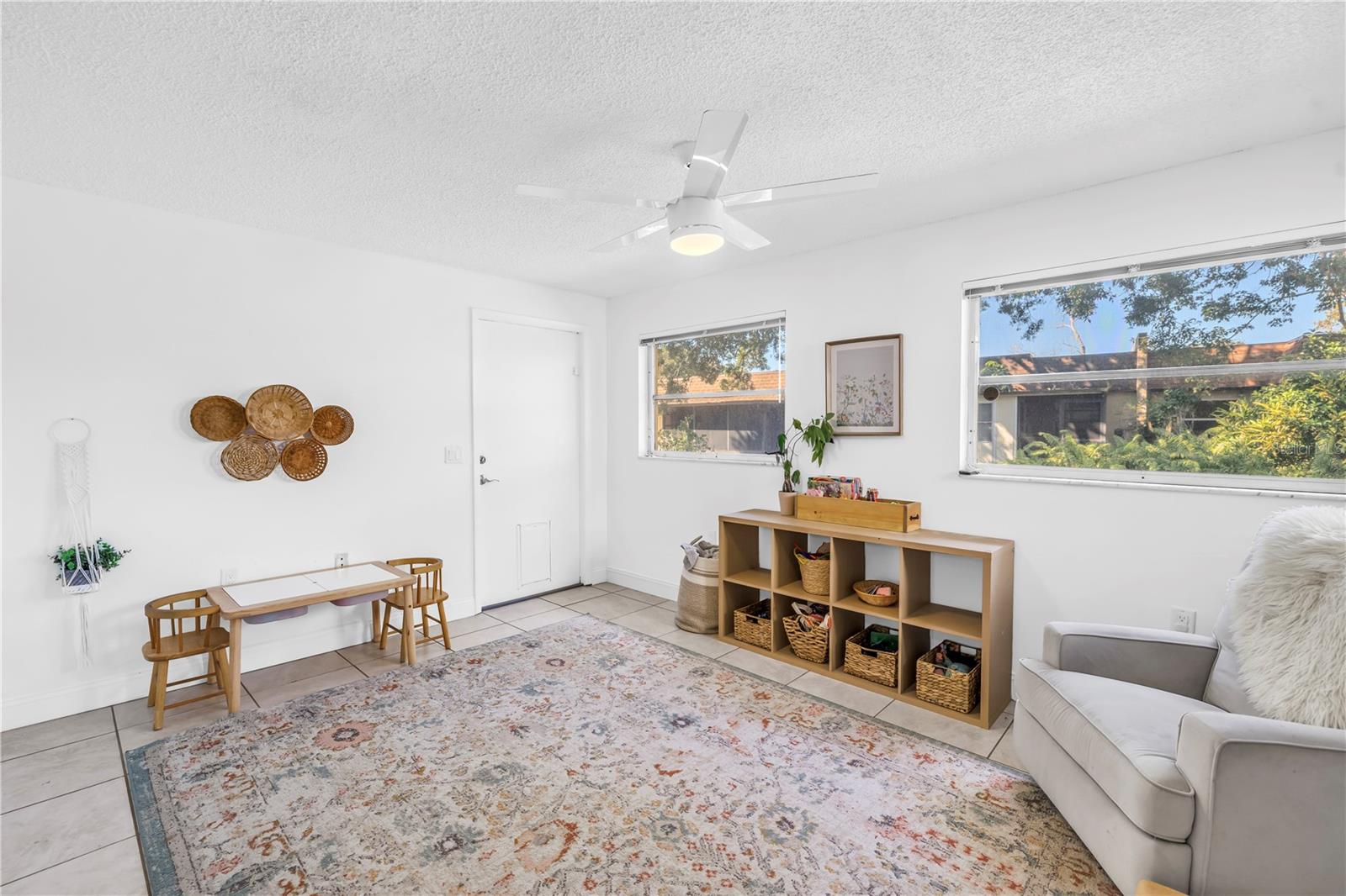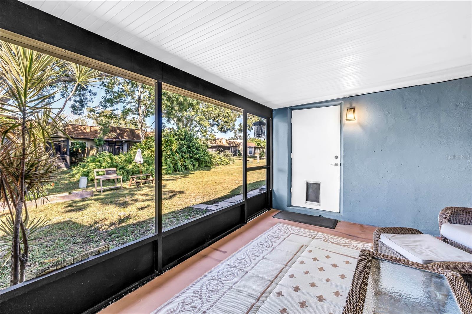 Escape the hustle and bustle and retreat to your villa in the Bent Tree community, where low-maintenance and high quality living collide. Enjoy a coffee on the front patio for a lovely sunrise, and relax in your screened-in spacious back patio in the evening to see the sunset's glow in the sky. The open floor plan flows effortlessly from the living room to the dining room to the updated kitchen (with pantry, granite counters, and stainless steel appliances), and the ceramic tile floors make for easy clean-up - no carpet anywhere! The Florida room boasts beautiful natural light into the fantastic bonus space - family room? play room? game room? - the options are endless! A FABULOUS storage closet (that some owners in similar layouts have converted to a primary en-suite second bathroom), an indoor laundry closet, three bedrooms and one beautifully updated bathroom complete the inside tour. Out back enjoy tending to the raised garden boxes, or envision your own retreat in the yard behind your villa. The roof being less than 1 year old is just one less thing to worry about in life... low maintenance is key! Speaking of easy living, this inviting community provides a community pool, dog park, tennis courts, and boat/RV/trailer storage (first come first serve), and is conveniently located halfway between I-275 and the famous Gulf Beaches... you get the best of both worlds! Schedule a private showing to see it in person today!