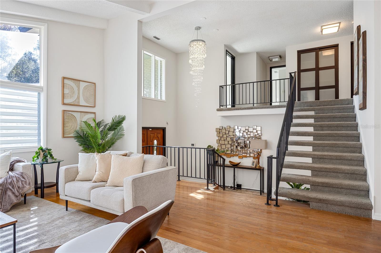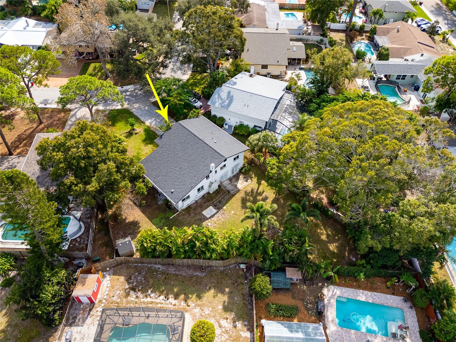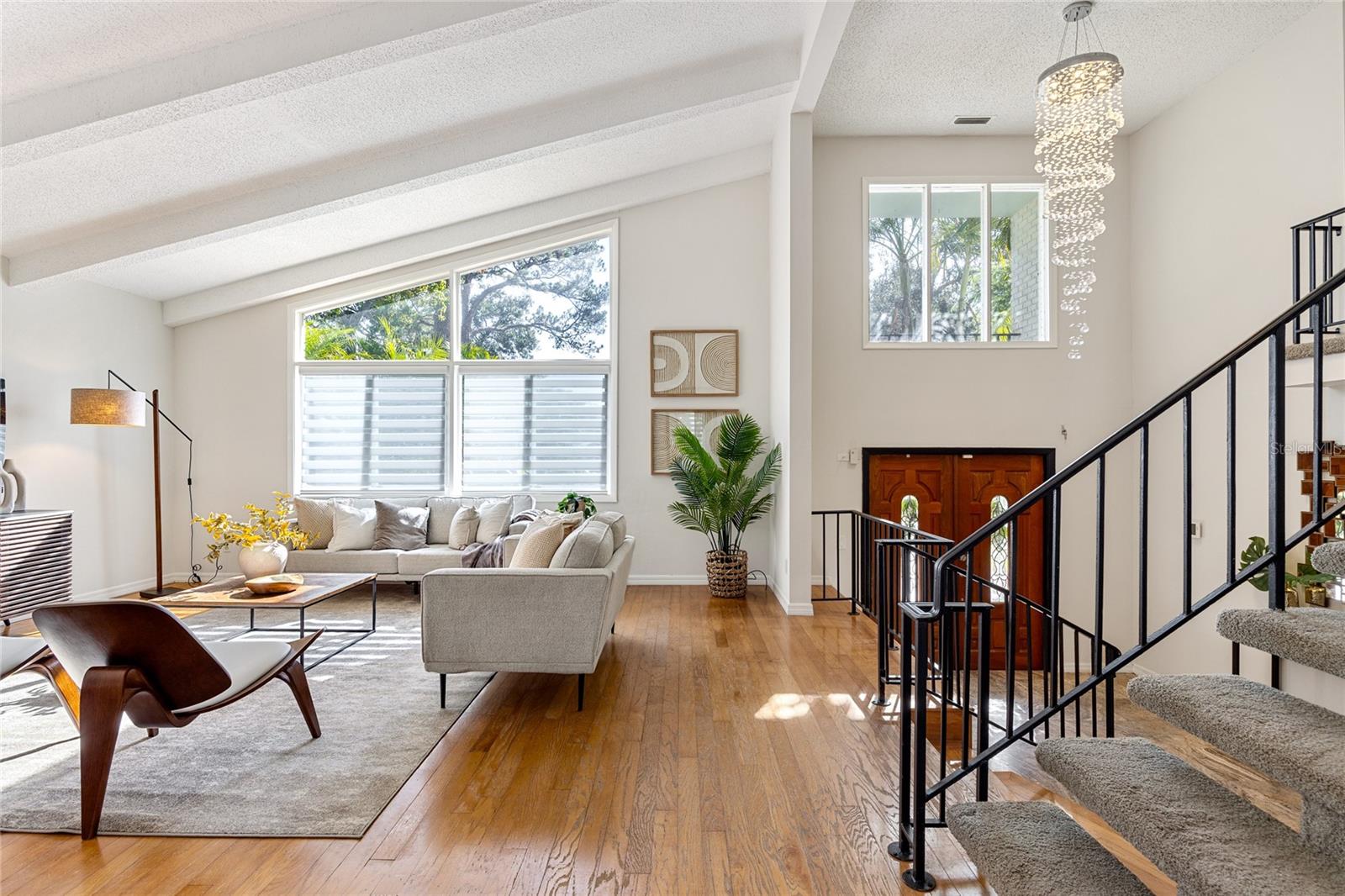 Tucked away on an oversized lot in the sought-after Whispering Pines neighborhood, this super spacious four bedroom, three bath home delivers the perfect blend of mid-century character and modern comfort. Set among magnificent mature pines, the neighborhood feels established and serene while still being just minutes to beaches, schools, and everyday conveniences. From the moment you step inside, the home makes a statement with soaring ceilings, abundant natural light, and an airy open feel. Hardwood floors, a cozy fireplace, and expansive living spaces create a warm, welcoming atmosphere that feels both impressive and livable. All bedrooms are thoughtfully located upstairs, offering privacy and separation from the main living areas. The large open kitchen is ideal for entertaining, with panoramic views of the exceptionally private backyard. The generous lot offers tons of room to add a pool, create an outdoor oasis, or simply enjoy the space and privacy rarely found this close to everything. Built with solid block construction, this mid-century home also features a brand new roof and sits high and dry in Flood Zone X. Spacious, light-filled, and full of potential, this is a rare opportunity to own a home with both character and room to grow in one of the area’s most desirable neighborhoods. Don’t miss your chance to see inside this Whispering Pines gem. *Note owner has cameras on property. Alarm system conveys but standalone ring cameras do not. All windows except for a few are impact resistant. The French doors in back and window above the front door and the large triangle window are not, but they have hurricane shutters.