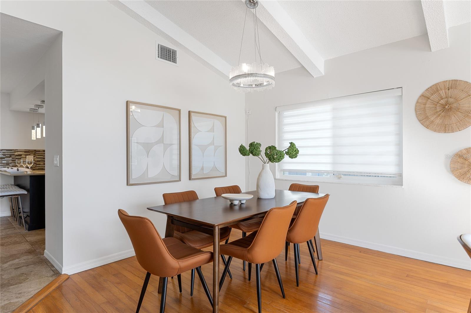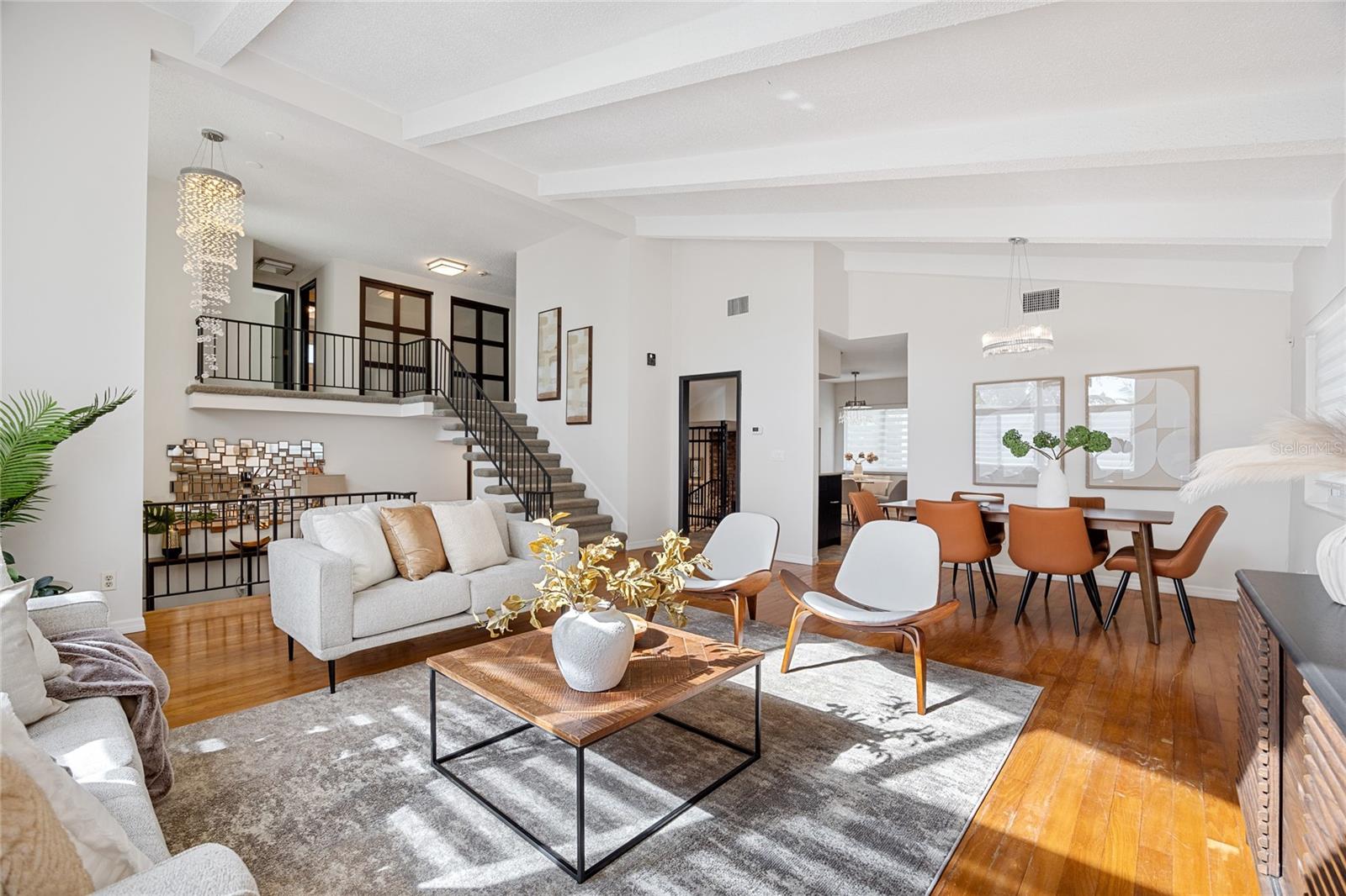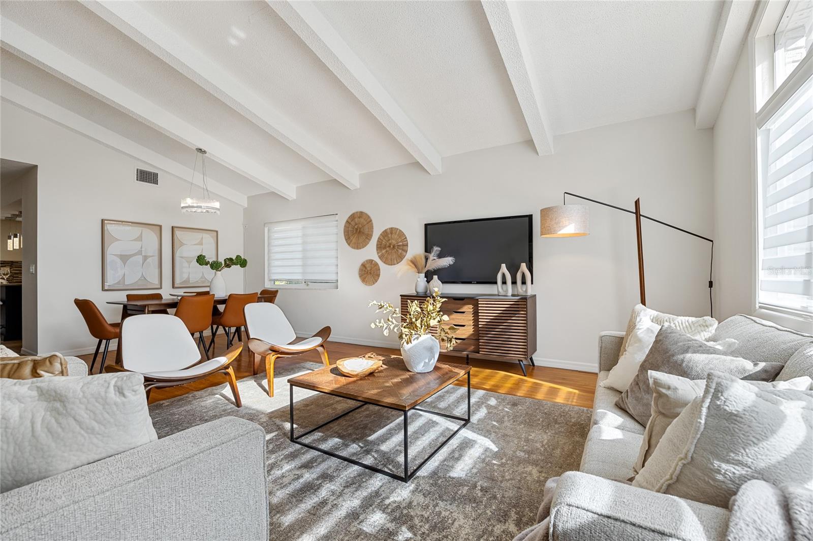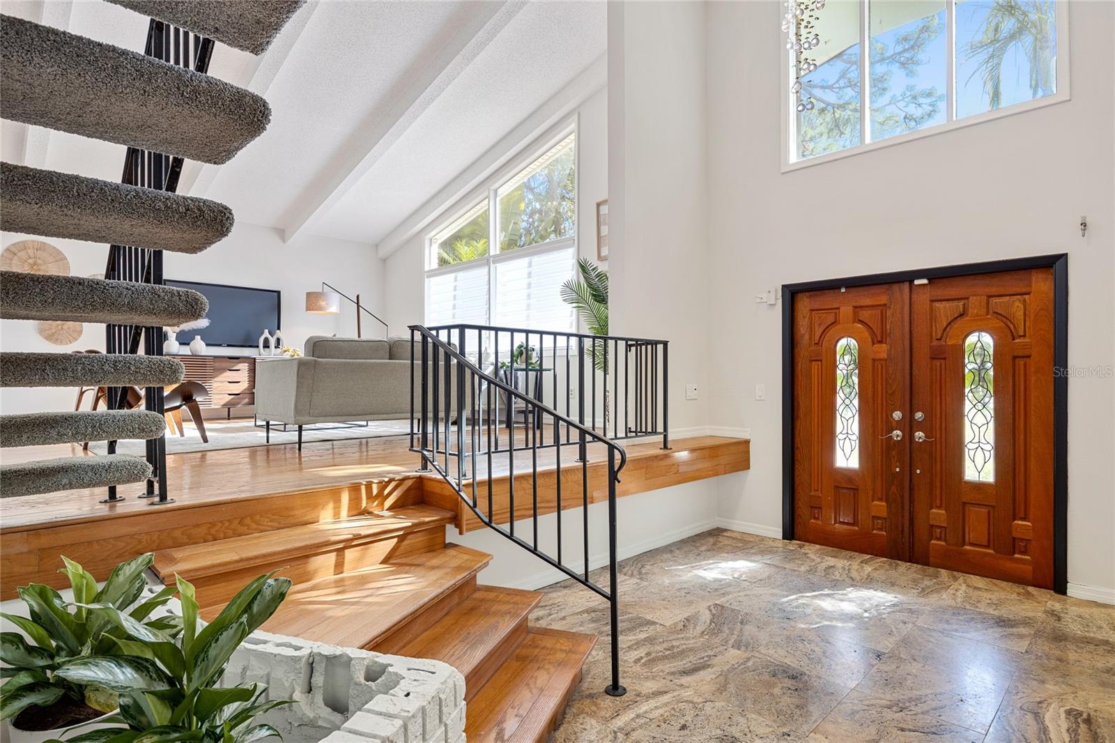 Tucked away on an oversized lot in the sought-after Whispering Pines neighborhood, this super spacious four bedroom, three bath home delivers the perfect blend of mid-century character and modern comfort. Set among magnificent mature pines, the neighborhood feels established and serene while still being just minutes to beaches, schools, and everyday conveniences. From the moment you step inside, the home makes a statement with soaring ceilings, abundant natural light, and an airy open feel. Hardwood floors, a cozy fireplace, and expansive living spaces create a warm, welcoming atmosphere that feels both impressive and livable. All bedrooms are thoughtfully located upstairs, offering privacy and separation from the main living areas. The large open kitchen is ideal for entertaining, with panoramic views of the exceptionally private backyard. The generous lot offers tons of room to add a pool, create an outdoor oasis, or simply enjoy the space and privacy rarely found this close to everything. Built with solid block construction, this mid-century home also features a brand new roof and sits high and dry in Flood Zone X. Spacious, light-filled, and full of potential, this is a rare opportunity to own a home with both character and room to grow in one of the area’s most desirable neighborhoods. Don’t miss your chance to see inside this Whispering Pines gem. *Note owner has cameras on property. Alarm system conveys but standalone ring cameras do not. All windows except for a few are impact resistant. The French doors in back and window above the front door and the large triangle window are not, but they have hurricane shutters.