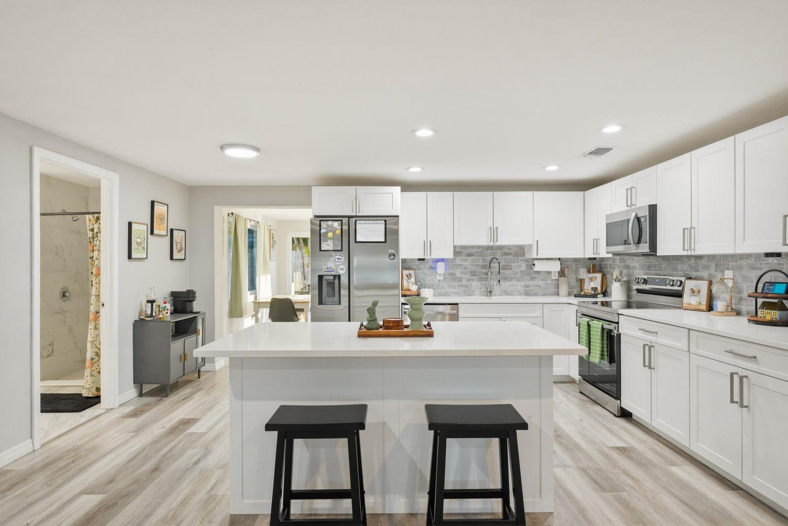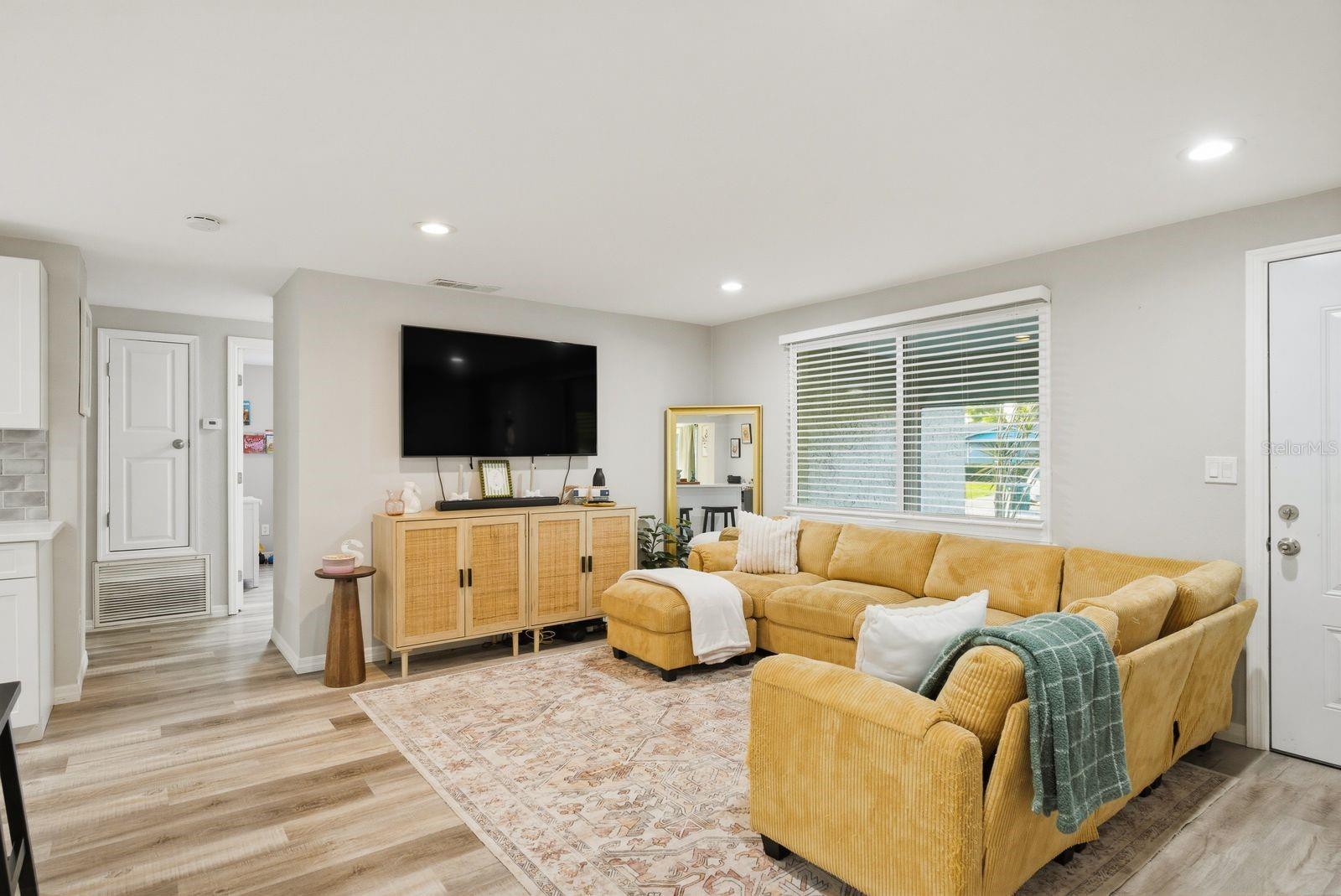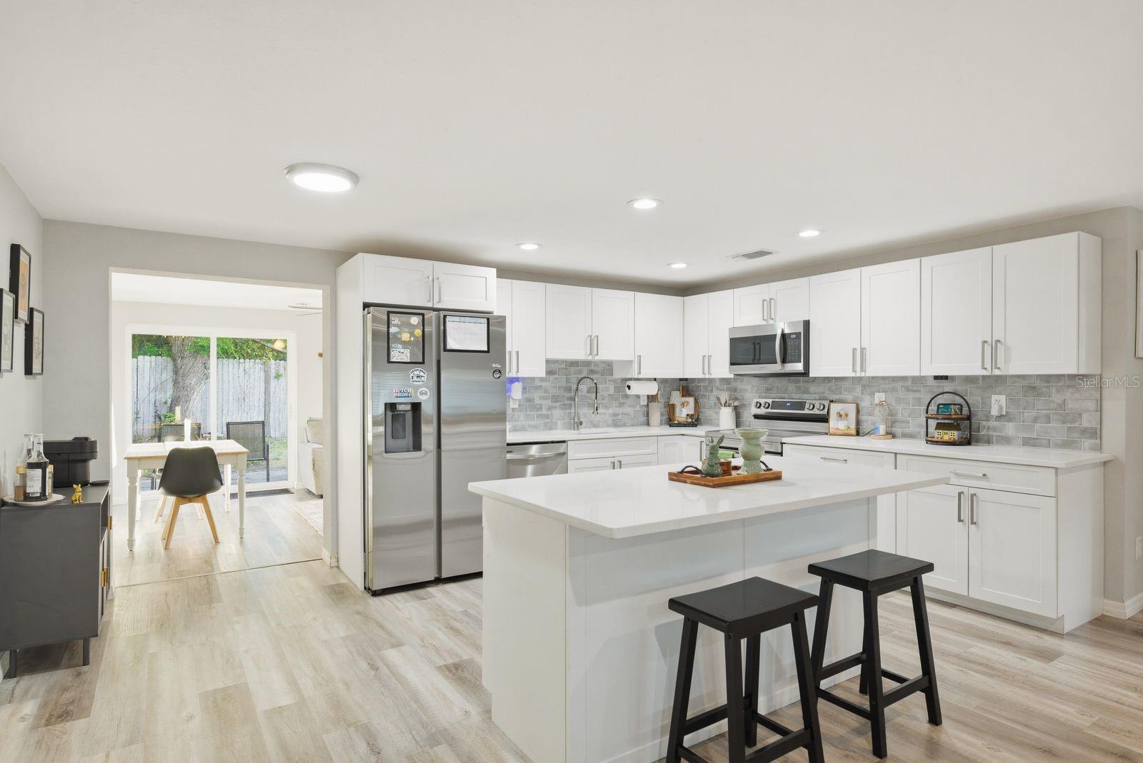 Welcome to this charming 3-bedroom, 2-bath, completely updated home offering 1,442 square feet of clean, inviting living space. This move-in-ready property features fresh interior paint, updated flooring throughout, and a bright, modern feel from the moment you step inside. The spacious kitchen has been beautifully updated with quartz countertops, sleek tile backsplash, a large island, and all-new appliances, perfect for both everyday living and entertaining. Both bathrooms have also been tastefully renovated and feature walk-in showers, and double sink vanities. Enjoy the benefit of two separate living areas, offering flexible space for a family room, living room, home office, or playroom. Step outside to a fully fenced backyard with plenty of room to unwind or entertain. Additional updates include updated sliders, and new roof completed in 2023, offering peace of mind for years to come. Centrally located and just minutes from the beaches, as well as shopping and dining, this home combines comfort, style, and convenience. Don’t miss your chance to own this beautifully updated home, call for a private showing today!