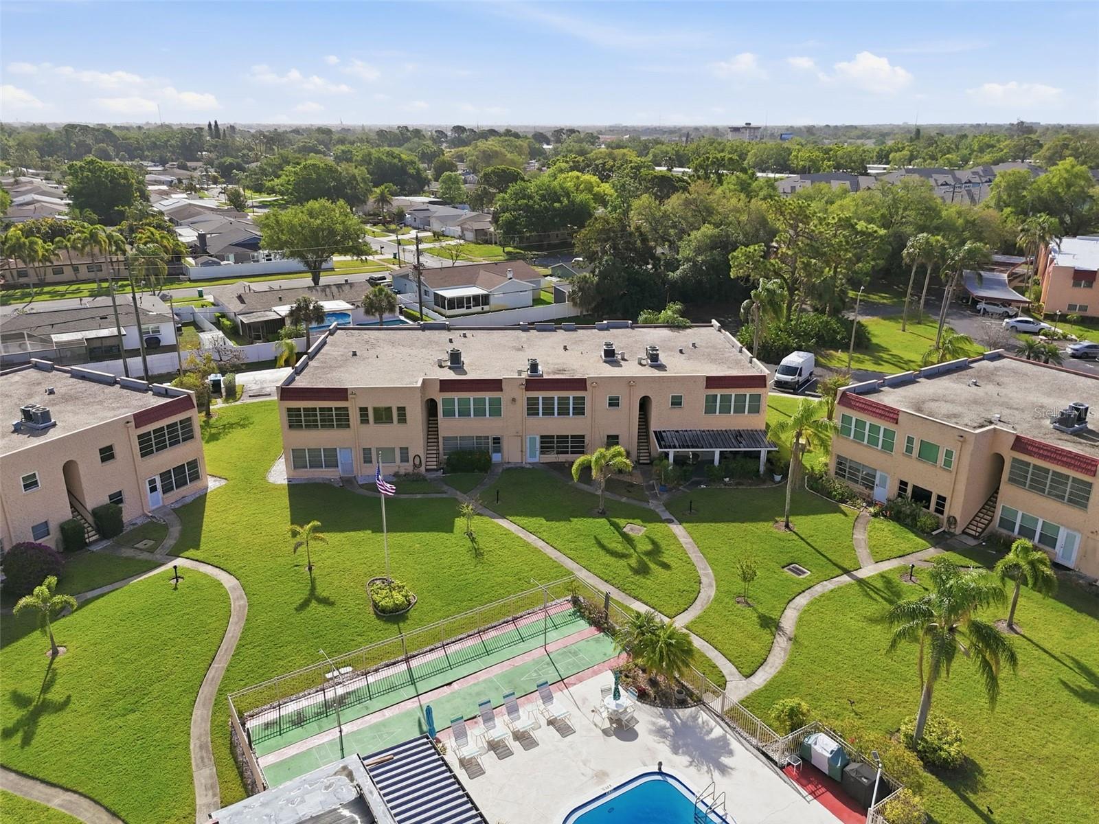 Welcome Home to 212 Cedarwood Circle, Seminole, FL 33777 Nestled in the highly sought-after 55+ community of The Gardens, this stunning corner-unit condo offers the perfect blend of comfort, style, and Florida living. With 3 bedrooms, 2 full bathrooms, and 1,400 square feet of beautifully upgraded living space, this second-floor residence is ready to impress from the moment you step inside. The bright, open-concept kitchen is a true showstopper, featuring elegant quartz countertops, a gorgeous tile backsplash, and gleaming LG stainless steel appliances. The expansive breakfast bar — measuring nearly 3.5 by 8 feet — comfortably seats up to six, making it the ideal gathering spot for morning coffee or evening entertaining. Every detail has been thoughtfully considered, from abundant storage to modern finishes that elevate the entire space. Throughout the home, you'll discover tasteful upgrades including six-panel doors with newer hardware, crown molding, updated baseboards, and contemporary lighting fixtures with ceiling fans. Professionally installed plantation shutters frame the windows beautifully, while durable waterproof laminate flooring flows seamlessly from room to room. Both bathrooms have been refreshed with newer vanities, and the guest bath features a convenient walk-in shower. The sun-drenched Florida room is an absolute gem — a tranquil retreat where you can unwind while soaking in views of the sparkling community pool and lush tropical landscaping. Additional highlights include a newer A/C system installed in 2019 with a smart Nest thermostat, a large mirrored sliding closet in the guest room. This home comes with one covered carport and an additional parking spot located just steps from your door. Community amenities enhance everyday living with a heated pool, spacious clubhouse, outdoor grill area, and shuffleboard courts. The location is unbeatable — adjacent to scenic Lake Seminole Park, minutes from Seminole Lake Country Club, and a short drive to Seminole City Center and the stunning Gulf beaches. Shopping conveniences like Publix and ALDI are right around the corner. Don't let this beautifully maintained condo slip away. Call today to schedule your private showing!