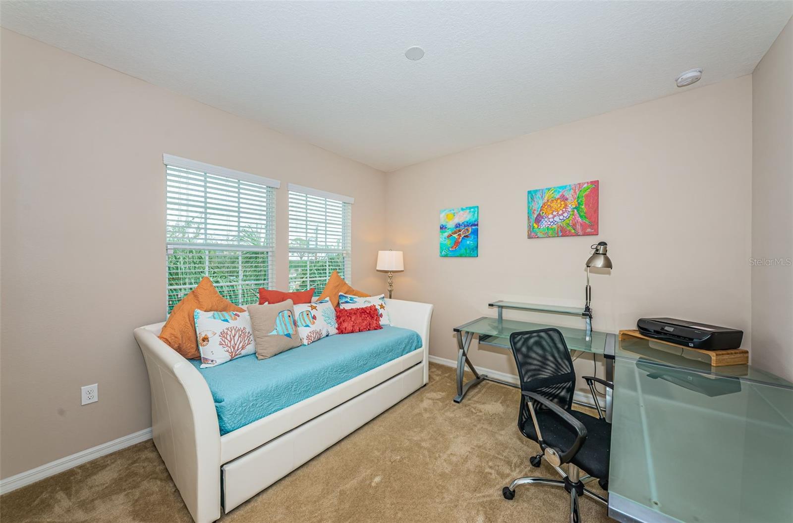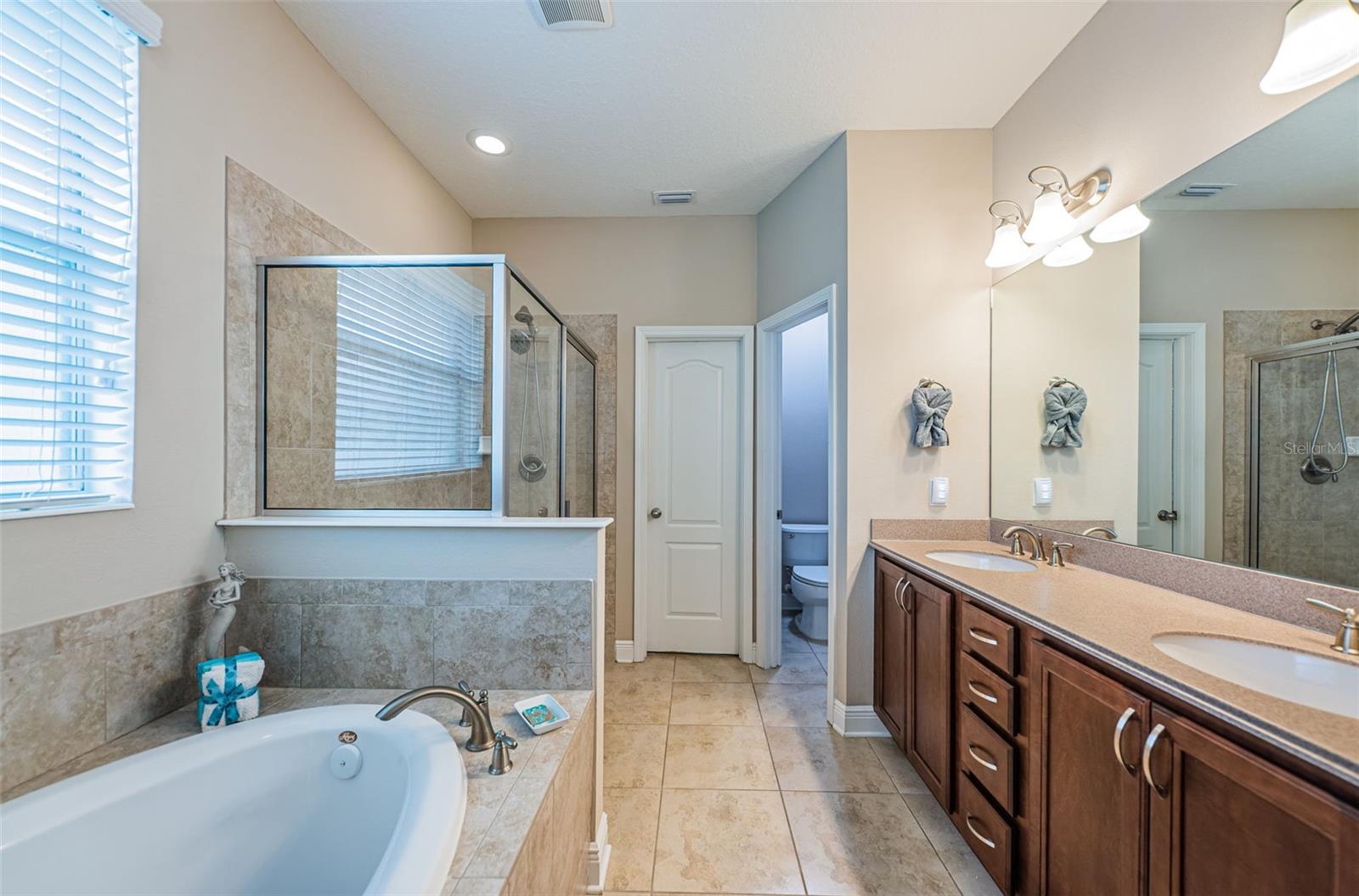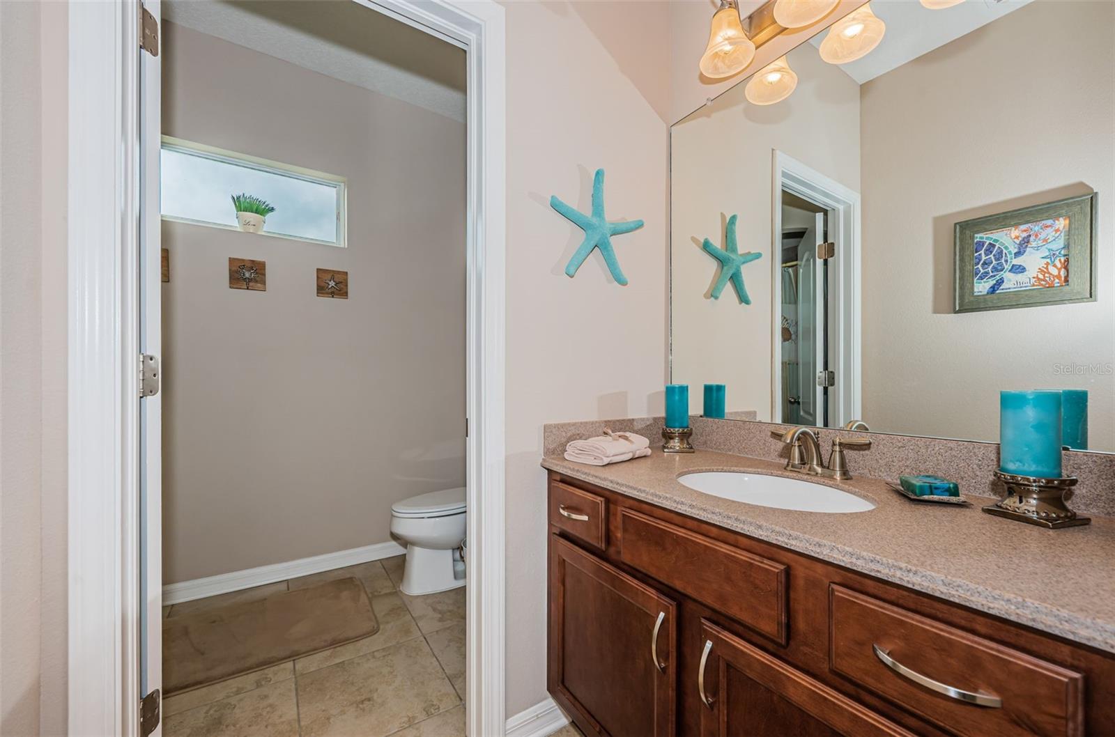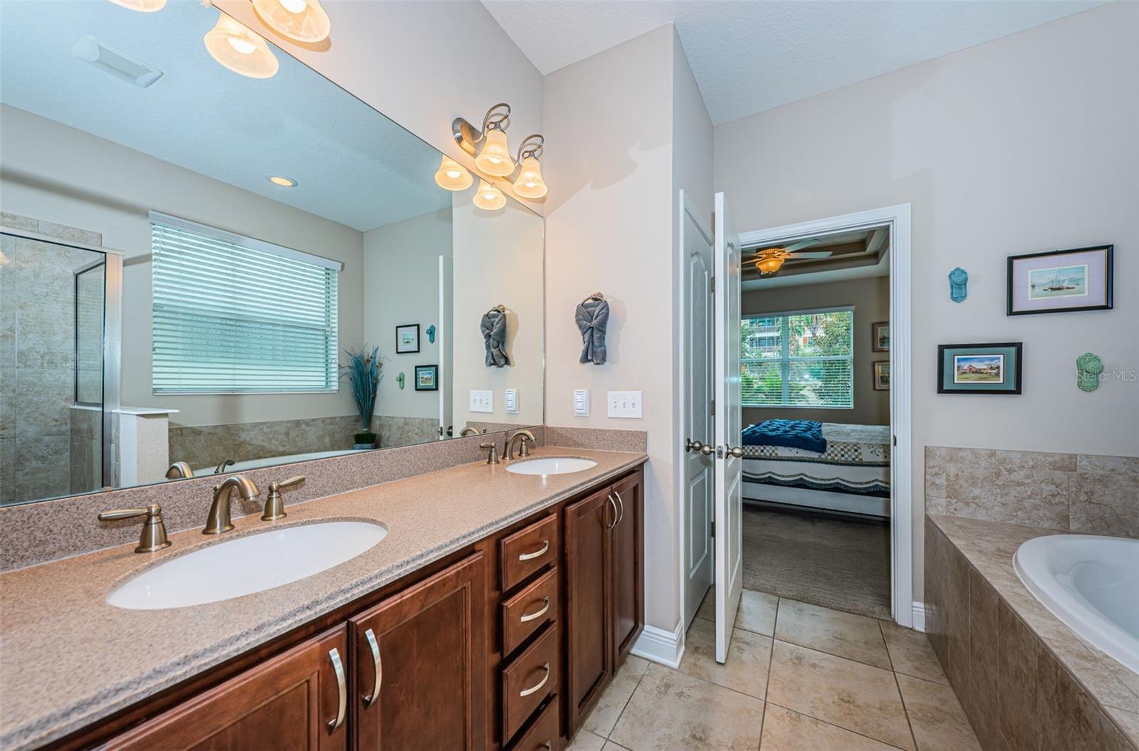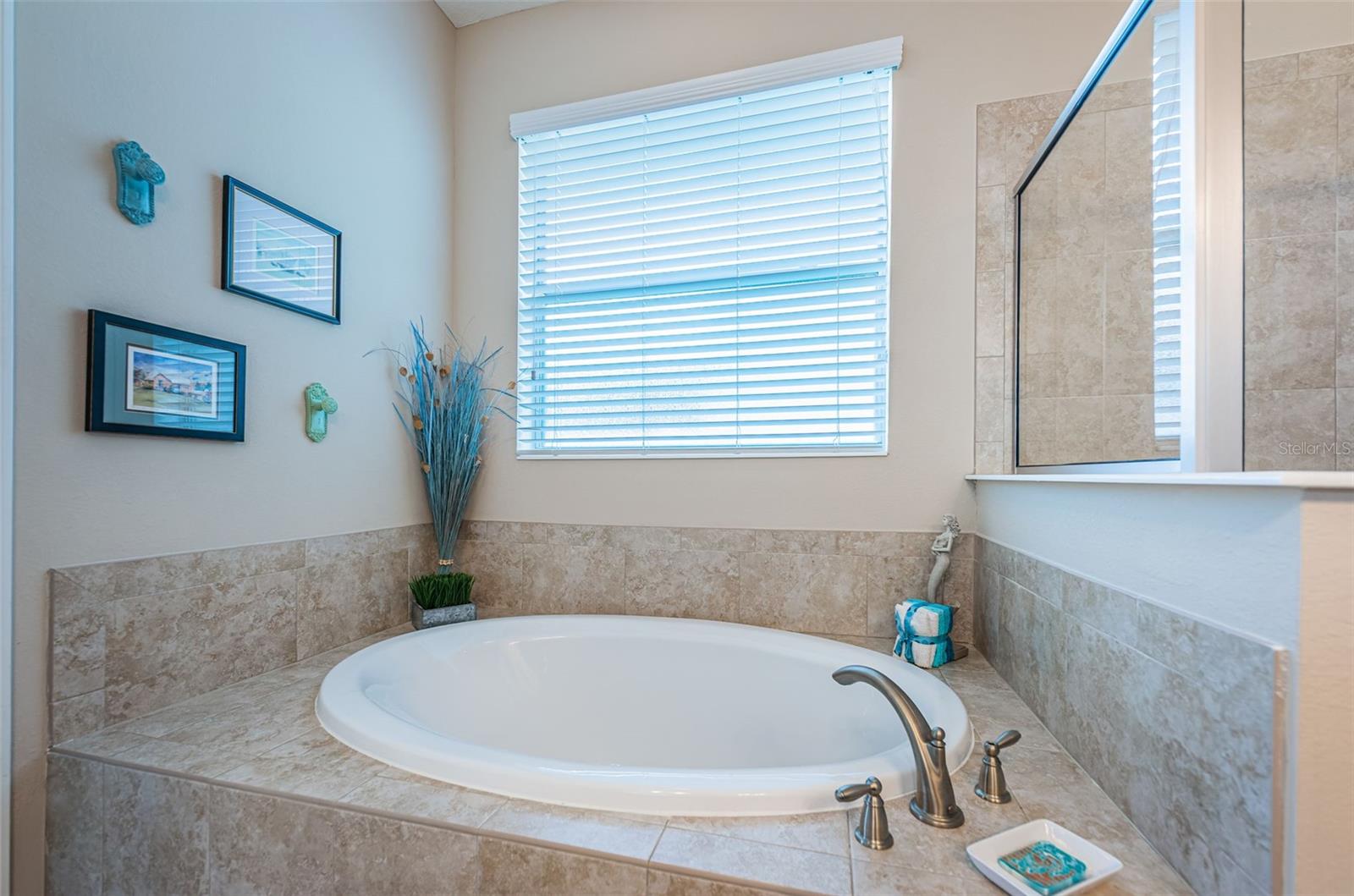 Seller offers to pay 1-point towards loan origination fee or a pay-down! Lowest annual insurance premium of $1,555 (for 2024/25) & 5-Year Ultimate Choice Home Warranty offered! Launch your Kayak into Lake Seminole! Less than 10 year old above-average constructed home with 9.3 foot ceilings throughout, and deep (134 ft) backyard to accommodate a free-form pool with large lanai! Welcome home to this 2015 built 2-story 4-bedroom home in private, gated “ENCLAVE at Lake Seminole” – steps to the lake, yet NOT in A FLOOD ZONE! Upon entering you are greeted by attractive 9.3' ceilings and durable wood-laminate floors throughout. Take note that the MASTER BEDROOM is located DOWNSTAIRS (Baypoint Model by Domain Home), featuring a large walk-in closet, master bath with a Garden soaking tub, walk-in shower, Silestone counter tops, double vanity and a private commode. The large Chef's EAT-IN KITCHEN is the central hub of this home, complete with wood cabinets, upgraded appliances, kitchen island, pantry, architectural arches & Granite counters overlooking the inviting GREAT ROOM. Sliders opening up to a cozy back porch and picturesque yard – perfect for entertaining and hosting barbecues with family and friends. 3 full bedrooms plus a small hobby room, den or office, a full bathroom, and spacious laundry room are located on the 2nd floor. Each closet is individually lit and vented and 2 A/C systems allow to control temperatures separately on each level. Other features include a wireless alarm system, two attic accesses, hurricane shutters, ceiling fans, ample shelves and EXTRA OVERHEAD STORAGE in garage, RING door bell, private mailbox, a shingle hip roof that meets wind mitigation standards, new paved double driveway, quaint front porch, sprinklers on sensors (Pinellas County Utilities), beige-vinyl fencing, tropical landscape & splendid sunsets! The Enclave is a deed-restricted 15-homes gated community with its own private access and fishing pier on Lake Seminole, $175 monthly HOA fee covers ground maintenance near entrance, gates, private roads and sidewalks, common areas, community fishing dock on Lake Seminole; annual rentals, and 2 large dogs permitted. Located a few minutes to new Seminole City Center, schools & St. Petersburg College, Seminole Rec Center, post office, shopping, Movie theater, restaurants, 10 minutes to Gulf Beaches and a 25-min. drive to Tampa International Airport! Free Membership to the Seminole Rec Center (113th St.) with large public swimming pool, lots of classes, pickleball, and workout machines! Call to see this move-in ready and turn-key home today!