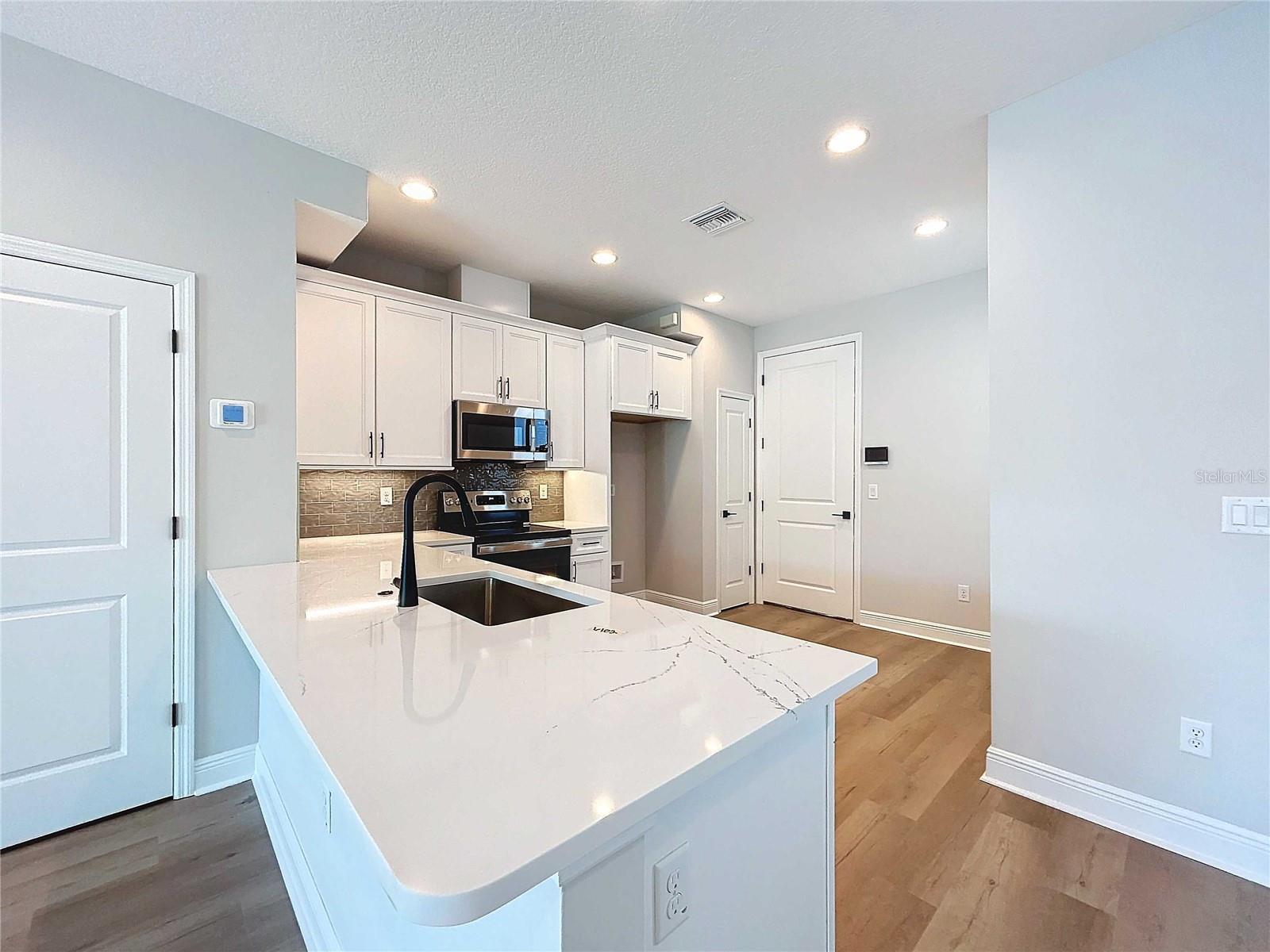 Under Construction. PRICE REDUCTION! NEW CONSTRUCTION! MOVE-IN READY! Welcome to The Towns at Long Bayou, where luxury meets convenience. This beautifully designed 3-bedroom, 2.5-bathroom townhouse boasts luxury vinyl flooring throughout, white cabinetry with soft-close drawers, quartz countertops, and a stylish tile backsplash in the kitchen. The open floor plan features a spacious kitchen overlooking the dining and great rooms, with large slider doors leading to a full-width covered lanai. Upstairs, the primary suite includes a walk-in closet and a bathroom with double sinks and a linen closet. Two additional bedrooms, a second full bathroom, and a dedicated laundry room complete the second floor. Situated in a peaceful pond-view location at the back of the community, this home offers a serene retreat just minutes from everything Seminole, FL, has to offer. You’ll love being near Lake Seminole Park, 10 minutes from beautiful beaches like Redington Shores and Madeira Beach, and a short drive to the new Seminole City Center, packed with shops, restaurants, and entertainment options. Plus, it’s less than 20 minutes to marinas and the lively John’s Pass Village & Boardwalk, making it perfect for those who embrace the Florida lifestyle. Now Offered at $530,000 – A huge price reduction from $557,971! Don’t miss this opportunity to own a move-in-ready home with premium features in an unbeatable location. - COME SEE OUR MODELS 11-5PM - HOA covers Roof, Pest control, Exterior maintenance and Lawn care.