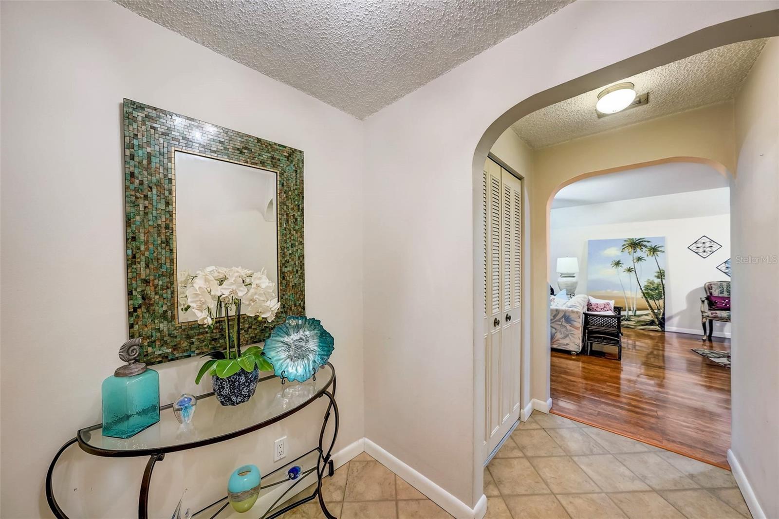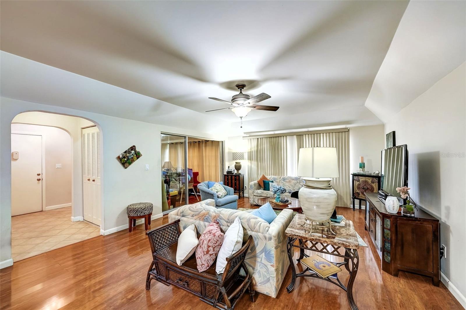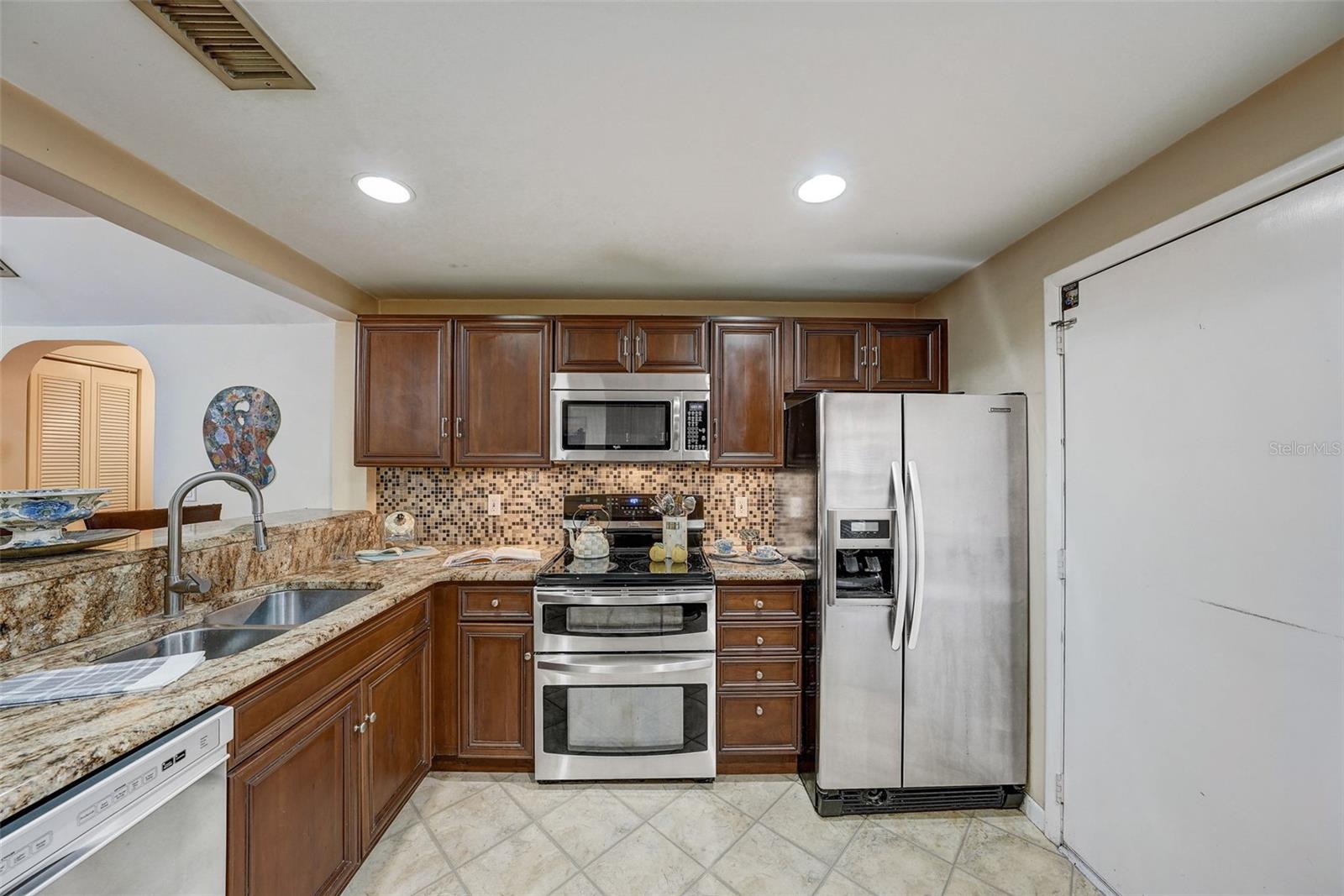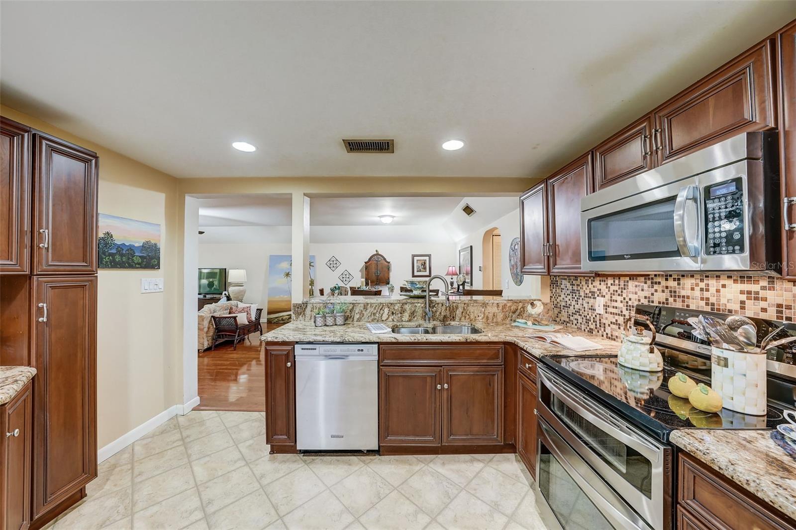 Introducing a rare first-floor Cordova Greens III condo in Seminole, offering a larger living space with numerous upgrades. This is not your typical galley condo. The formal foyer entrance leads to a large open shared living and dining room space with tall, smooth ceilings and curved archways lending to a sense of elegance and spaciousness. The kitchen underwent a transformation to seamlessly integrate it into the open floor plan ambiance. Originally enclosed, the remodel involved removing walls, installing a breakfast bar, incorporating custom wood cabinetry with two closet pantries, additional cabinetry, and appliance drawers. This redesign also created ample space for food preparation and introduced recessed lighting for a modern touch. The star of the kitchen is the double convection oven with special features for slow cooking and bread baking. Gleaming faux wood laminate flooring unifies the primary living spaces, extending seamlessly from the living room to the bedrooms. The primary bedroom is generously sized and accommodates a cozy reading nook. Its en-suite bathroom features updates, including black granite countertops, wide custom wood drawers ideal for towel storage, Italian-style tile flooring, a walk-in closet, and a private water closet with a garden bath. The guest bedroom is also a nice size with double floor to ceiling closet space. The guest bathroom is adorned in earth-tone granite, beautiful green vessel sink, and walk-in shower. Laundry convenience is in the hallway. The vented Florida Room is extra square footage not included in the 1,455 SF, and serves as an office, den, or craft room. The condo provides ample storage with a foyer closet, linen closet, utility closet that holds the water heater and cleaning appliances, and there is an exterior private locked storage on front patio. The Lennox 2.5-ton A/C with UV light was just installed in August of 2023. The condo features a private front patio, one assigned carport space, and ample guest parking right next to the carports. A total of 2 pets, dogs or cats, are allowed per condo. The heated and cooled community pool is shared by Associations I, II, and III; and it is a great place to meet neighbors. The pool area includes a jacuzzi hot tub, outdoor shower, and two bathrooms. This condo is alongside beautiful Bardmoor Blvd, and the wide shoulder of this road provides a great place for power walking and bicycle riding. As a Bardmoor Neighborhood owner, you have the option to join the two nearby country clubs, providing access to golf courses, tennis facilities, and social gatherings. Not too far from the condo is Lake Seminole and the white sands of the Gulf of Mexico. The condo is not in a flood zone, has no land lease, and falls under Storm Evacuation D. The monthly condo fee is $898.43 and covers all utilities except electric, including Spectrum high-speed internet and cable. Gas utility is not available. No age limit; however, Cordova Greens III does limits the number of rented condos. A fresh coat of paint would enhance this already upgraded condo. Check out the virtual tour and contact your Realtor to experience the potential of living the Florida lifestyle in this spacious condo. Ask your Realtor to help you compare the benefits of mostly maintenance free living versus single family home ownership.