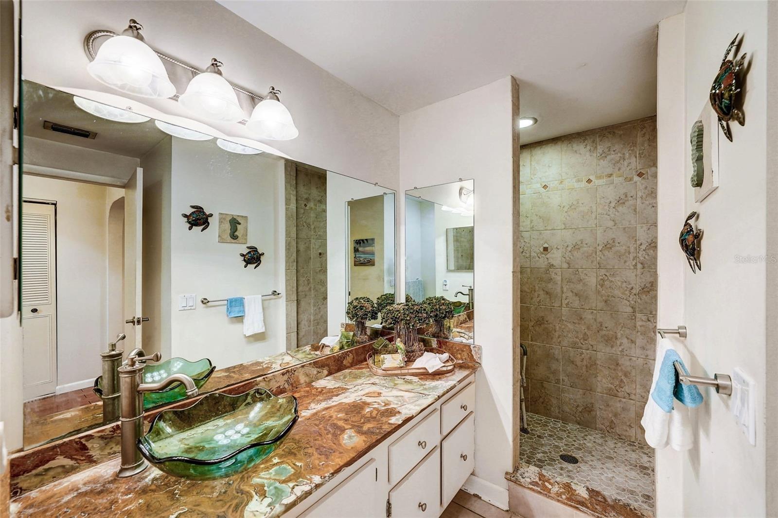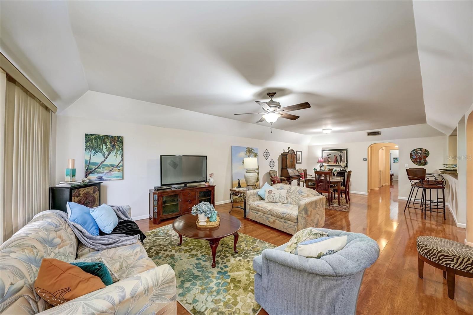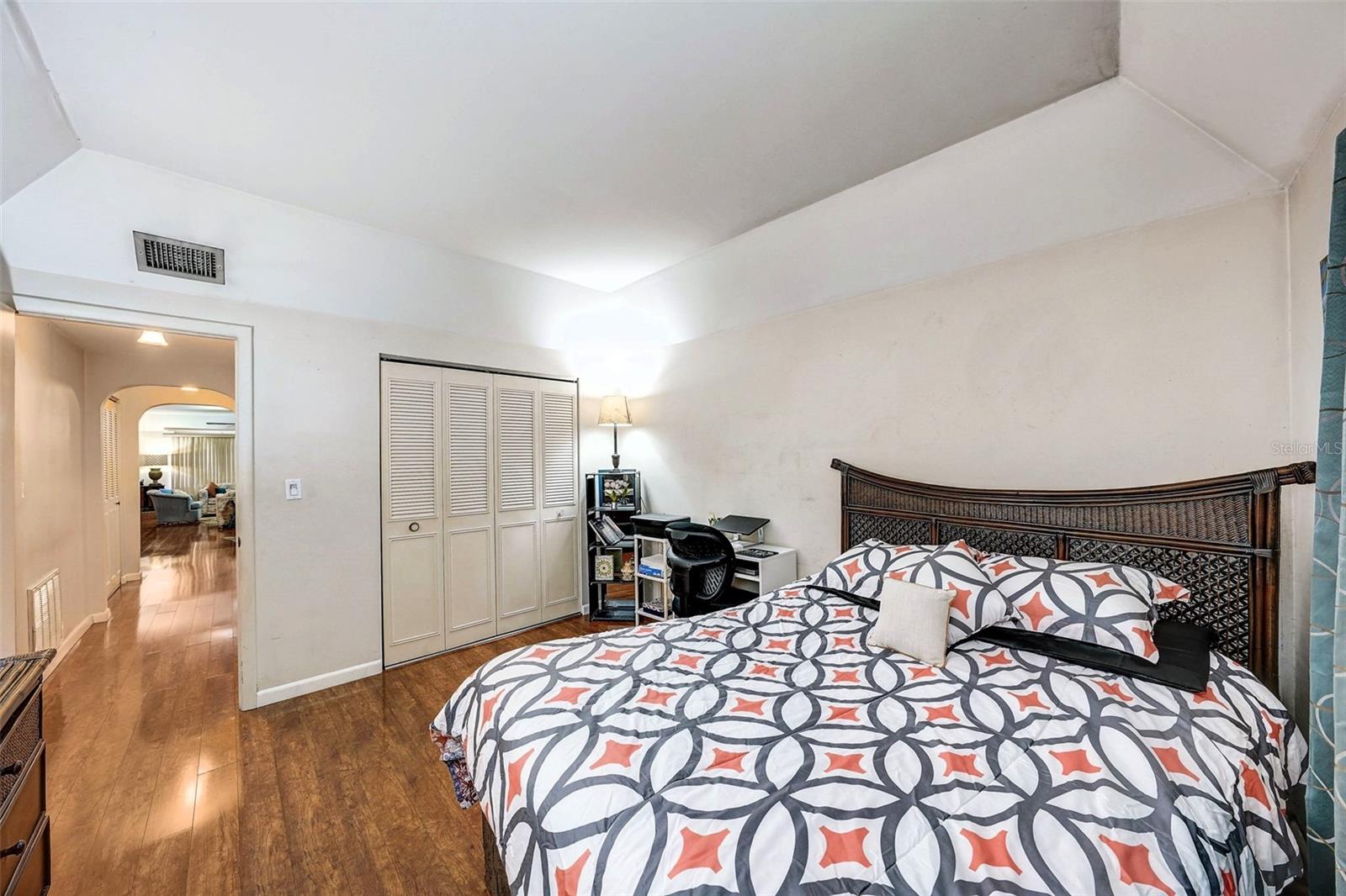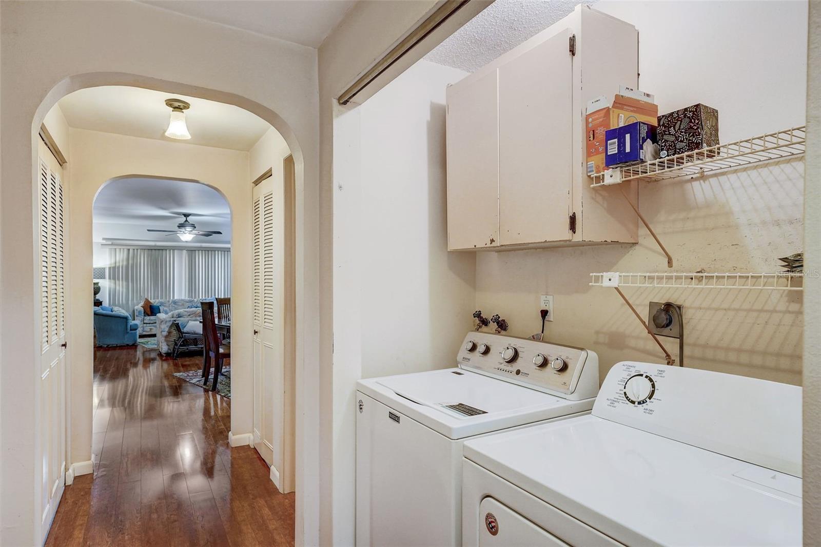 Introducing a rare first-floor Cordova Greens III condo in Seminole, offering a larger living space with numerous upgrades. This is not your typical galley condo. The formal foyer entrance leads to a large open shared living and dining room space with tall, smooth ceilings and curved archways lending to a sense of elegance and spaciousness. The kitchen underwent a transformation to seamlessly integrate it into the open floor plan ambiance. Originally enclosed, the remodel involved removing walls, installing a breakfast bar, incorporating custom wood cabinetry with two closet pantries, additional cabinetry, and appliance drawers. This redesign also created ample space for food preparation and introduced recessed lighting for a modern touch. The star of the kitchen is the double convection oven with special features for slow cooking and bread baking. Gleaming faux wood laminate flooring unifies the primary living spaces, extending seamlessly from the living room to the bedrooms. The primary bedroom is generously sized and accommodates a cozy reading nook. Its en-suite bathroom features updates, including black granite countertops, wide custom wood drawers ideal for towel storage, Italian-style tile flooring, a walk-in closet, and a private water closet with a garden bath. The guest bedroom is also a nice size with double floor to ceiling closet space. The guest bathroom is adorned in earth-tone granite, beautiful green vessel sink, and walk-in shower. Laundry convenience is in the hallway. The vented Florida Room is extra square footage not included in the 1,455 SF, and serves as an office, den, or craft room. The condo provides ample storage with a foyer closet, linen closet, utility closet that holds the water heater and cleaning appliances, and there is an exterior private locked storage on front patio. The Lennox 2.5-ton A/C with UV light was just installed in August of 2023. The condo features a private front patio, one assigned carport space, and ample guest parking right next to the carports. A total of 2 pets, dogs or cats, are allowed per condo. The heated and cooled community pool is shared by Associations I, II, and III; and it is a great place to meet neighbors. The pool area includes a jacuzzi hot tub, outdoor shower, and two bathrooms. This condo is alongside beautiful Bardmoor Blvd, and the wide shoulder of this road provides a great place for power walking and bicycle riding. As a Bardmoor Neighborhood owner, you have the option to join the two nearby country clubs, providing access to golf courses, tennis facilities, and social gatherings. Not too far from the condo is Lake Seminole and the white sands of the Gulf of Mexico. The condo is not in a flood zone, has no land lease, and falls under Storm Evacuation D. The monthly condo fee is $898.43 and covers all utilities except electric, including Spectrum high-speed internet and cable. Gas utility is not available. No age limit; however, Cordova Greens III does limits the number of rented condos. A fresh coat of paint would enhance this already upgraded condo. Check out the virtual tour and contact your Realtor to experience the potential of living the Florida lifestyle in this spacious condo. Ask your Realtor to help you compare the benefits of mostly maintenance free living versus single family home ownership.
