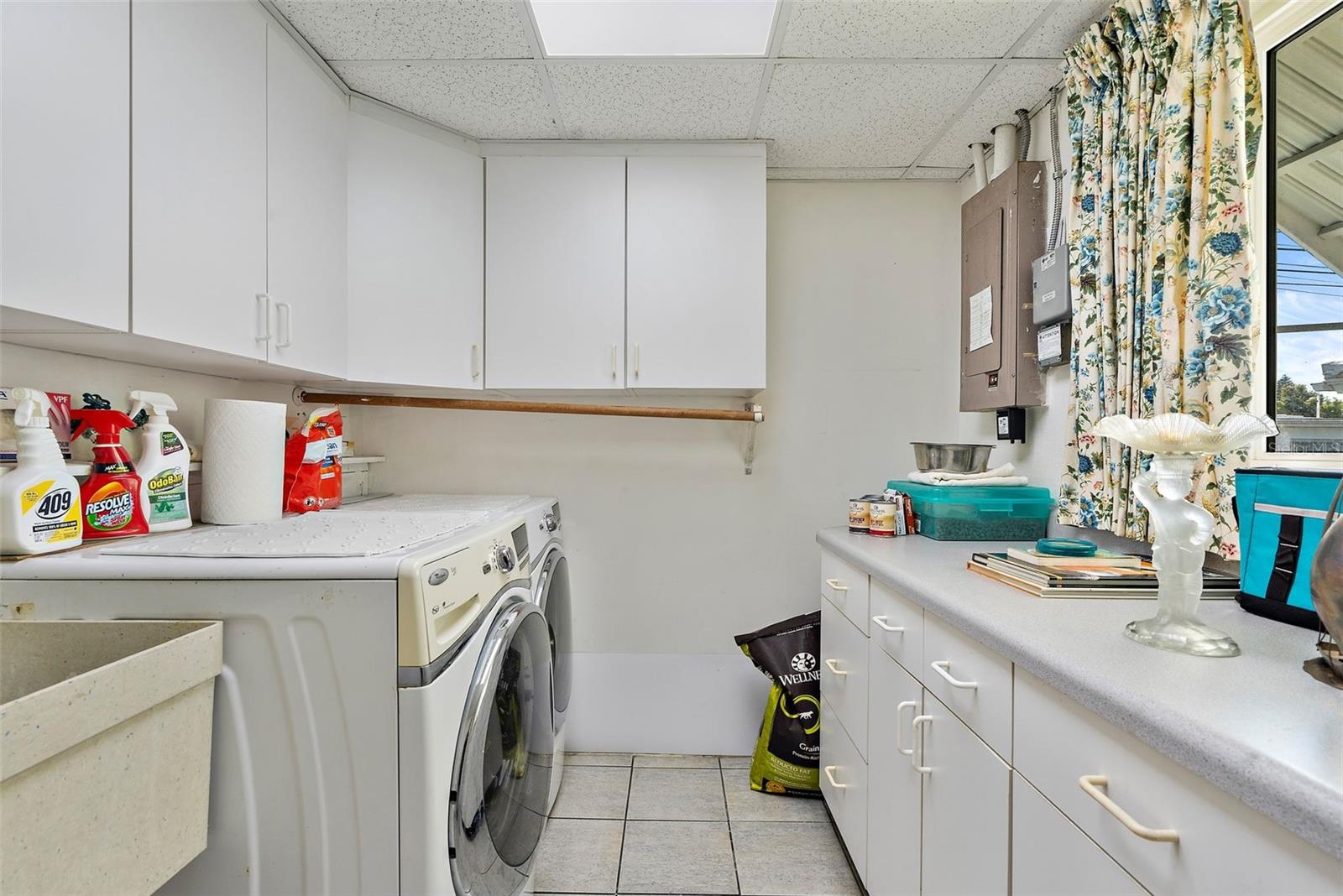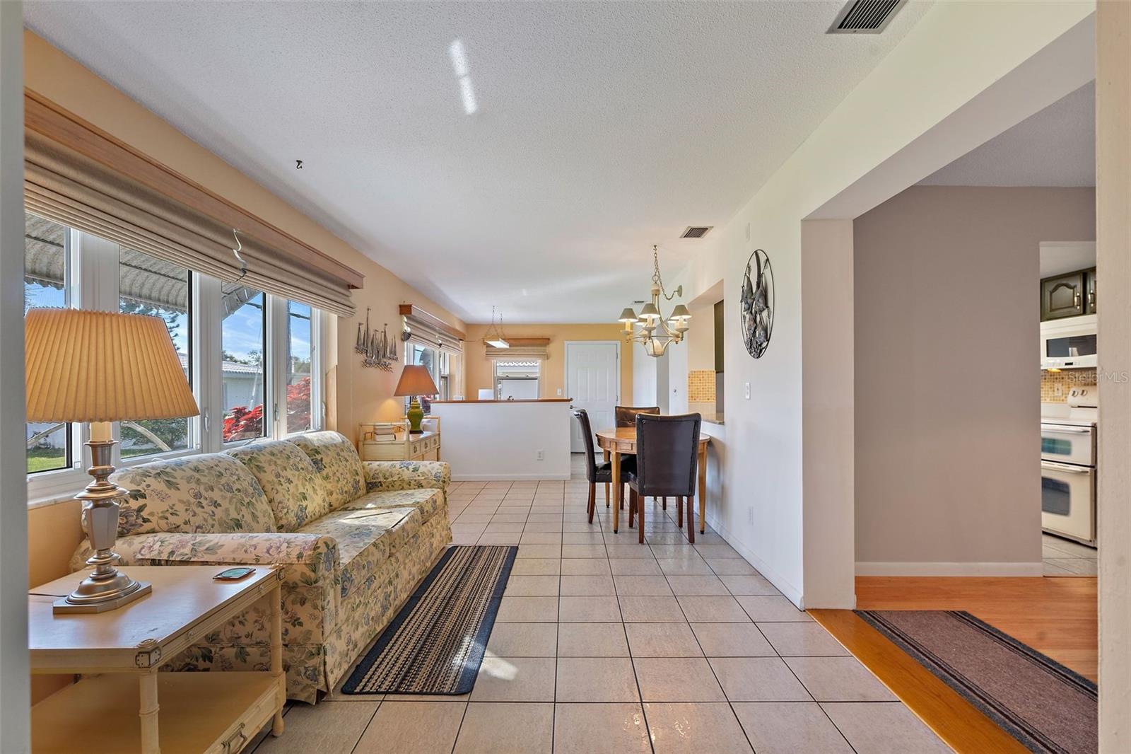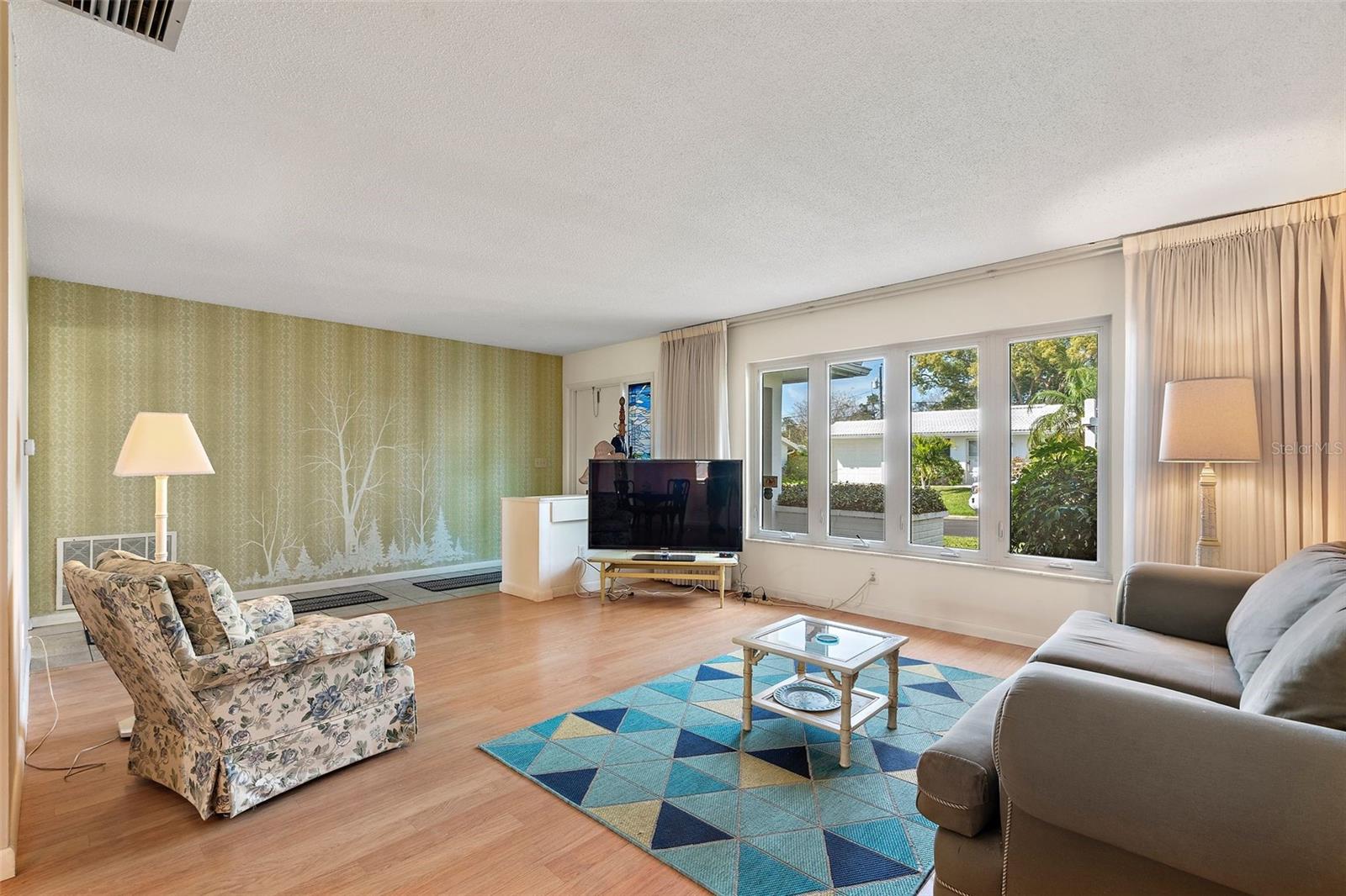 One of the largest homes in Tamarac by the Gulf is available and waiting for you. This 2 bedroom, 2 bathroom solid block home boasts 1767 square feet of living area and a 1 car garage. At first look you will notice hurrican impact windows and a durable tile roof, both installed in 2016. You will be greeted by a beautifully landscaped yard as you approach the entrance to this spacious home. This home was modified to accomodate persons in a wheel chair so the spaces are very open with the doors at 36" wide. There's a straight line entry from the front door to the kitchen where you will find a sizeable pantry with pull out drawers. Behind the kitchen is a bonus space which includes a built in 10x10 office space (total space is 30x10). The primary bedroom is very large and spacious and boasts an impressive oversized walk in closet. Bathrooms are ADA compliant and an on demand tankless water heater was installed for the 2 bathrooms so you don't have to worry about your water running cold. There is enough setback room for a 10x30 screen porch to be added to the back of the house. There has been brand new laminate floring installed in the living room and a brand new AC installed in 2024. Outside of the home, you can visit the clubhouse where you can play billiards, enjoy a game of shuffleboard or take a swim in the pool. There are too many benefits to list so make an appointment to come see it for yourself.