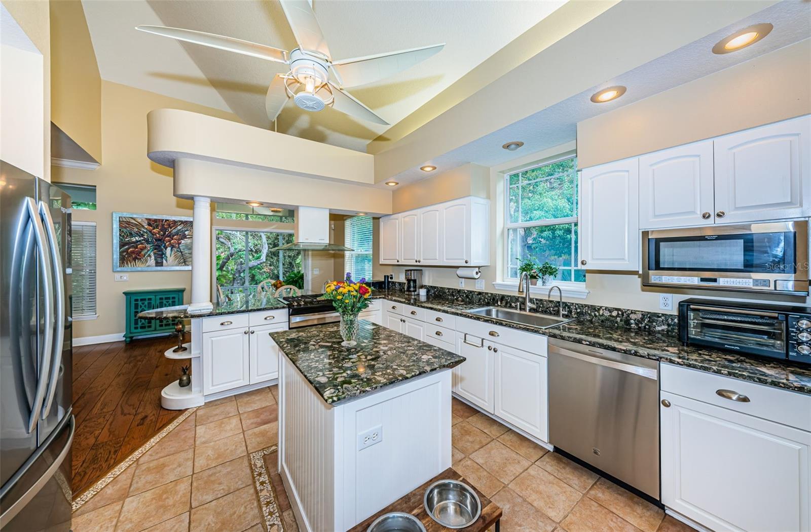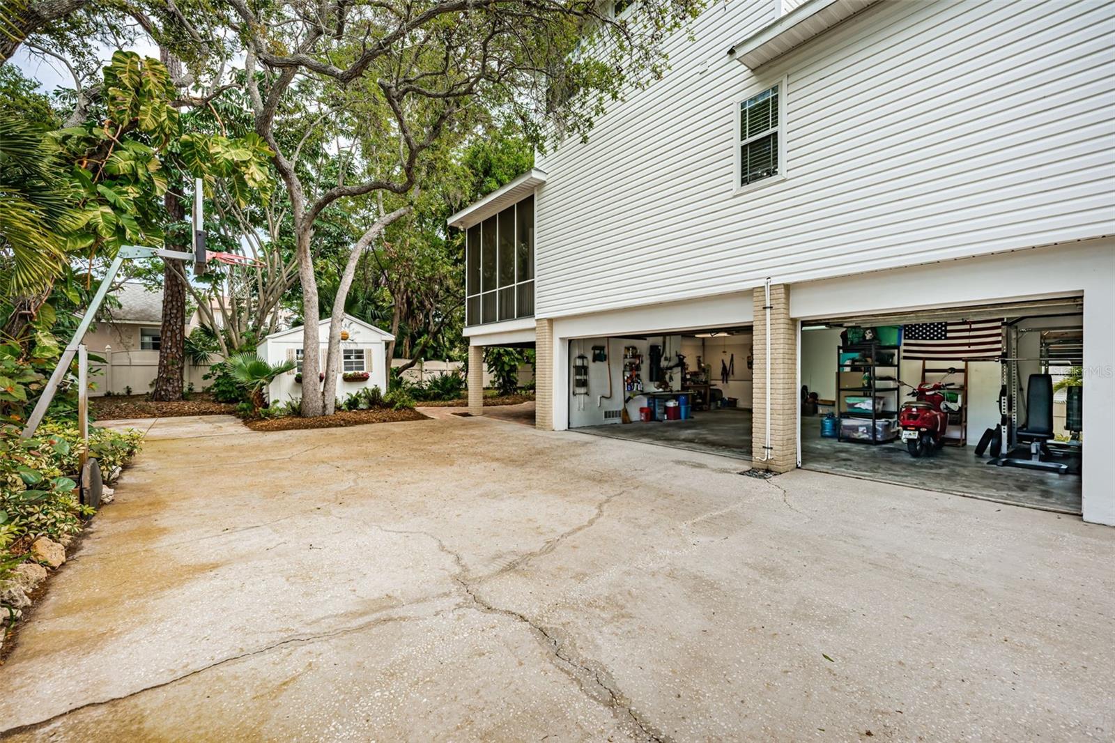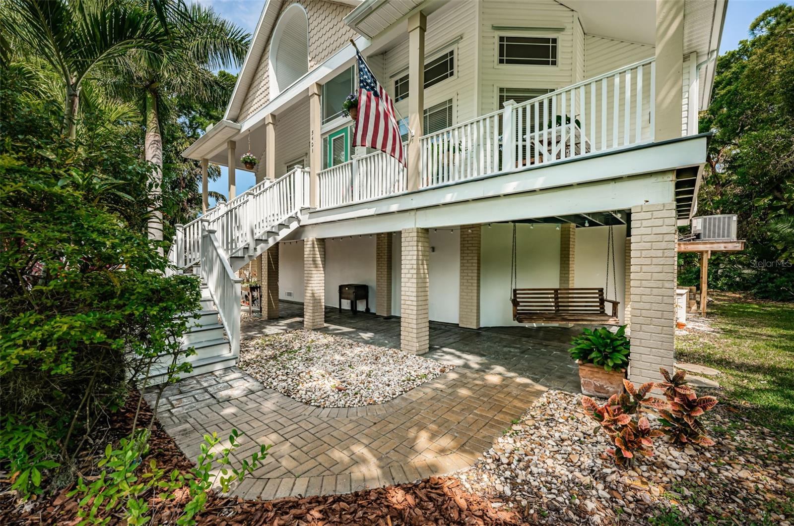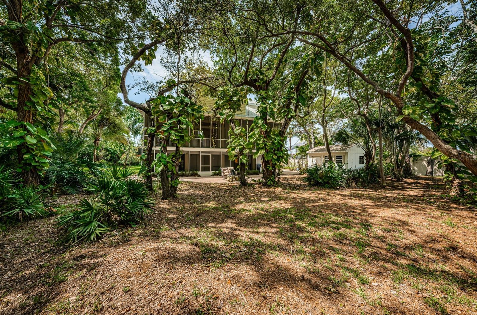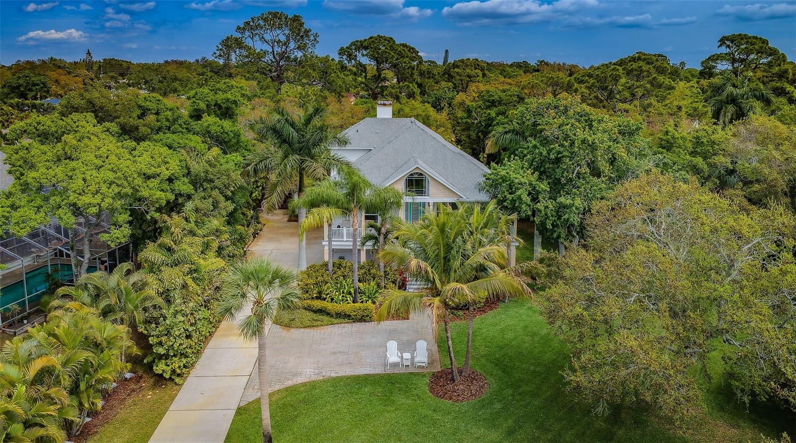 3/4 of an Acre to enjoy on secluded end of street location, tucked away in Seminole, in desirable Oakhurst Shores, minutes from Madeira Beach, Gulf beaches, VA Hospital, shopping, malls, golf course, marina, public and private schools, restaurants & Waterfront American Legion! Raised foundation custom-designed mol 3,000-sqft KEY WEST-style home embodies the “Olde Florida” with details such as wrap-around porches and a majestic staircase leading to an inviting veranda with spectacular sunsets to the west & lovely curb appeal! Uniquely shaped oversized lot bordering on county preserve for added privacy includes a front easement that makes this a ¾ acre lot with long driveway and ample parking - store your boat or RV next to the shed in the side yard. Upon entry, you are greeted by soaring ceilings with crown moldings, multiple open spaces, lots of natural light with big windows and a stunning view over the plantation-style green paradise growing in the backyard. A set of charming French doors open onto a marvelous screened back veranda, bringing the tropical environment indoors - an oasis of tranquility. Kitchen with GAS COOKING, the great room with gas fireplace & dining room are one space, delineated by individual functional areas & ceiling heights. 2 spacious guest bedrooms on the living area level feature their own bathrooms. The 3rd floor double-door entry, luxurious 600-sqft master retreat offers a wood-burning fireplace, plenty of room for relaxation, an office corner - lounging area, a soaking tub and separate shower in the master bath, water filtration system in sinks, plus a multi-room walk-in closet for every woman to fall in love with! The ground-level 750-sqft air-conditioned “MANCAVE” with SEPARATE ENTRANCE, bar, sink, refrigerator, mounted TV, and bathroom keeps the peace in the home! Multiple storage, garages, a covered back porch with gas hook-up for barbecue grill and/or Jacuzzi, and a gas fire-pit in the backyard for large gatherings & parties make this property even more desirable. Plenty of space to build your own custom pool with lanai! Other features include: NEW SHINGLE ROOF in 2019 and double TRANE A/C's in 2019, new Mini Split A/C unit for downstairs party room in 2020, water softener, central vacuum, aluminum HURRICANE SHUTTERS for front windows, security system with sensor lights, invisible dog fence, sprinklers on well (Rainbird Timer), extensive landscape lighting on timer, and various delightful fruit trees, including Carrie Mangos, Meyer's Lemons and Figs. NATURAL GAS saves energy using the tankless hot water heater with spare tank in laundry room off the kitchen; Survey available. Neighborhood of Oakhurst Shores and Seminole Estates feature all underground utilities. Hurry, come and see this unique and move-in ready beauty today - then make it your own!