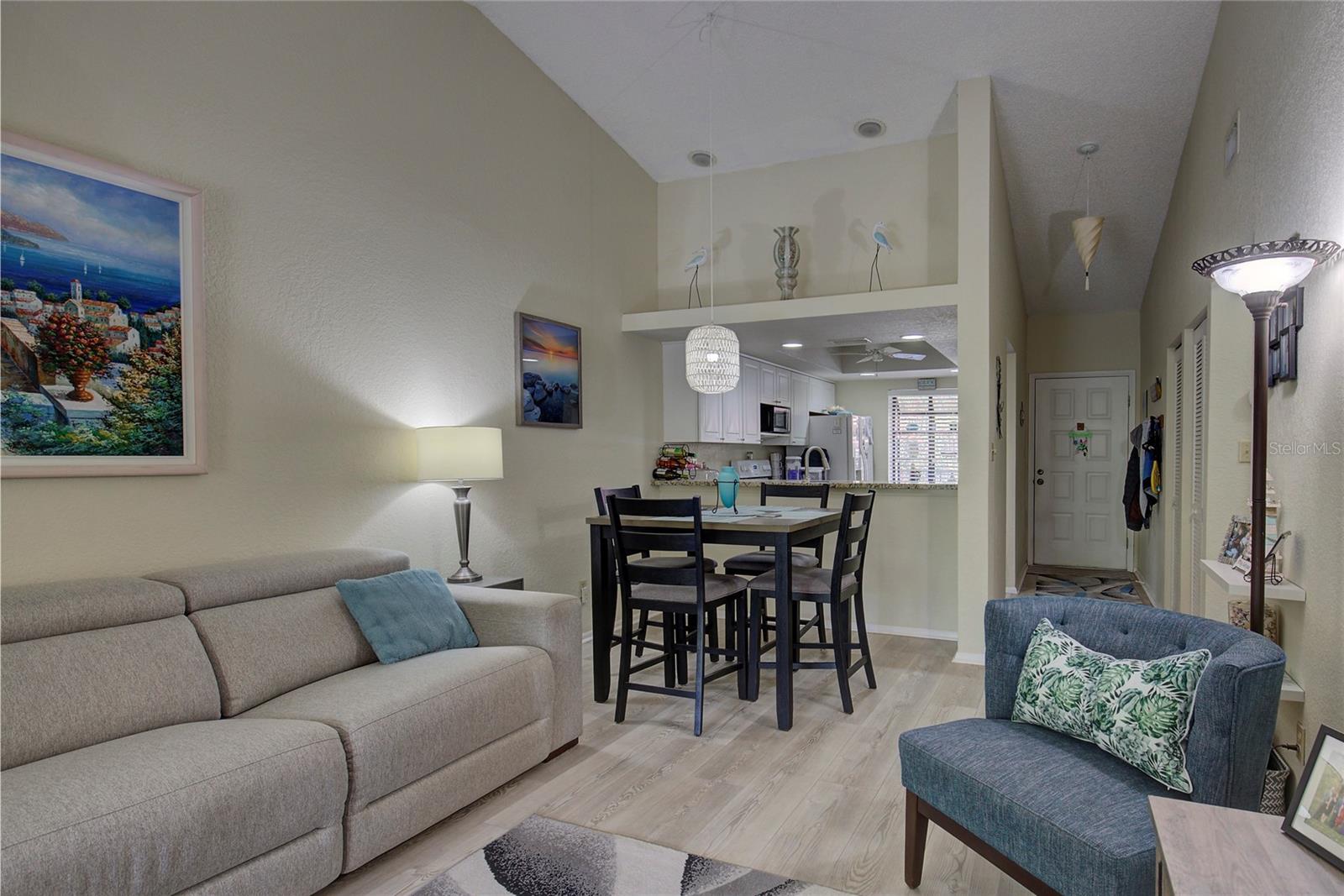 Motivated Seller. A second Price Improvement! This really is an immaculate bright 2 bed/ 2 bath second floor condo-split floor plan. Located in the Heart of Seminole only minutes from Indian Rocks beach, Seminole City Center offering Restaurants, Shopping, Health and Wellness options And so much more! The Unit has been tastefully remodeled with a beautiful kitchen that features soft close-pot drawers, granite countertops with plenty of space and storage. The living area has vaulted ceilings, it opens to a screened porch with a serene view. Recent Upgrades include New Vinly floors throughout, Fresh Paint, Ceiling fans in every room. Unit also offers In unit Washer and Dryer and an assigned carport parking space. Unlike most of the other units, your back porch is a peaceful oasis overlooking the well manicured grounds and tranquil pond where you can have enjoy your morning coffee or a private dinner after a long day. The Primary bedroom features an en-suite bathroom and walk in closet. The condo fee includes:water/sewer, trash, insurance, (NOT IN A FLOOD ZONE), Cable TV & Internet, grounds, amenites and Management. Included Amenties are: Clubhouse, pool, tennis courts, and Shuffleboard. Small Pet Allowed. Not a 55+ communtiy. Call today to make this yours. You'll love this unit!