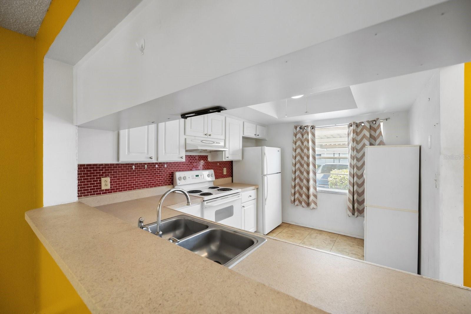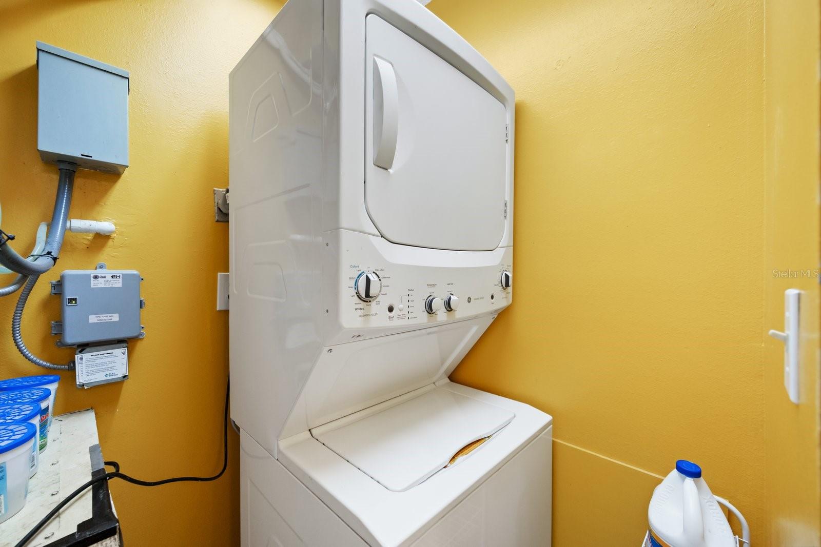 This condo is bright and cheerful! 2 bedrooms and 2 full baths, Walk In closets. The main living area is spacious and features a beautiful storm rated sliding door that leads to an open patio. The wood grain tile floors give it a warm and cozy feeling and add to hardwood floors in the master bedroom, and it makes the whole place low maintenance and easy to clean. There is utility room with inside laundry with washer and dryer too. The layout makes the best of the space and offers a big master bedroom with en-suite bath and walk in closet. The assigned covered parking is right out the front door. The community also offers big pool - all this centrally located between exciting DT and the beautiful beaches.