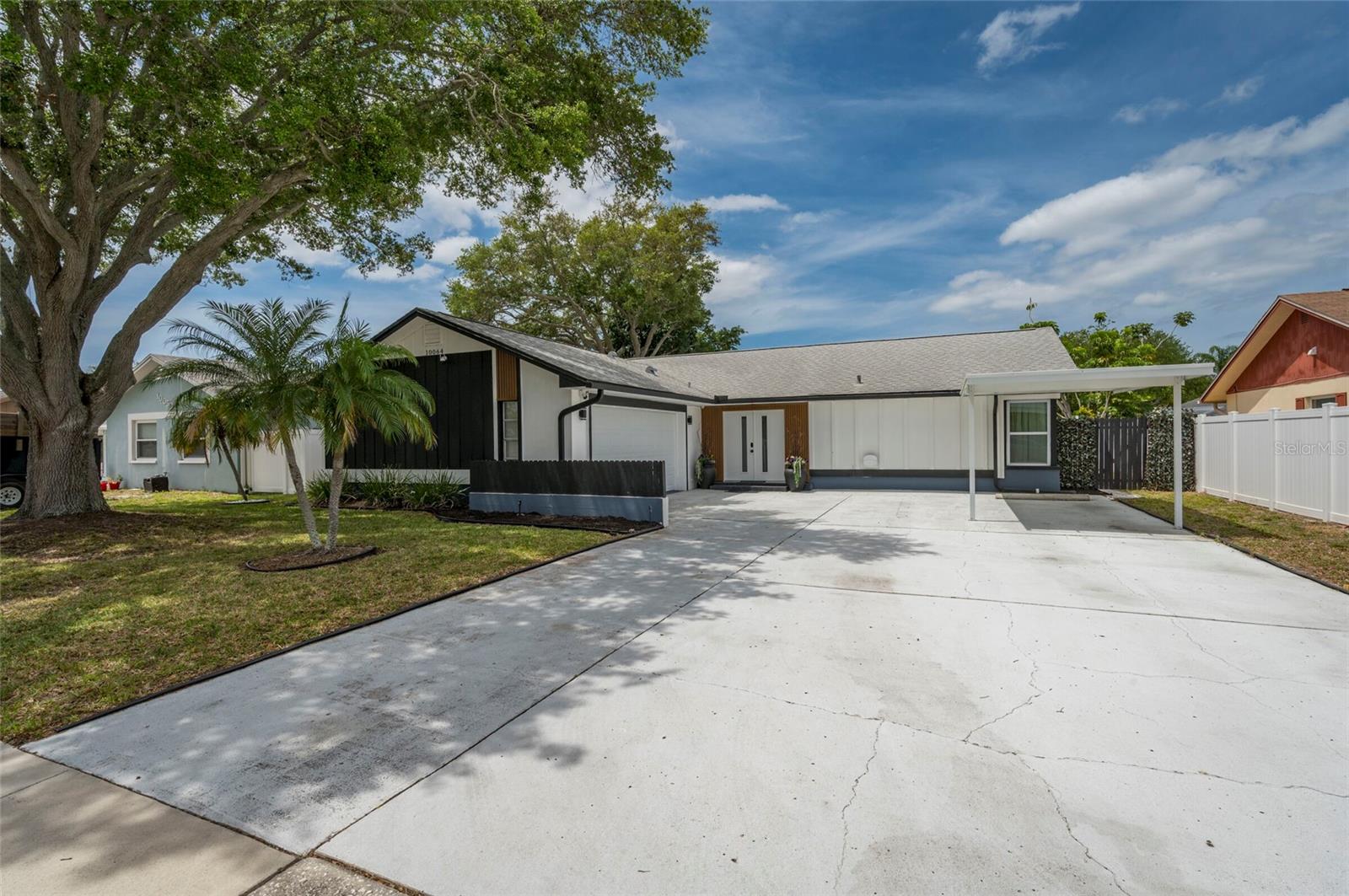 Nestled in the heart of Seminole, on a quiet street, this European Style upgraded home is ready for you to move in! Are you looking for more space? This home features 5 bedrooms, 2 full baths, an oversized 2 car garage with a new garage door, carport and tons of parking. You will love the open floor plan allowing you to entertain or unwind with the family. The gorgeous, renovated, chef's dream kitchen is spacious and well-lit with an abundance of QUARTZ counter tops, stainless-steel appliances, and island. Two glass sliding doors lead to the outdoor pergola where you can enjoy a cup of coffee in the morning. This home also features a split floor plan with the guest bedroom on the other side of the house, new windows, new electric panel, and two remodeled bathrooms. The master bedroom features a walk-in closet and a beautiful walk-in shower. The fully fenced in backyard is perfect for relaxing and entertainment. This house is located close to shopping, dining, and world class famous Florida beaches. NO FLOOD ZONE!!! The seller will replace the roof and AC with a full-price offer. Schedule your private showing today! Copy and paste this link for video tour. https://www.youtube.com/watch?v=ztp2ZK-Fn4w