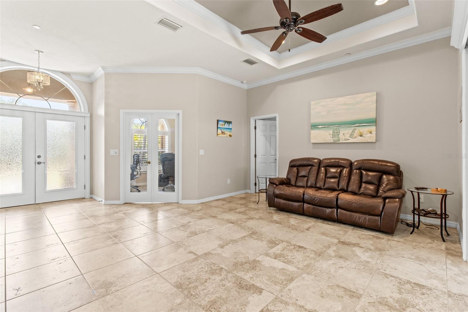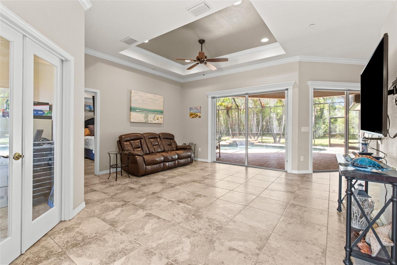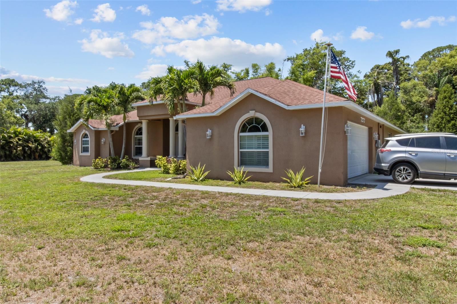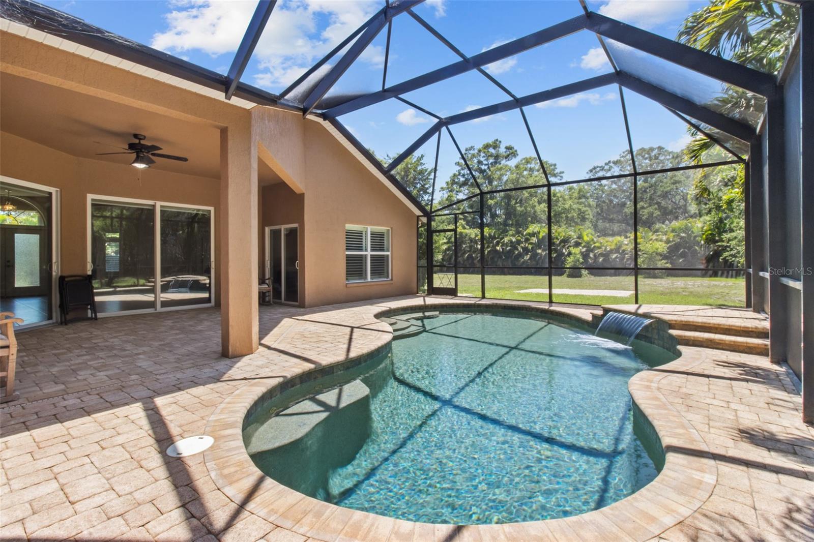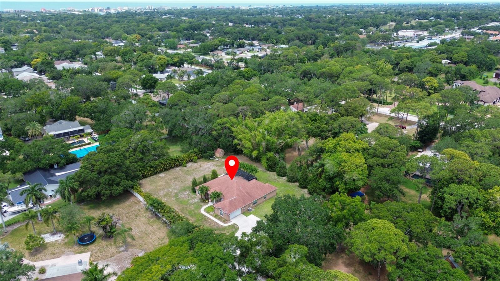 One or more photo(s) has been virtually staged. WELCOME TO YOUR OWN PRIVATE OASIS! This STUNNING single family home, built in 2013, is nestled on just under 1 acre of land, providing plenty of space and privacy. With 4 bedrooms and 2 baths, this is the perfect property with plenty of room for a growing family or for hosting guests. This home offers a spacious and open floor plan, a separate family room and a dedicated home office. The bonus media room can also serve as a 5th bedroom, providing flexibility for various needs. The master suite is a true retreat, with a spacious bedroom, 2 walk-in closets, and a luxurious en-suite bathroom with a soaking tub and separate shower. The three additional bedrooms are generously sized and share a well-appointed bathroom which can has the ability to be used as a pool bath. The home office is a quiet and productive space, with built-in shelving and plenty of natural light. This property boasts high ceilings throughout, hurricane rated impact windows & doors and wood shutters. The outdoor space is equally impressive, with a saltwater pool and birdcage, surrounded by lush landscaping and tropical palms. This property is a true sanctuary, offering a secluded and peaceful setting while still being just a 5 minute drive to the gulf beaches. Whether you're looking to relax by the pool or explore the nearby coastal attractions, this home offers the best of both worlds. The nearly 1-acre lot is zoned for horses, making it an ideal for equestrian enthusiasts. Alternatively, the expansive land could also accommodate a pickle ball, basketball, or tennis court for those who enjoy outdoor sports and activities. In addition to the stunning amenities, the property offers privacy with private deeded road access. This home truly offers a perfect blend of luxury, comfort, and outdoor enjoyment. The saltwater pool is low-maintenance and perfect for cooling off on hot Florida days. The birdcage keeps the pool area free from pests, allowing for uninterrupted relaxation.The property is surrounded by mature landscaping, providing privacy and a serene atmosphere. Additionally, with NO FLOOD INSURANCE required, you can have peace of mind knowing that your investment is protected. Located in a sought-after neighborhood, this property offers convenience and comfort.....Don't miss the opportunity to make this incredible property your own. Schedule a showing today and experience the beauty and tranquility that this home has to offer.