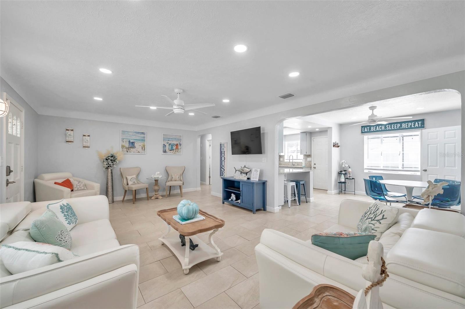 Beautiful four-bedroom, two-bathroom pool home is situated on an oversized .25-acre corner lot and offers ample parking and outdoor entertainment space. The property boasts a large saltwater heated pool and an expansive fenced in backyard with mature fruit trees and multiple outdoor areas providing plenty of space for relaxation and entertainment. The over-sized two car garage with new epoxy floors features a side entry, laundry, and an over-sized driveway. Property is conveniently located just 5-minutes from Redington Beach, 8-minutes from Madeira Beach, 14-minutes from Johns Pass, 20-minutes south from Clearwater Beach, 20-minutes north from St. Pete Beach, 30-minutes from Tampa Airport and 20-minutes from St. Pete/Clearwater Airport. The property is surrounded by various restaurants and retail shops (Seminole City Center is a short 2-minute drive). This SFH is located in a Commercial General (CG) zoning area, which makes this property a legal short-term rental with no restrictions! The City allows for temporary lodging (transient accommodation / short term rentals) within this district. A license is not required for this use. Keep this as an Airbnb or your primary residence. Additional information: newer roof (2021), fence (2021), AC unit (two units 2021 and 2013), granite countertops (2021), pool pump and pool heater (2021), water heater (2021), epoxy garage floors (2023), and a new electrical panel will be replaced before close. Furnishing will convey for sellers' convenience.
