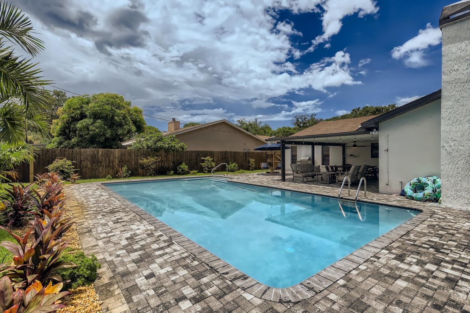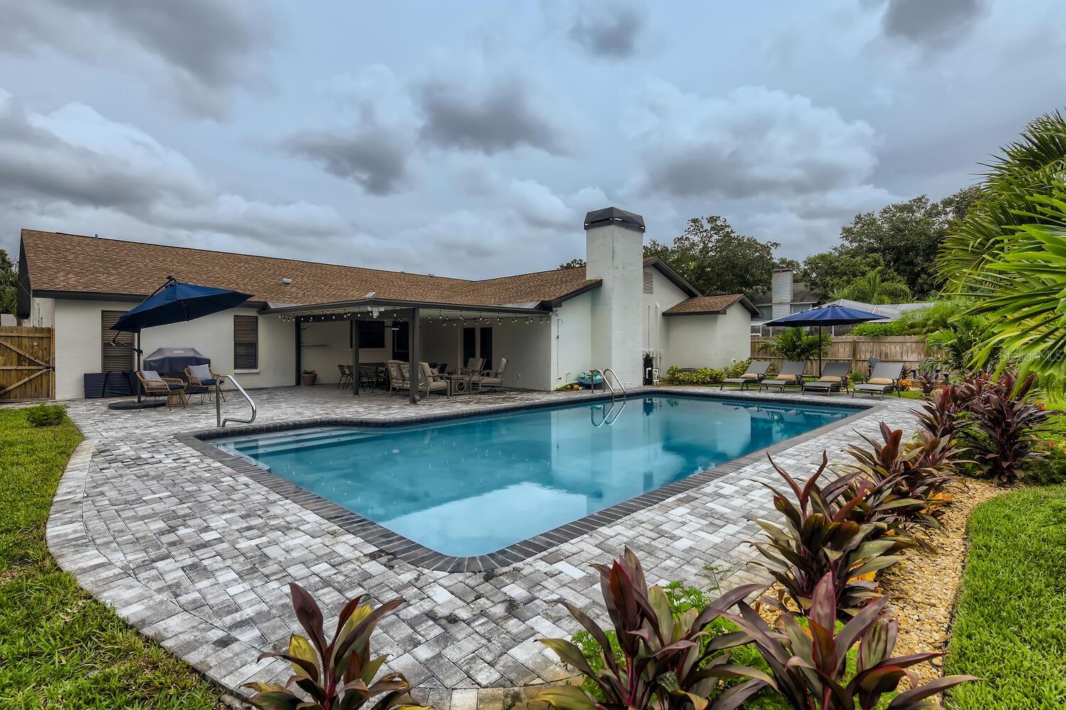 PRICE REDUCTION. Step into this spacious sanctuary boasting over 3000 sq ft in a serene, family-friendly neighborhood. This 5-bed, 3.5-bath haven offers a split plan for privacy and many entertainment options—a game room, open dining and living areas, a large pool, and a picturesque paved patio to unwind. Revel in upgrades like luxury vinyl plank flooring, revamped baths, and a resurfaced pool. Nestled near top Seminole schools, close to pristine beaches minus flood worries, and just moments away from Seminole Mall, eateries, and Gulf Coast relaxation. Your dream family retreat awaits!