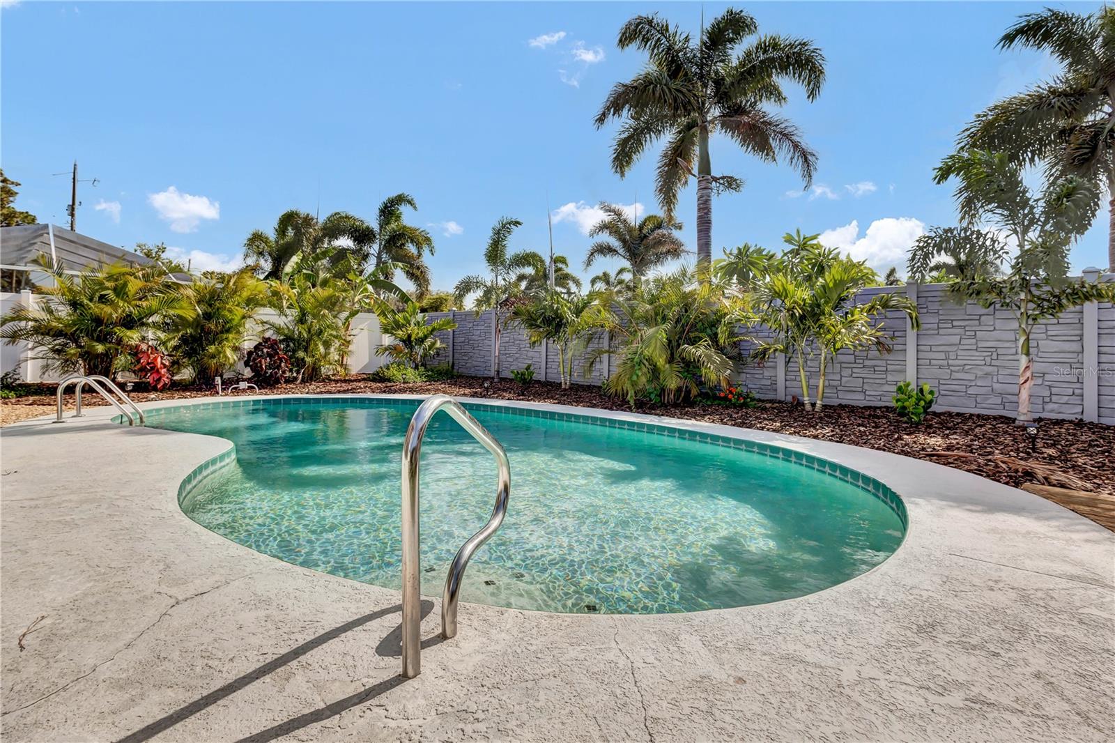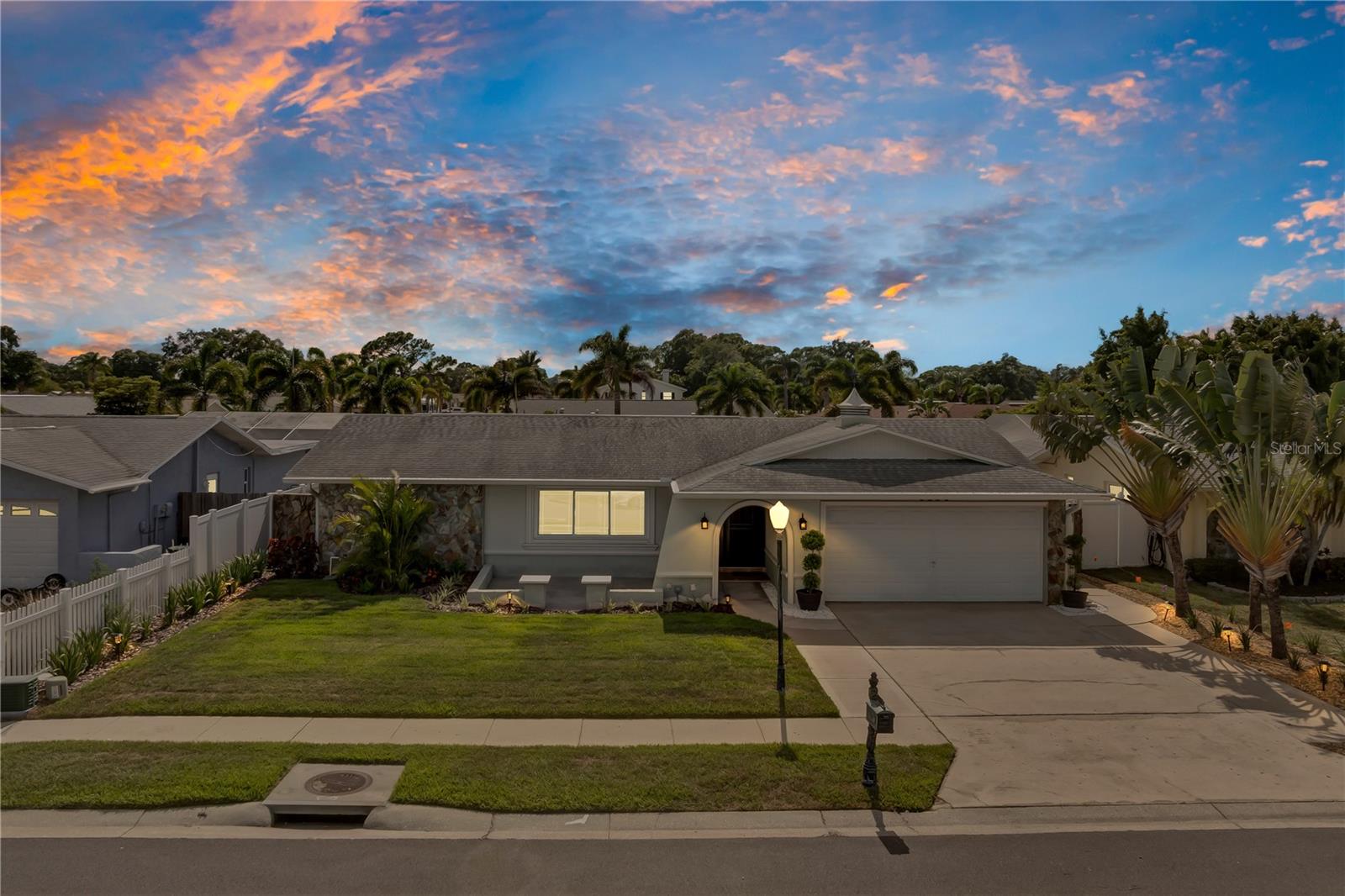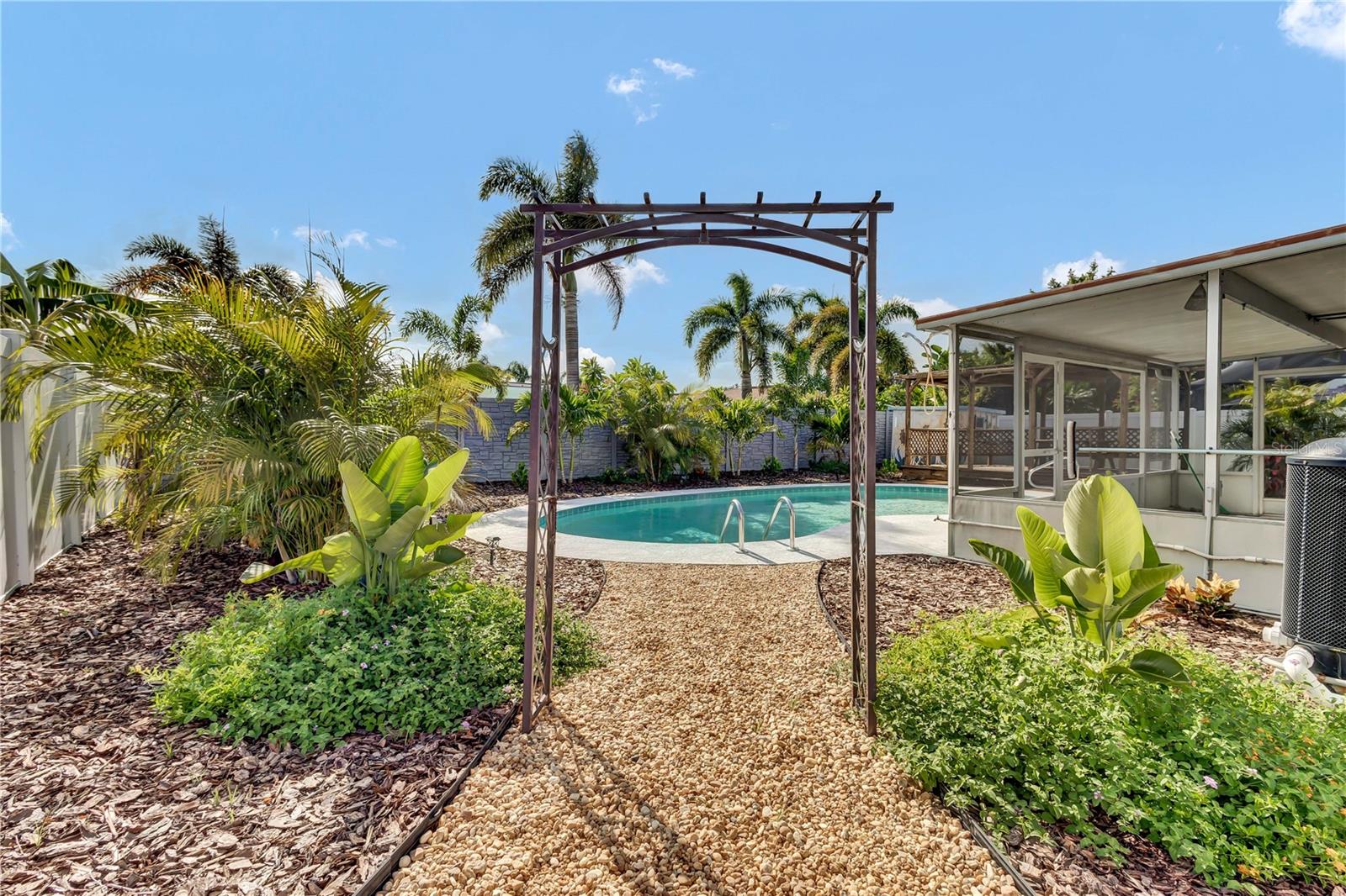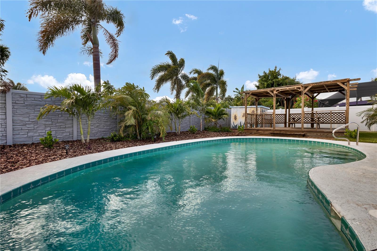 Welcome to your dream oasis home! This stunning 3 bedroom ,2 bath 2 car garage pool home located in the highly desired Pamela Estates/ Oakhurst Acres is a slice of paradise waiting for you to add your personal touch and make it your own dream home. As you step in this abundantly spaced home with plenty of room for family and friends large gatherings the backyard views are breathtaking and facing west for stunning sunsets.Walk out into your screened in lanai and enjoy your piece of paradise with brand new tropical landscaping and view of the pool. Privacy fence surrounds your property, perfect for hosting pool parties and cooling off in the hot summer months. New Landscaping and irrigation 2024,Pool Equipment 2024, Baseboards and Crown Molding 2024 , Outdoor Electrical 2024.Many other features and upgrades were done recently.A full list of updates can be found under attachments and enjoyed by seeing this gem in person. Upgraded Kitchen and stone counters in 2022 with a breakfast bar, dining area and separate buffet/ coffee bar with built-ins blend seamlessly with the large Family room overlooking the backyard. Inside laundry room with a large utility sink and plenty of cabinet space. The master bedroom showcasing large dual closet, crown molding with a ensuite recently updated.The secondary bedrooms are generous in size with plenty of closet space and natural sunlight and are separated by a recently remodeled bath. This well maintained One Level Ranch style pool home built in 1976 has it all! Enjoy easy access to pristine beaches, shopping and dining but have the peace of mind knowing you are in a non-evacuation zone providing safety if there are concerns of storms. No Flood Insurance Required!