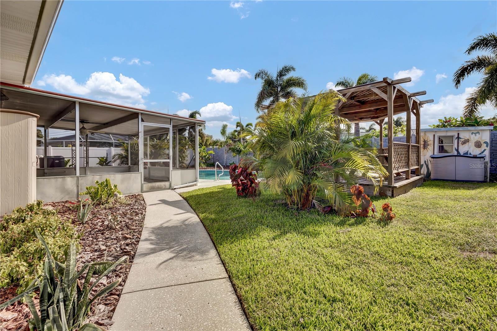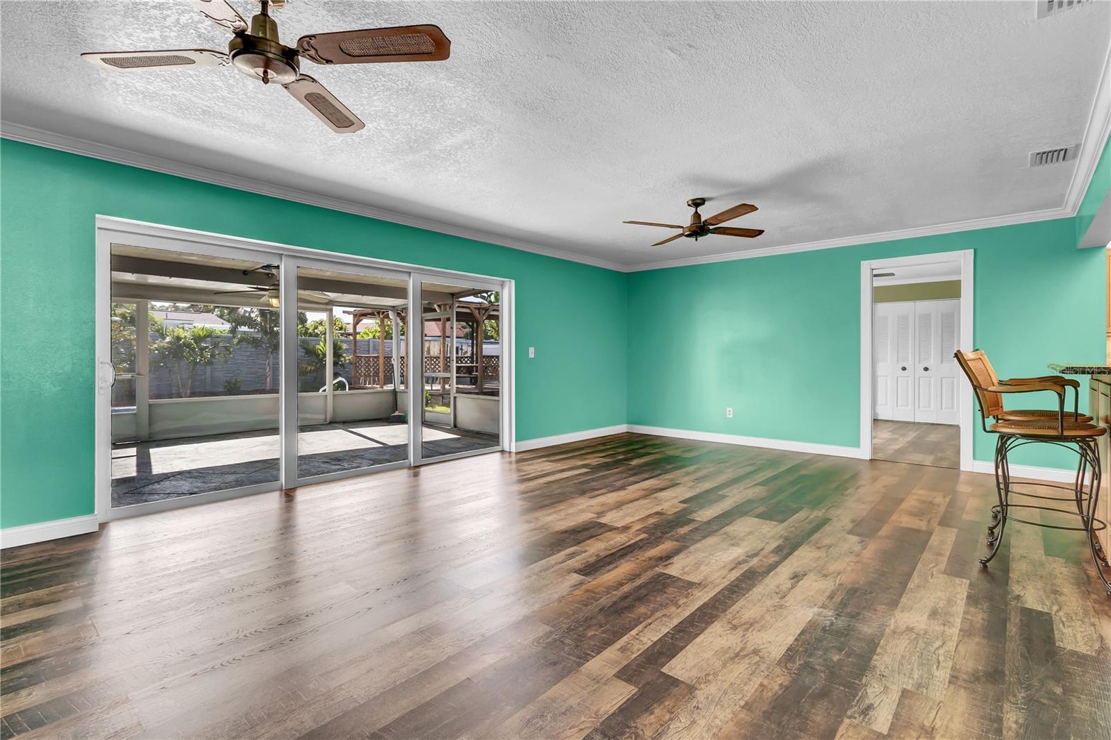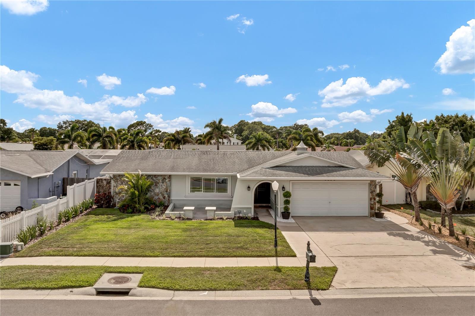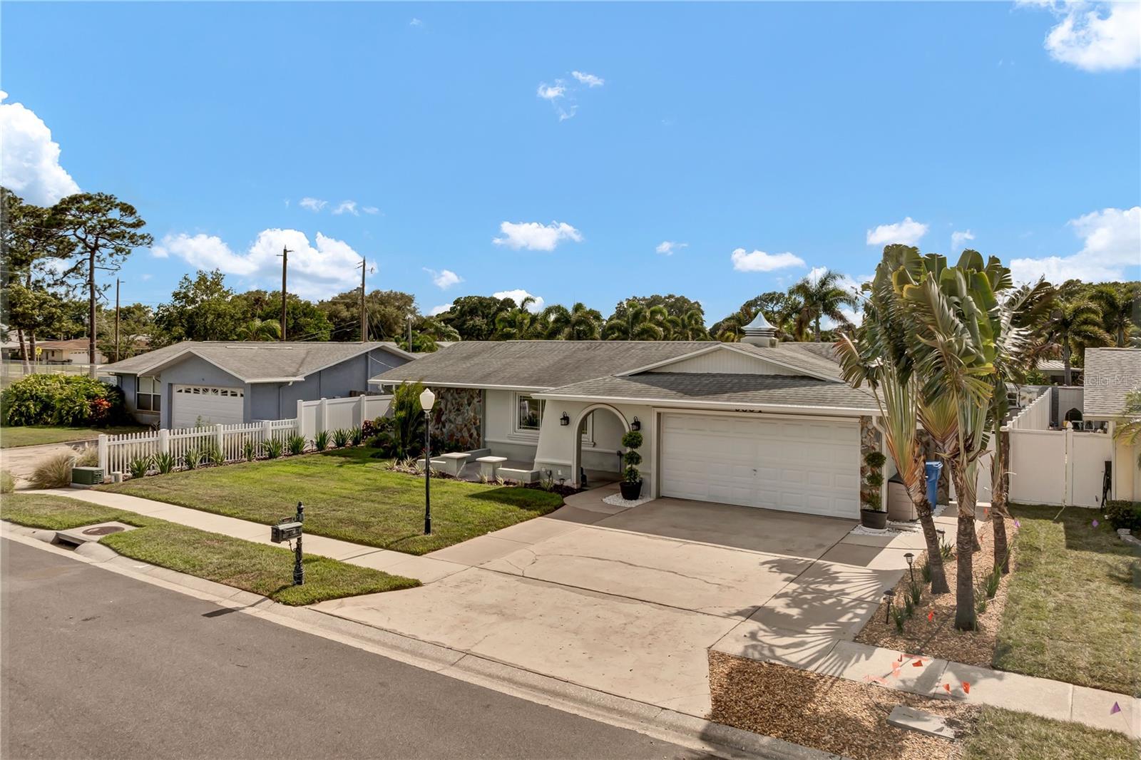 Welcome to your dream oasis home! This stunning 3 bedroom ,2 bath 2 car garage pool home located in the highly desired Pamela Estates/ Oakhurst Acres is a slice of paradise waiting for you to add your personal touch and make it your own dream home. As you step in this abundantly spaced home with plenty of room for family and friends large gatherings the backyard views are breathtaking and facing west for stunning sunsets.Walk out into your screened in lanai and enjoy your piece of paradise with brand new tropical landscaping and view of the pool. Privacy fence surrounds your property, perfect for hosting pool parties and cooling off in the hot summer months. New Landscaping and irrigation 2024,Pool Equipment 2024, Baseboards and Crown Molding 2024 , Outdoor Electrical 2024.Many other features and upgrades were done recently.A full list of updates can be found under attachments and enjoyed by seeing this gem in person. Upgraded Kitchen and stone counters in 2022 with a breakfast bar, dining area and separate buffet/ coffee bar with built-ins blend seamlessly with the large Family room overlooking the backyard. Inside laundry room with a large utility sink and plenty of cabinet space. The master bedroom showcasing large dual closet, crown molding with a ensuite recently updated.The secondary bedrooms are generous in size with plenty of closet space and natural sunlight and are separated by a recently remodeled bath. This well maintained One Level Ranch style pool home built in 1976 has it all! Enjoy easy access to pristine beaches, shopping and dining but have the peace of mind knowing you are in a non-evacuation zone providing safety if there are concerns of storms. No Flood Insurance Required!