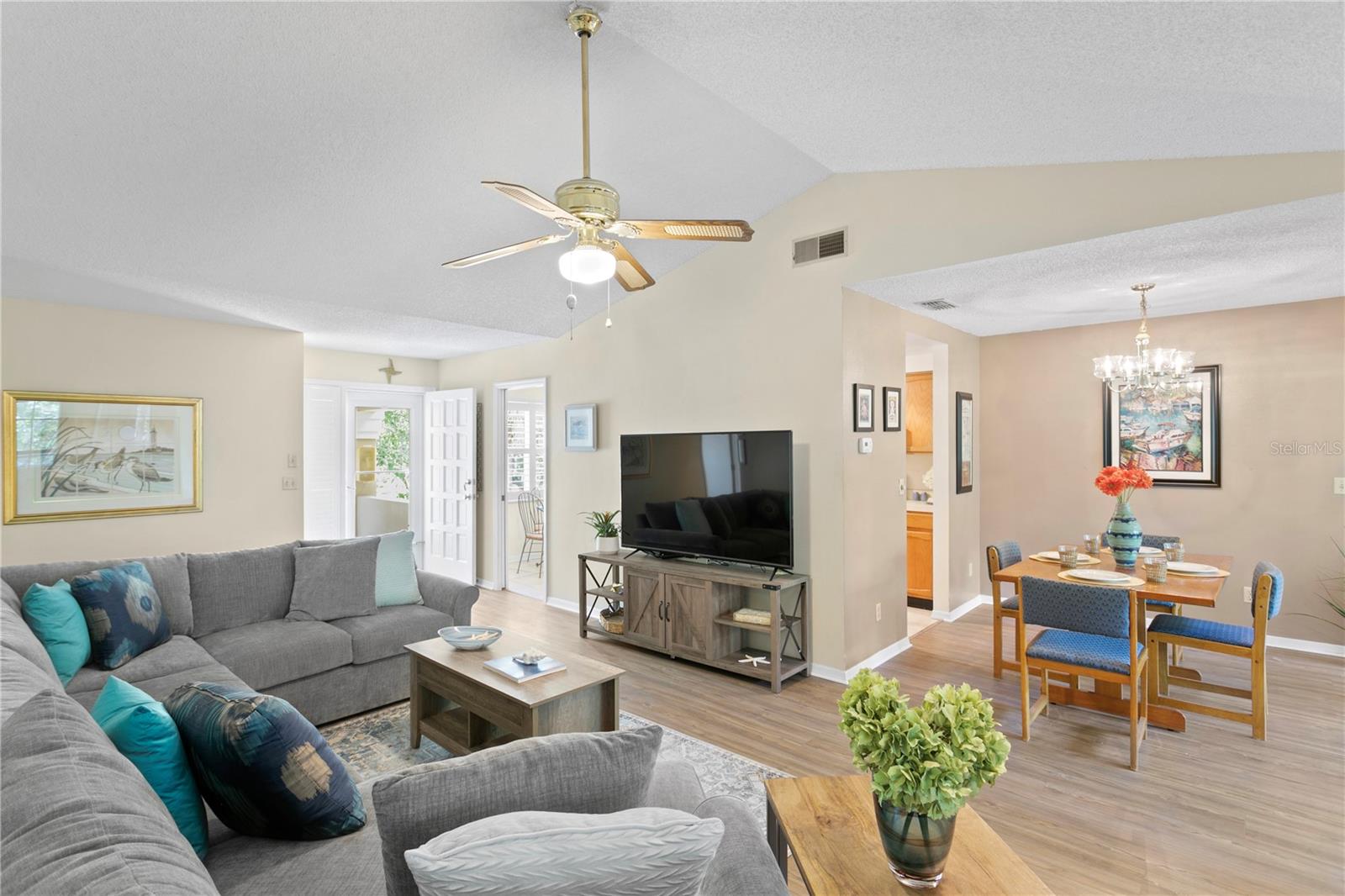 Discover your new home nestled within The Cloisters at Bardmoor, a charming condo community surrounded by lush nature walkways that take you by the picturesque Bardmoor Golf Course and Tennis Club. This second-floor condo is surrounded by an impeccably maintained community that sets a welcoming tone. Inside, the spacious, two-bedroom, two-bathroom unit features a soothing neutral palette, multiple French sliders, a vaulted ceiling, and a cozy wood-burning fireplace. Adjacent to the kitchen, you’ll find a dining room and a versatile bonus room perfect for an office or lounge area. Step out the back doors on to an expansive screened deck with views of the immaculate grounds or walk outside and enjoy the walking path that leads to the inviting pool and heated spa, serene pond, and the golf course. The primary bedroom offers views of the outdoor and includes an on-suite bathroom with a lovely shower, double vanity, and two closets, one of which is a walk-in. The split floorplan ensures privacy for the spacious second bedroom, with the second bathroom and laundry conveniently located nearby. The community boasts beautiful nearby views of Bardmoor Golf Course and Tennis Club, as well as close proximity to shopping, Gulf beaches, restaurants, medical facilities, and the Tampa and Clearwater/St. Petersburg Airports. The condominium comes with on assigned covered parking spot and guest parking. Don’t miss this rare opportunity to live in one of the most sought-after communities in Pinellas County.