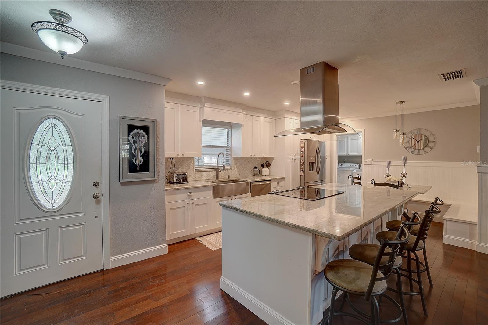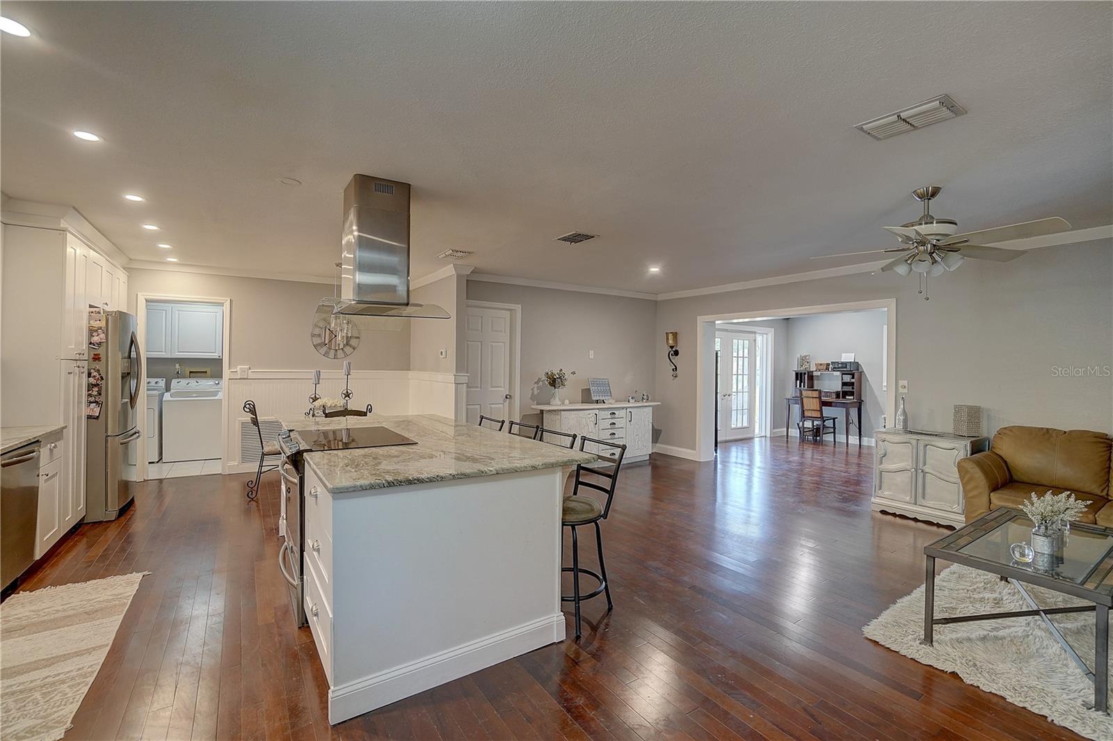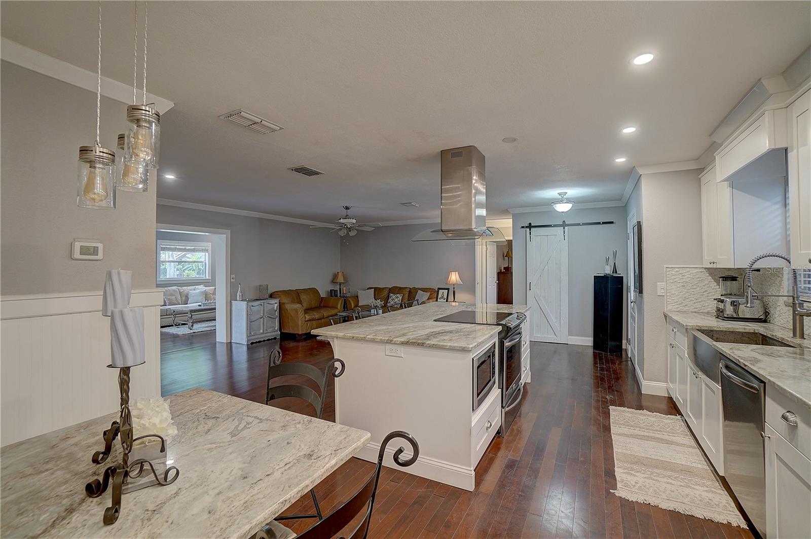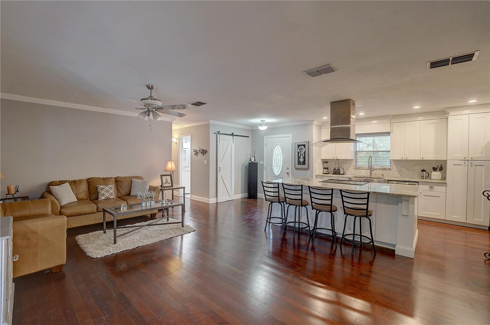 Welcome to your dream home in sought-after Seminole, FL. Located in one of the highest elevations, this home is in a NON EVACUATION AND NON FLOOD ZONE. *Home was not flooded or damaged in either of the hurricanes. This exquisite single-family residence offers a harmonious blend of comfort and elegance. This inviting 3-bedroom, 2-bathroom home is perfectly situated in the charming community of Sandy Woods, offering peaceful pond views and a warm atmosphere in a family friendly neighborhood. Step inside to discover a bright and airy open floor plan, highlighted by a spacious living room. The enticing porch provides serene views of the pond, perfect for relaxing and enjoying nature. As you enter, you are greeted by an open and welcoming floor plan that seamlessly connects the living room, dining room, and kitchen; creating an inviting and spacious atmosphere for both entertainment and everyday living. The modern kitchen boasts ample counter space, stainless steel appliances, granite countertops, and abundant cabinetry for all your storage needs. The adjacent dining area is ideal for family meals or hosting dinner parties with friends. The kitchen/dining room combo and the living room/family room combo offers versatile spaces that can be adapted to suit your lifestyle needs. Tasteful wood flooring adds a touch of sophistication to every room. This home offers three well-sized bedrooms. The primary bedroom is a serene retreat with its own en-suite bathroom, ensuring privacy and convenience. The additional two bedrooms share a recently updated full bathroom, ideal for family or guests. Additional features of this home include central air conditioning installed in 2023, electric heating, and a spacious attached two-car garage. Located in a non-flood zone, this provides additional peace of mind. Step outside to your tropical backyard oasis, where you can relax on the porch and enjoy the tranquil pond views. The expansive yard is perfect for outdoor entertaining. Here, you will find a peaceful haven, perfect for outdoor dining or simply unwinding while enjoying the serene surroundings. The backyard offers stunning pond views that create a calming and scenic backdrop for everyday living. This delightful home in Sandy Woods offers the perfect blend of indoor and outdoor living, with its stylish interior and breathtaking backyard and pond views. It is not just a place to live but a place to create lasting memories with family and friends. Located in a sought-after Seminole neighborhood, this property offers convenient access to top-rated schools, beaches, parks, the Pinellas Trail, shopping, dining, and entertainment options. Don't miss the opportunity to make this charming home your own. Schedule a showing today and experience the perfect blend of comfort, convenience, and natural beauty!