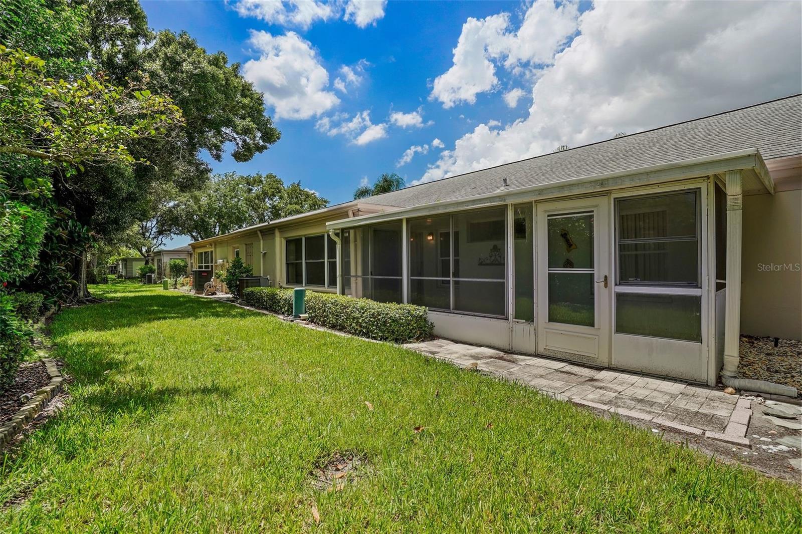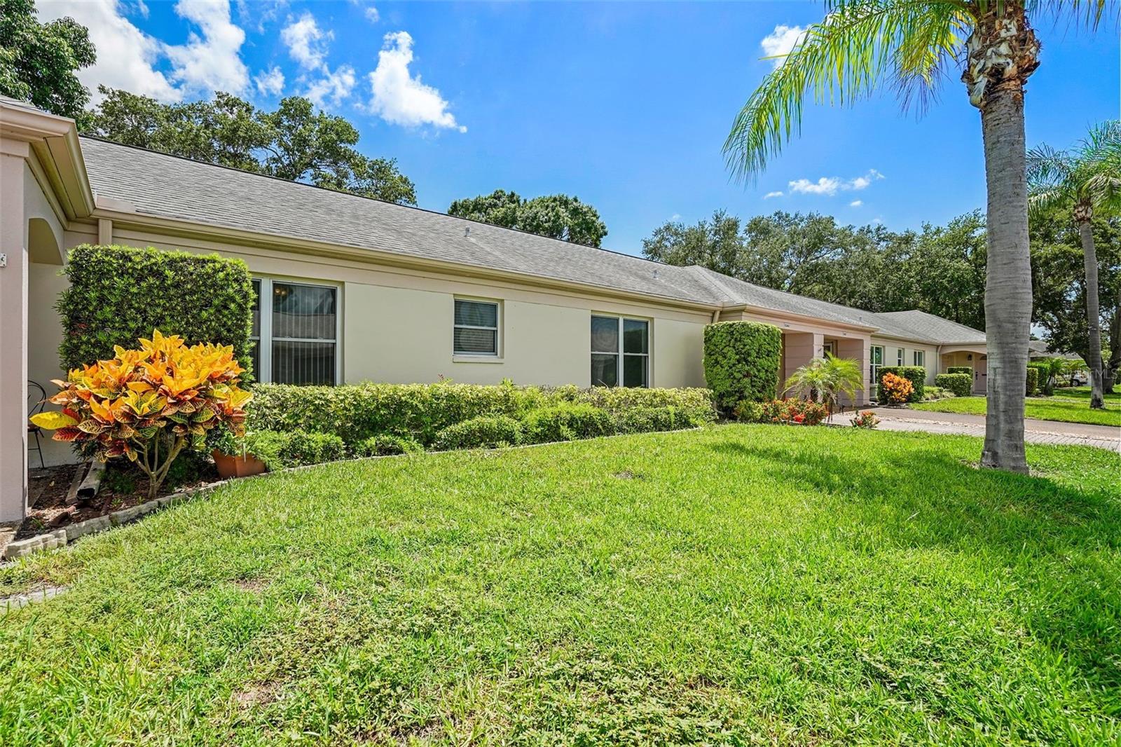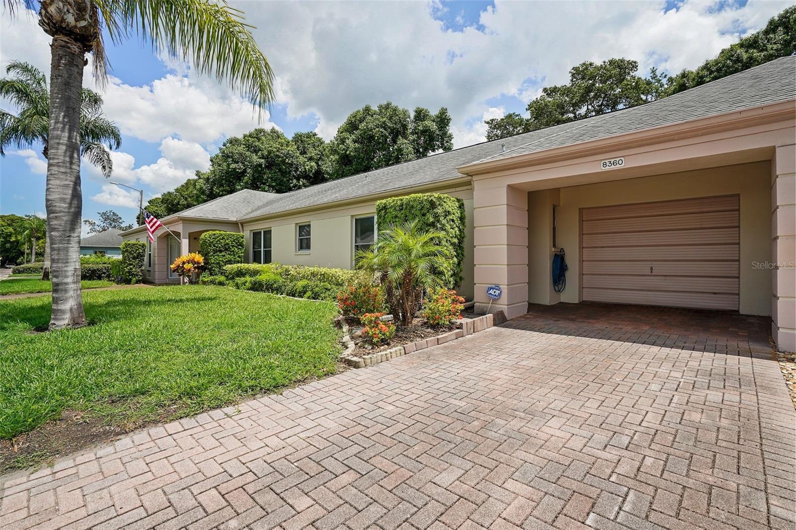 SELLER IS EXTREMELY MOTIVATED! Welcome to this light and bright 55+ villa style condo in desirable Chateau De Bardmoor! As you drive up onto your paver driveway, you will find your tucked away private entry door and mailbox. As you enter the home you will see that the living and dining area creates an open floorplan with plenty of windows for natural light, ceramic tile and ceiling fans to keep cool. This villa has two bedrooms and two bathrooms, and a screened in patio. But, best of all..... a one car garage! The primary bedroom has a walk in closet and both bedrooms have new carpeting as well as ceiling fans. The bathrooms are updated with beautiful vanities and granite counters. The kitchen has all stainless steel appliances with wood cabinets and granite counter tops. The garage has room for 1 car, plenty of storage cupboards and a laundry area with hookups for a washer and dryer. Also, enjoy the backyard/ grounds while relaxing in your 21ft screened lanai for relaxation, reading a book or enjoying the cool weather. Your garbage pickup come's right to your driveway and the mail, right to your box! No walking the trash to a dumpster or getting your mail in a community mail center. The community is pet friendly, up to a 30lb maximum. Don't forget to enjoy the pool, shuffleboard or the billiards in the clubhouse. The property is located close to shopping, restaurants and the gulf beaches. This villa has so much to offer. Come take a look at Chateau De Bardmoor, I think you're going to like it.