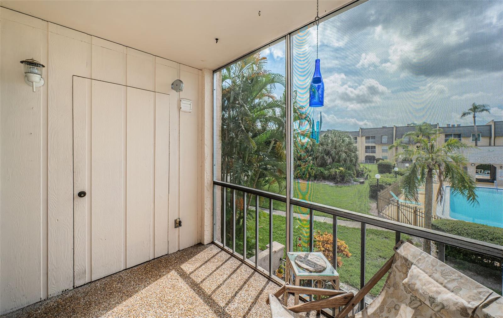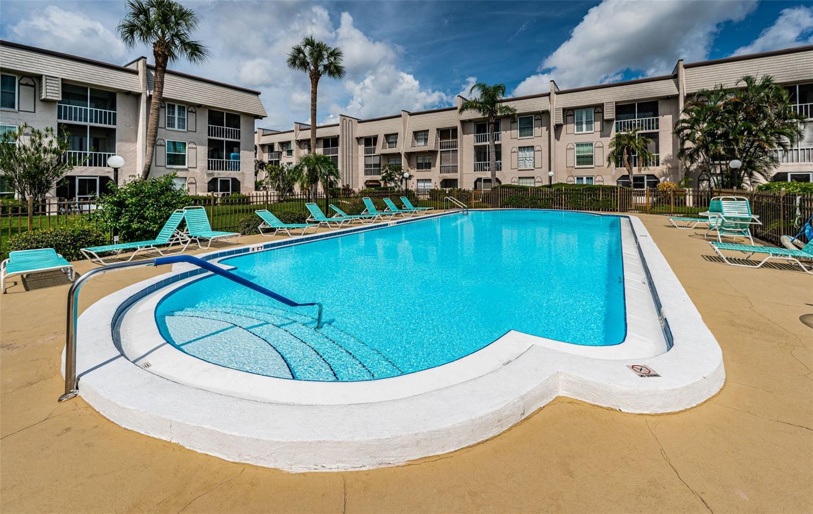 LEISURE AND LOCATION AWAIT THE LUCKY BUYER IN THIS 2 bedroom 2 bath condo overlooking the beautiful pool and spa. Low maintenance and convenience to shops, eateries, Gulf beaches, and Seminole Lake Park enhance the desirability of this open floor plan with indoor utility just off the side of the screened balcony. TWO walk-in closets plus ample kitchen cabinetry provide storage inside the unit. Wood laminate and ceramic tile floors are easily kept. The covered carport protects against sun and rain & is located near the sidewalk to the elevator. Furnishings are available to further encourage "move-in readiness". The monthly fee includes community recreation & clubhouse, exterior maintenance, cable TV, water, sewer, trash, insurance & electric for common elements. Do not delay, call for an appointment today!