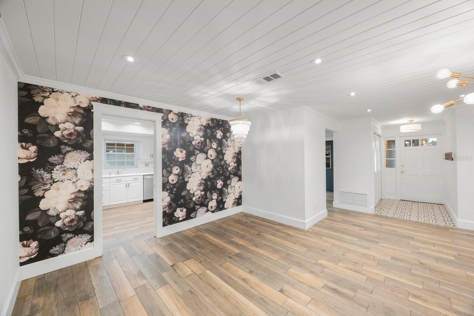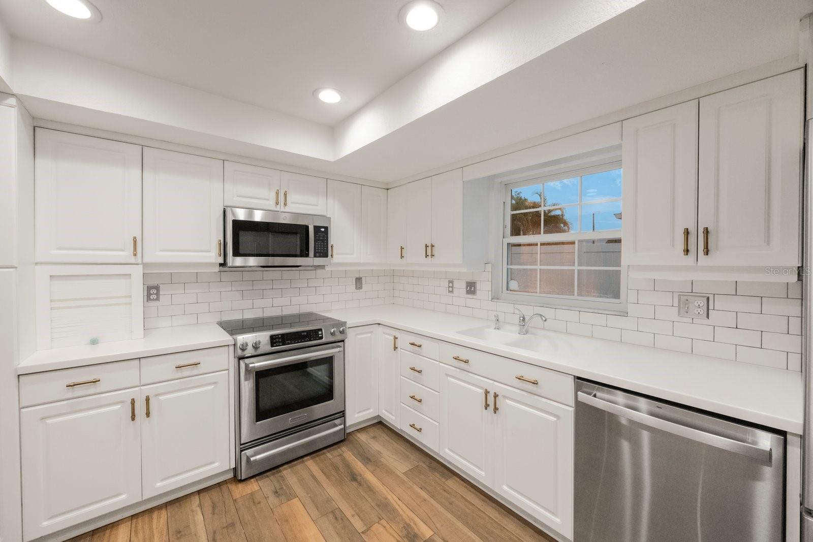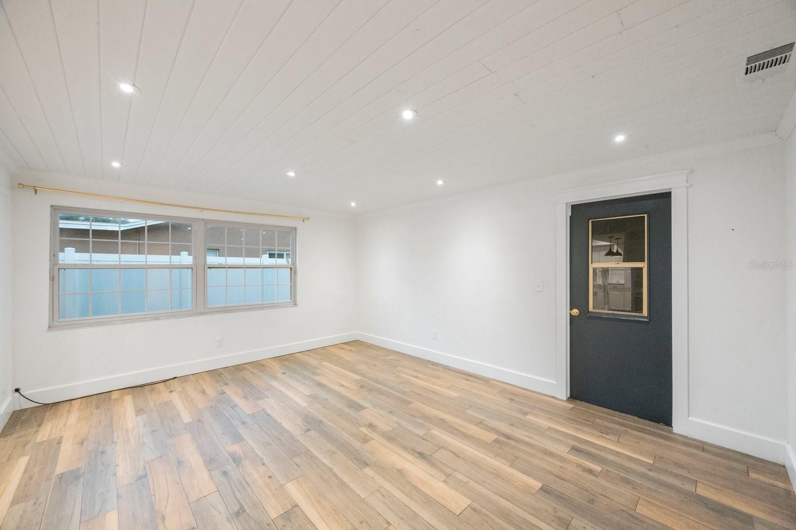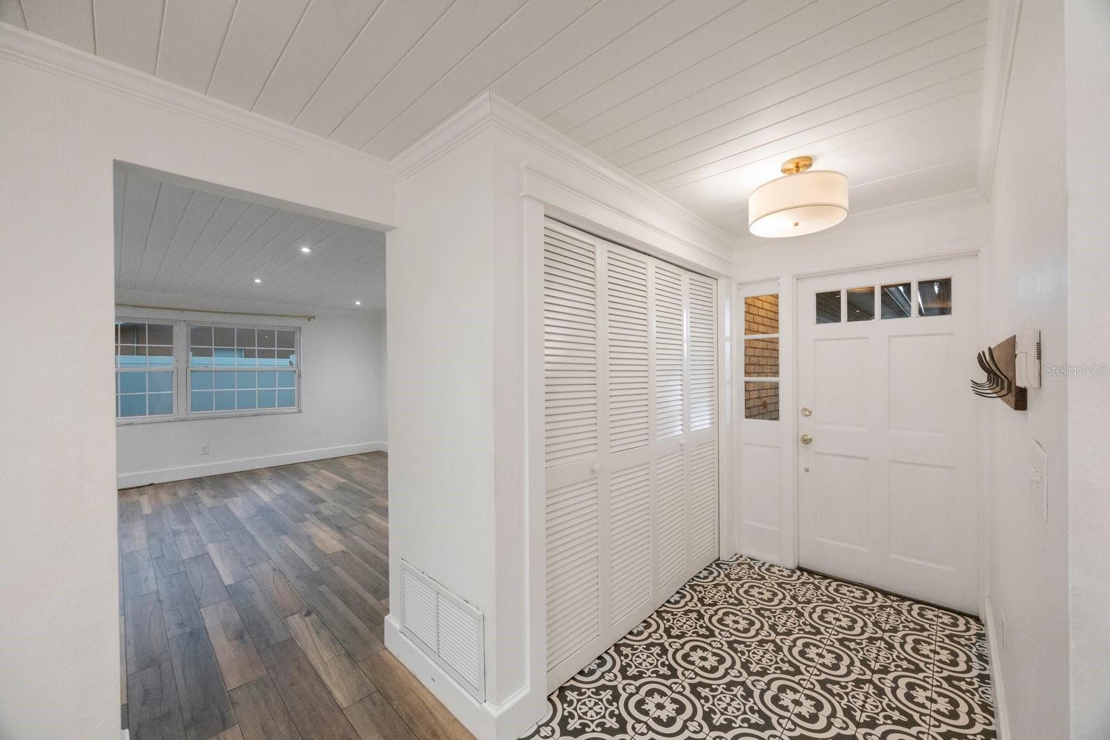 One or more photo(s) has been virtually staged. Price Reduced! A beautiful 4BR/2BA, move-in ready home in Seminole; top-rated schools all walk-able/bike-able and minutes from shopping, eateries, and gorgeous Gulf Beaches. Upon entering, you will be captivated by the large bright living/dining combo with tile flooring and tongue-and-groove ceilings throughout. The kitchen features light cabinets, solid surface counter tops and a new stainless microwave and dishwasher with a range and refrigerator to match. The front den/family room is ideal for entertaining with built-in shelving. All bedrooms are large with brand new carpet. The master bedroom is large with a master bath featuring a walk-in shower. The guest bath with tub/shower combo has been completely updated and features the tongue-and-groove ceiling as well. Outside, the screened lanai features two skylights and a ceiling fan to enjoy the Florida weather. The 2-car garage has a washer and dryer, ready to go. This home features double-paned windows, new roof (2022), crown molding, and a storage shed with electric. This unincorporated Pinellas County property is not in a flood zone. Don't miss out on a rare 4BR/2BA, block home in the heart of Seminole. Make an appointment to see it today!