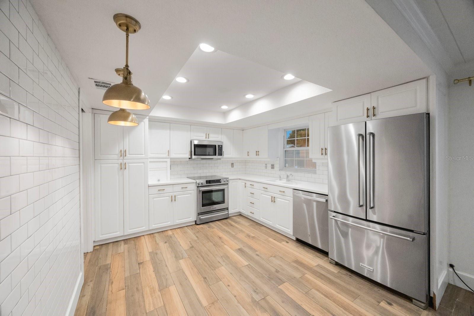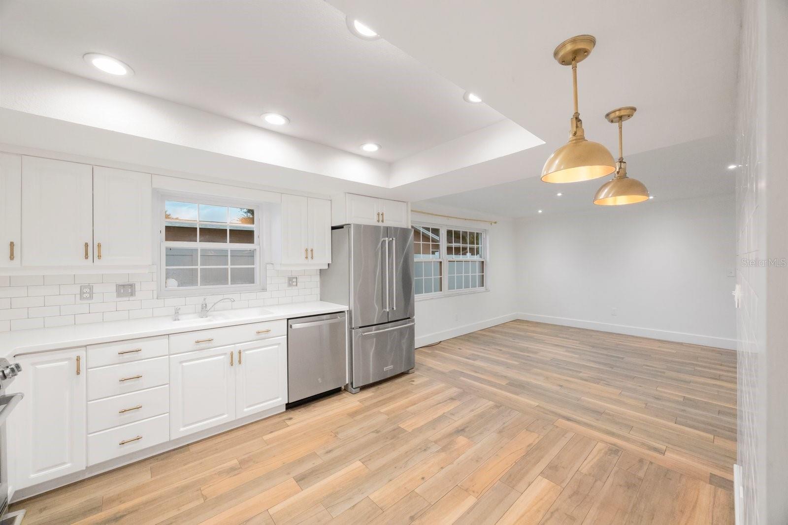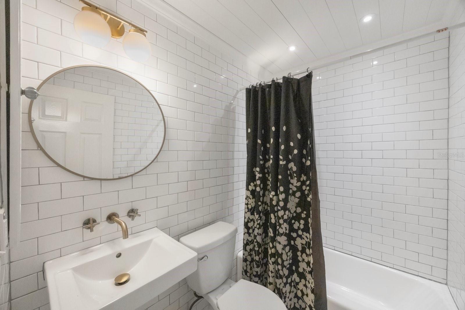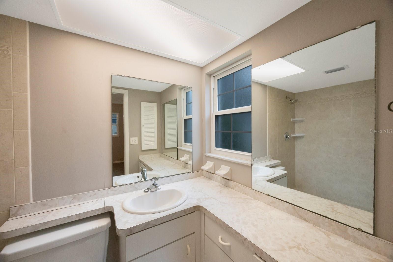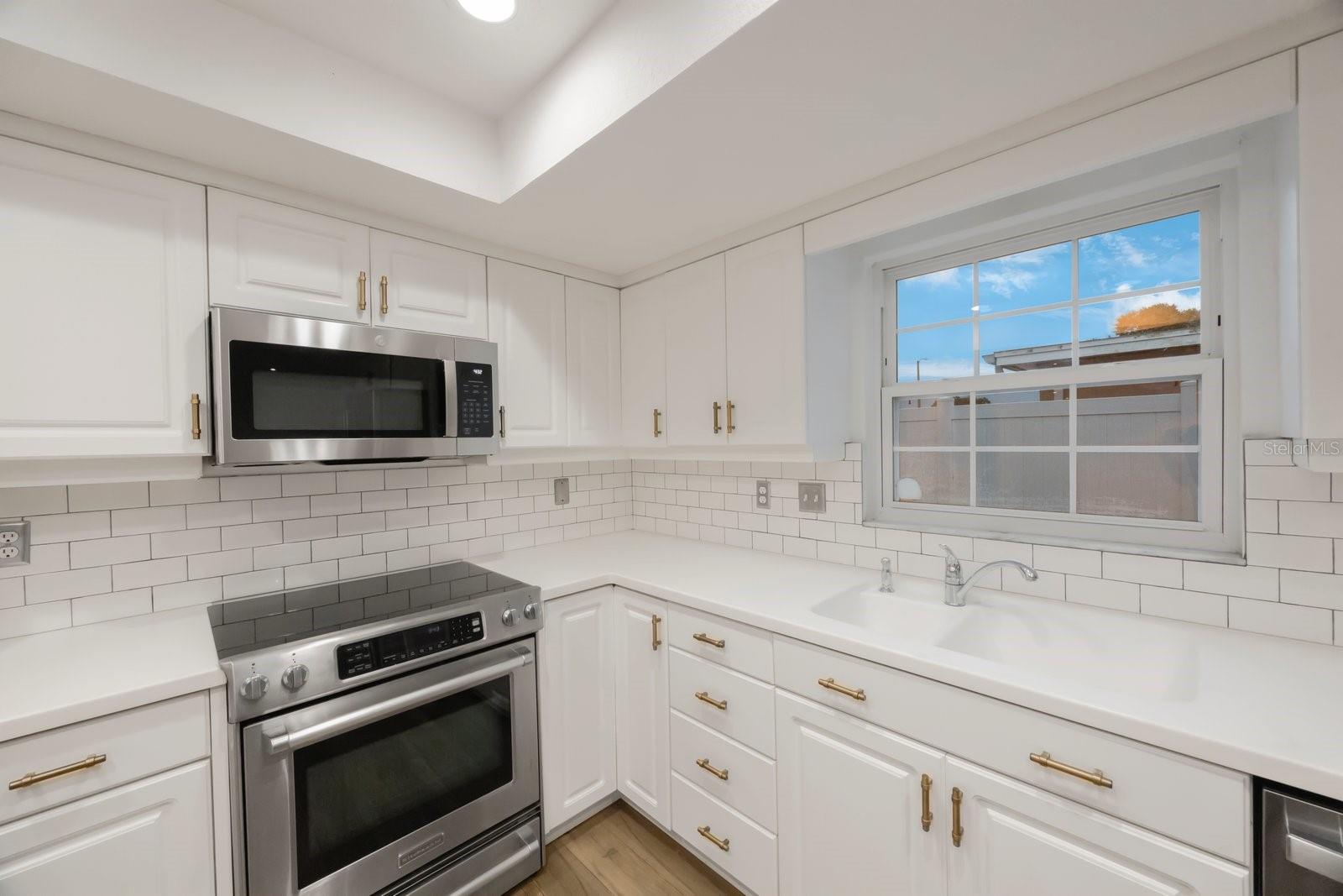 One or more photo(s) has been virtually staged. Price Reduced! A beautiful 4BR/2BA, move-in ready home in Seminole; top-rated schools all walk-able/bike-able and minutes from shopping, eateries, and gorgeous Gulf Beaches. Upon entering, you will be captivated by the large bright living/dining combo with tile flooring and tongue-and-groove ceilings throughout. The kitchen features light cabinets, solid surface counter tops and a new stainless microwave and dishwasher with a range and refrigerator to match. The front den/family room is ideal for entertaining with built-in shelving. All bedrooms are large with brand new carpet. The master bedroom is large with a master bath featuring a walk-in shower. The guest bath with tub/shower combo has been completely updated and features the tongue-and-groove ceiling as well. Outside, the screened lanai features two skylights and a ceiling fan to enjoy the Florida weather. The 2-car garage has a washer and dryer, ready to go. This home features double-paned windows, new roof (2022), crown molding, and a storage shed with electric. This unincorporated Pinellas County property is not in a flood zone. Don't miss out on a rare 4BR/2BA, block home in the heart of Seminole. Make an appointment to see it today!