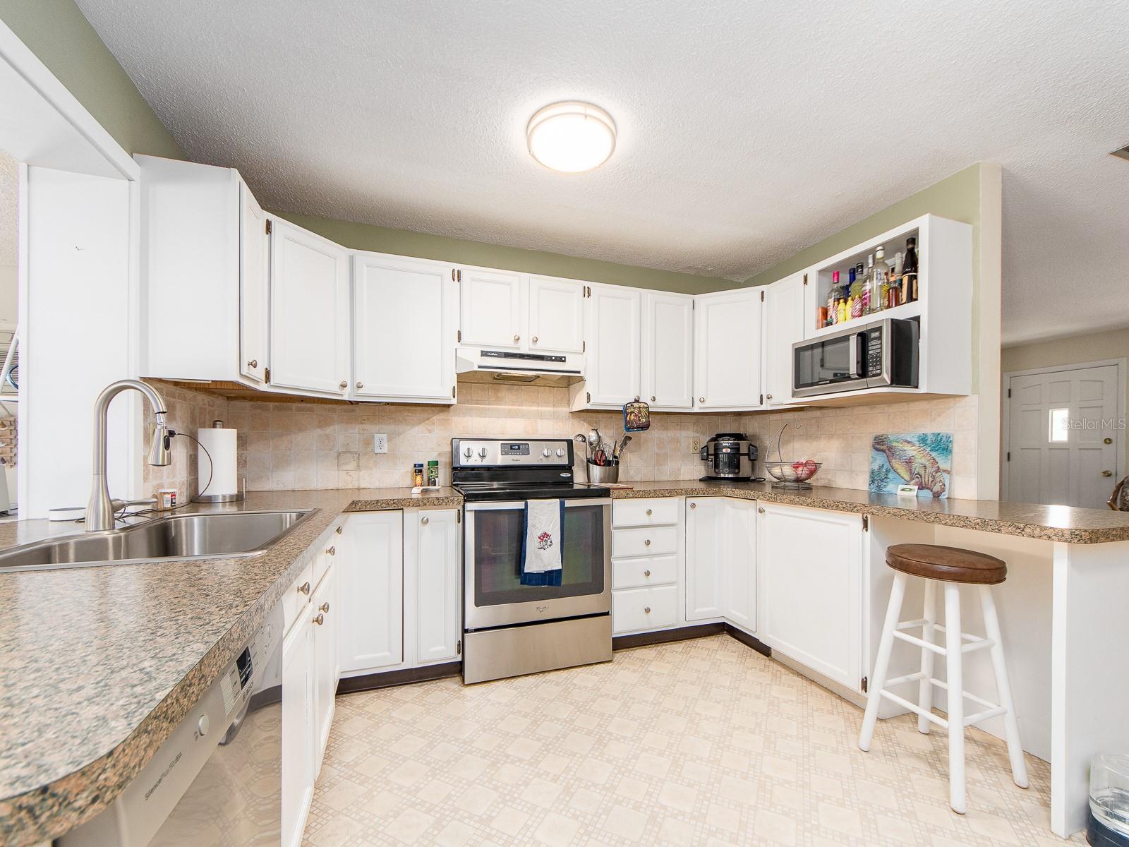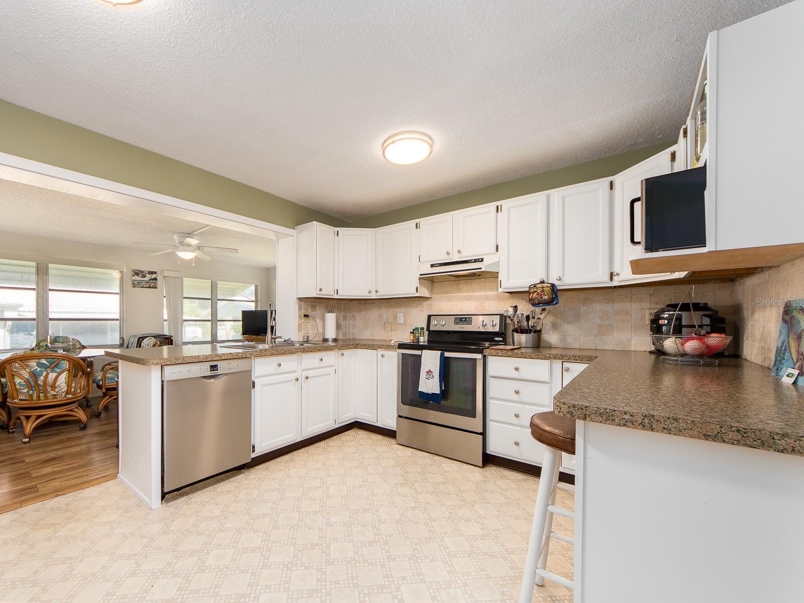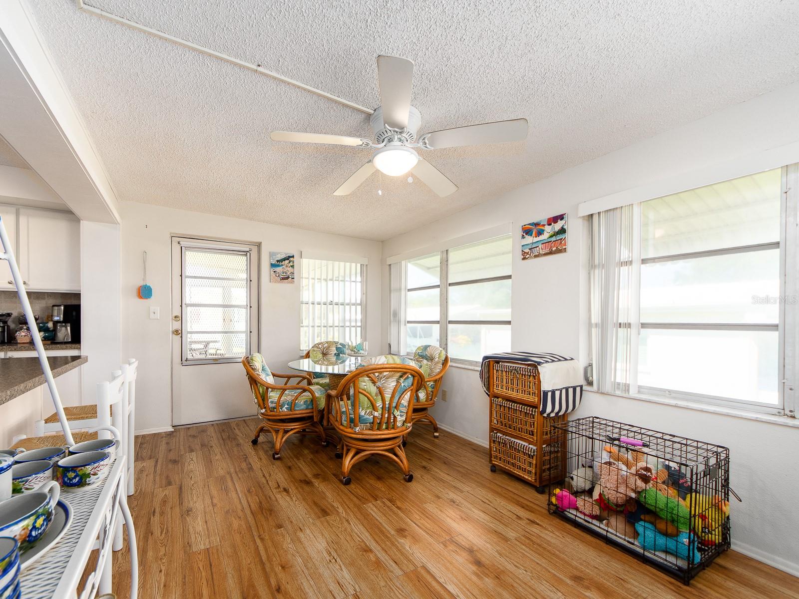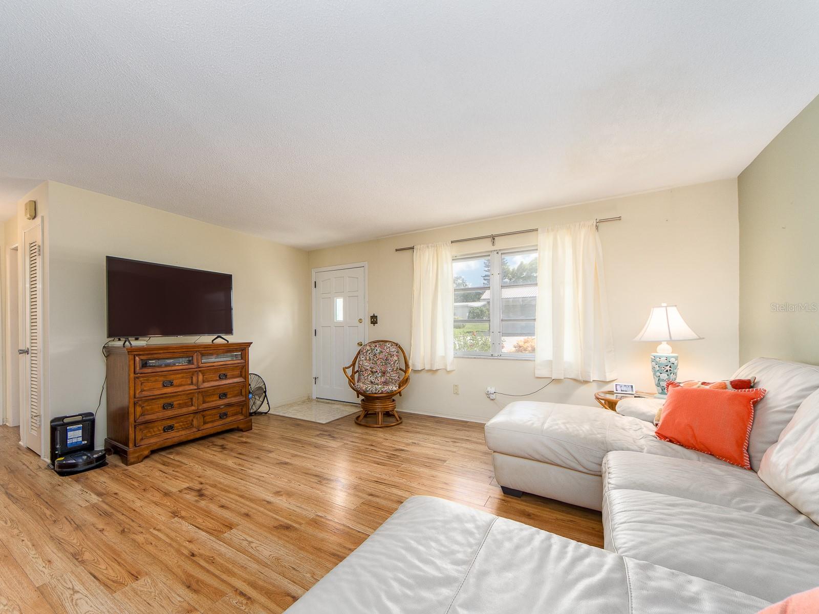 High and Dry! No Evactuation (Zone E), No Flood Zone... Here's your new Florida 55+ residence! This Cute, 2 bedroom, 1 and 1/2 bath has a wonderful Open floor plan that is great for entertaining. The Florida room is spacious and right off the glassed/screened Lanai for enjoying the Gulf breezes that blow through Tamarac. After all, you're only 5 minutes from the Gulf Beaches! Updates made in 2017: an electrical panel in the garage, laminate flooring, counters and extra cabinets in the kitchen as well as appliances, counters in the main bath, cabinet/ counters and tile flooring in half bath. The kitchen has lazy Susan corner cabinets, both upper and lower. Ever wish you had an area for those coming from the pool or beach to clean up? The half bath was thoughtfully located off the kitchen in the laundry area. There's also a very convenient utility sink in the same area. The A/C is 2012. This home has a backyard to enjoy and there's not a speed bump between this home it and the entry!!! The Hoa fee is a low $227.85 a month which includes: yard maintenance (mowing), water, sewer, trash, roof is pressure washed every 9 years and the home is painted every 8-9 . The pool is heated. The clubhouse is busy with an events calendar that is full of activities such as, yoga, game night, ping pong, wednesday morning coffee, evening dinner and dancing...the list goes on. Topping it off you are close to a LOT of great dining, shopping and fun on the sugar sand beaches of the Gulf of Mexico.