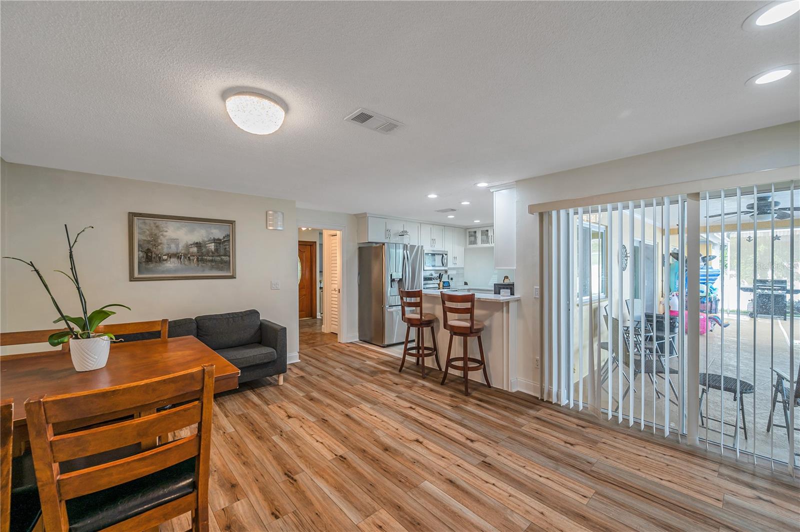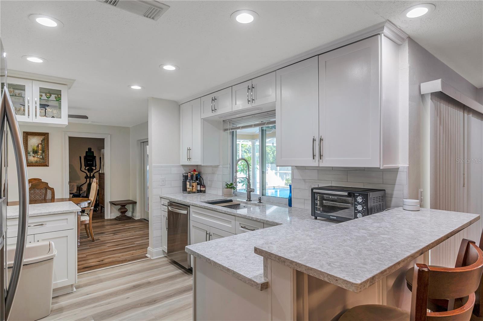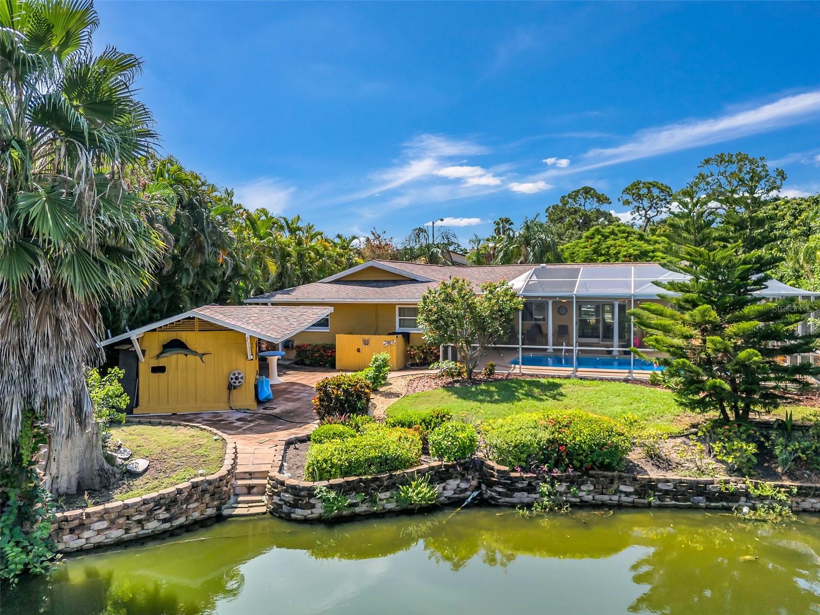 Welcome to Paradise, this 4 bedroom 2 bath,2 car garage pool home is located in the Highly desirable Oakhurst Shores Neighborhood of Seminole. Located on a beautifully landscaped oversized lot overlooking a majestic spring fed pond, with a fountain, that you can see from almost all rooms. This spacious home has vinyl and tile flooring, and baths and kitchen are newly updated. Kitchen boasts quartz counters and stainless appliances, open to the family room and overlooking the large pool area. This home features a split bedroom floor plan,master has walk in closet and its own ensuite. New custom Anderson sliding door installed in 2023. A large interior laundry room with a folding counter, and built in cabinets is off the kitchen. The oversized outdoor space has plenty of room for entertaining and enjoying your own private pool that over looks the large pond. There is also a detached workshop / pool house or /man cave that has electric. HVAC system installed in 2022,new pool pump 2019, new water filtration system 2022,and new water softener 2022. Roof May 2015, updated ceiling fans and baseboards All of this is minutes from shopping, award winning schools, downtown St. Pete and the Gulf of Mexico ..