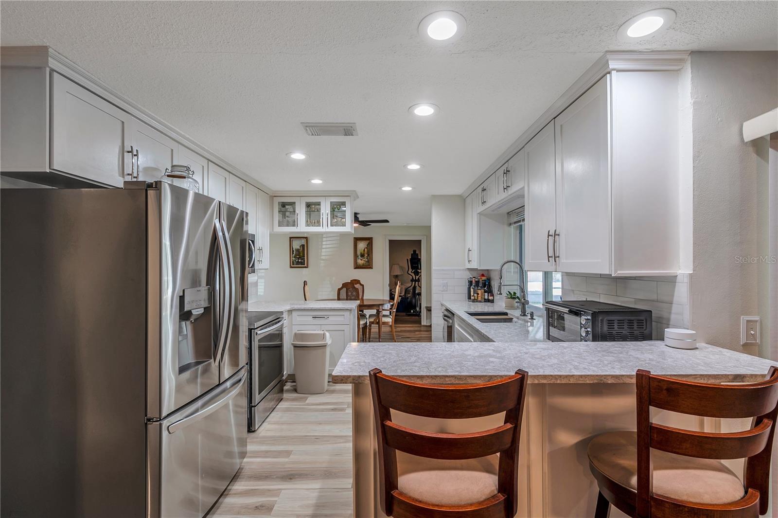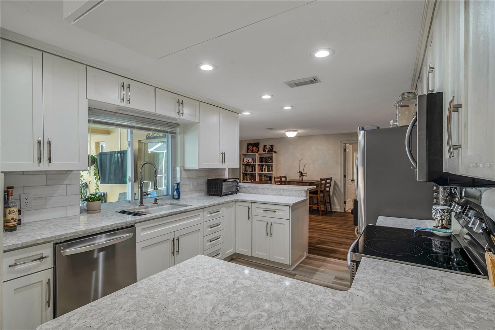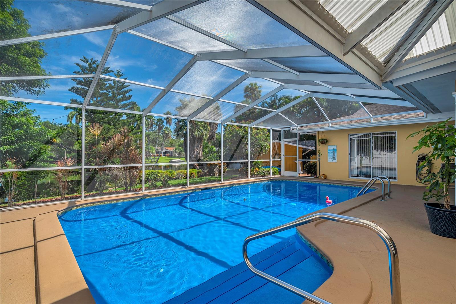 Welcome to Paradise, this 4 bedroom 2 bath,2 car garage pool home is located in the Highly desirable Oakhurst Shores Neighborhood of Seminole. Located on a beautifully landscaped oversized lot overlooking a majestic spring fed pond, with a fountain, that you can see from almost all rooms. This spacious home has vinyl and tile flooring, and baths and kitchen are newly updated. Kitchen boasts quartz counters and stainless appliances, open to the family room and overlooking the large pool area. This home features a split bedroom floor plan,master has walk in closet and its own ensuite. New custom Anderson sliding door installed in 2023. A large interior laundry room with a folding counter, and built in cabinets is off the kitchen. The oversized outdoor space has plenty of room for entertaining and enjoying your own private pool that over looks the large pond. There is also a detached workshop / pool house or /man cave that has electric. HVAC system installed in 2022,new pool pump 2019, new water filtration system 2022,and new water softener 2022. Roof May 2015, updated ceiling fans and baseboards All of this is minutes from shopping, award winning schools, downtown St. Pete and the Gulf of Mexico ..