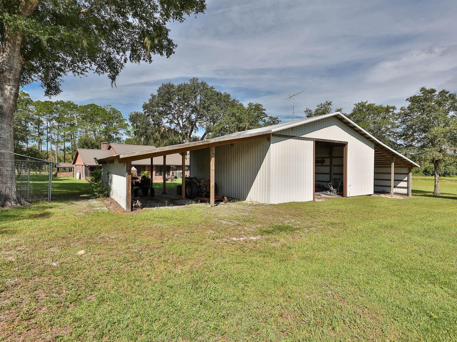 REDUCED!! A SPECIAL PLACE FOR SOMEONE LOOKING FOR A GEM IN THE COUNTRY. This very unique property has just about everything including an immaculate brick home, 2 barns, very nice board fencing for horses or cattle, beautiful live oaks, and a deep water canal stocked with game fish. With a spacious 2,641 total square ft. of living area. The 13 acres has a private, gated entrance that leads to the home as you pass the beautiful live oaks and board fencing. The 3 bedroom 2 bath home has a spacious living room with beautiful hardwood flooring, a brick fireplace, large kitchen with very nice appliances, and a spacious master bedroom with large walk-in closet. This gorgeous ranch home is very energy efficient with a monthly light bill of just over $100. Before approaching the front door, you will enter the front porch, and walk over the nice tile flooring that has been installed over the entire porch. The back porch has been enclosed and converted into a Florida room with tile flooring and many windows overlooking the back patio area and large back yard. When entertaining family or friends, the tiled patio comes with a huge brick barbecue grill and an enclosed fire pit. The property has a 36 x 84 barn that is currently used for parking of vehicles, tractors, and equipment used for maintaining the property. Located near the canal, is a 65 x 65 barn which is used for boat parking and equipment. If you enjoy fishing, the canal has a nice dock for relaxing and catching fish. For the horse lover, the Crescent Lake management area is a short distance from the property with miles of horseback riding trails. Flagler Beach is a short drive away, and for the boating and fishing enthusiast, the historic St. Johns River is a 10 minute drive. The metal roof was installed 3 years ago and the AC has been updated . This picturesque, beautiful property is ideal for the outdoor person and the nature loving family.