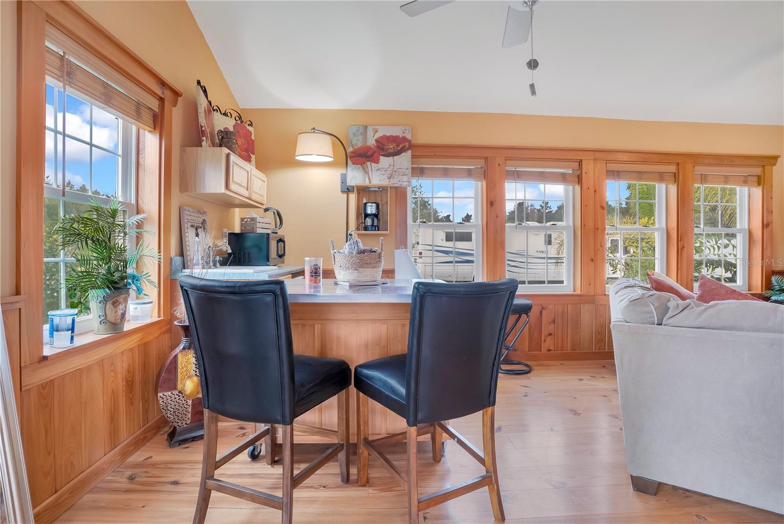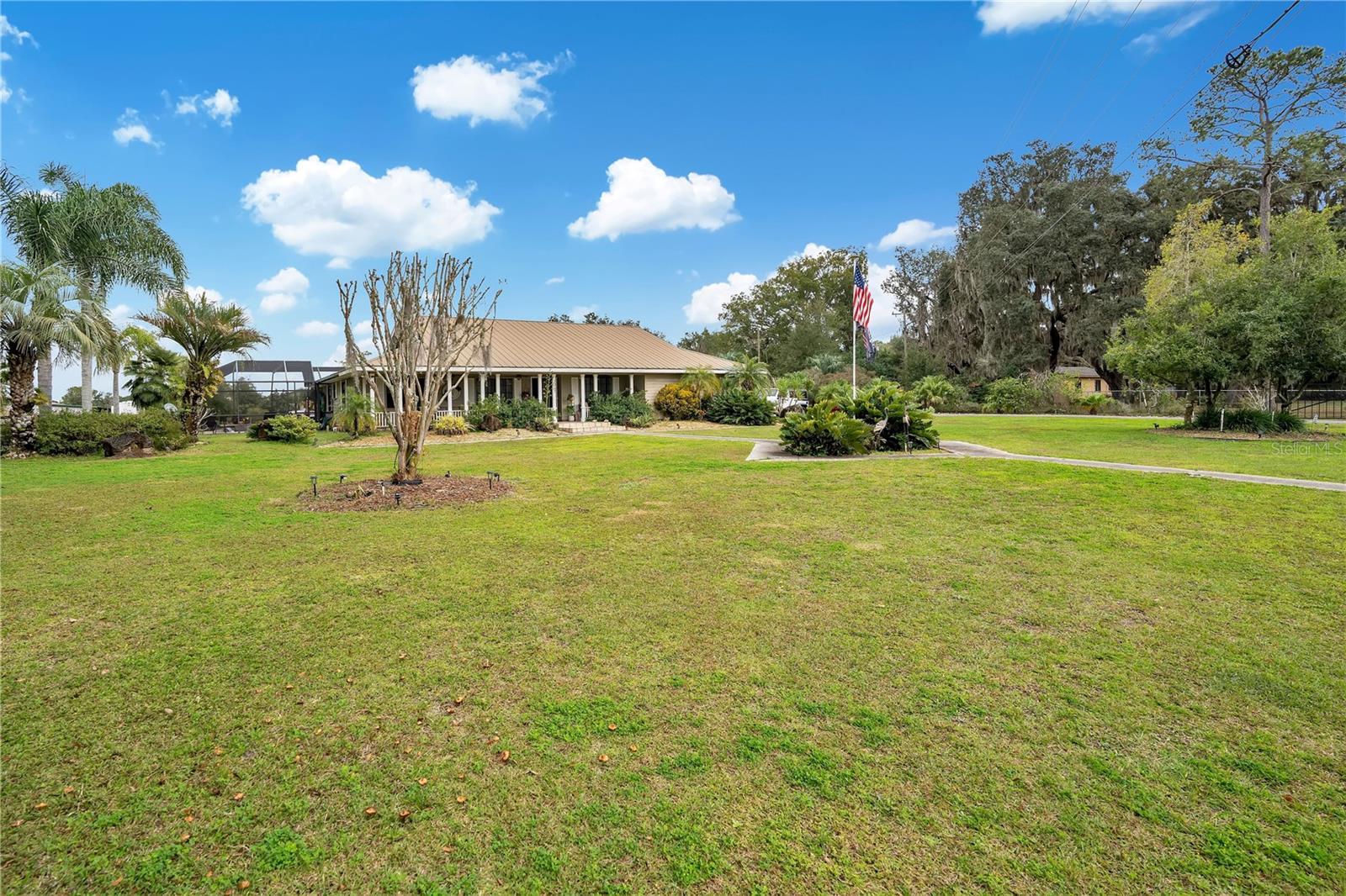 COUNTRY LIVING AT ITS FINEST! Bring all your toys and animals too. Ranch style house sitting on 10+ acres on Lake Juanita, a private 67-acre lake with boat dock. Minutes from Lake George, the St. Johns River and Crescent Lake, a fisherman heaven. Property has citrus trees, Florida pear trees, plums, persimmons, figs, bananas and grapes. Rows of Magnolia trees have the potential for extra income. Gardener's dream is a big shade house with irrigation and a planting shed to plant and grow whatever you desire. The home has been well maintained. The large eat in kitchen, dining room and great room have high ceilings and amazing lake views. Kitchen has granite countertops with travertine backsplash. This home offers great outdoor living as well, custom built saltwater pool with waterfall, completely functioning outdoor kitchen and a hot tub that sits amongst a tropical setting, while all being enclosed in a screened in Lani. Step out of the Lani onto large paver patio and an undercover grilling station. Out back you will find the coziest little cottage with a screened in front porch to enjoy the sunsets over Lake Juanita. Behing the cottage is a stand-alone 2 car garage for additional parking. Also in the back is a large garage/workshop where you can fit about 6 to 8 cars, toys or what you imagine. Behind the garage is an extra-large carport where you can park your RV. This property has so much to offer, too much to list. A picture is worth a thousand words so be sure to check out all the photos and the drone video of the home interior and the property. AC/heat pump is 2 1/2 years new, the extra-large water compressor for irrigation was replaced last year and the water softener just had its 5-year service.