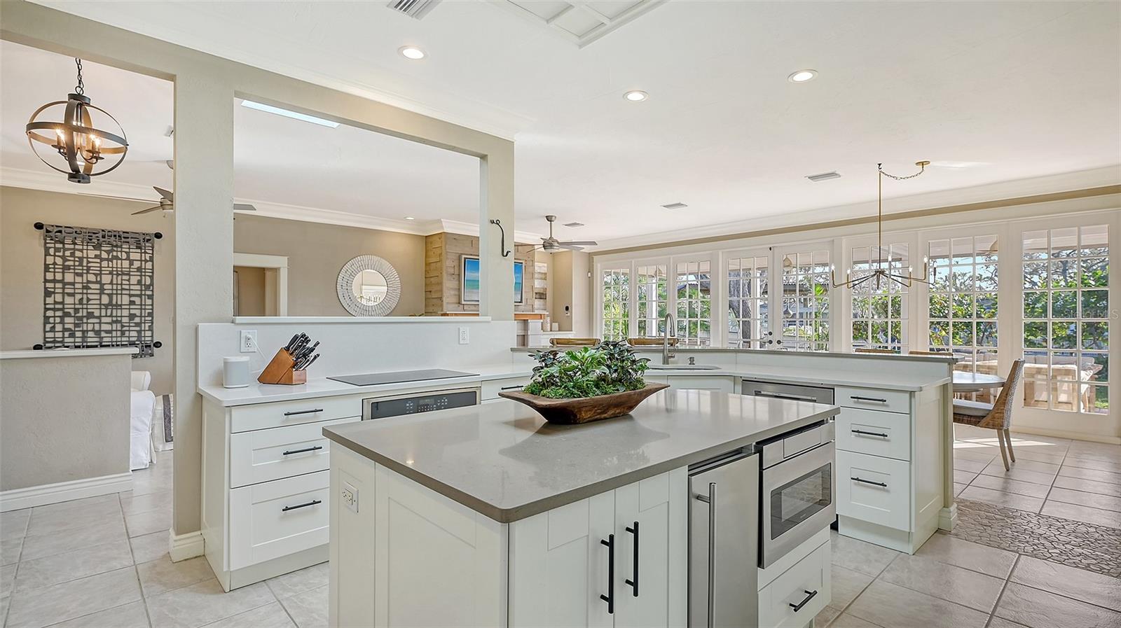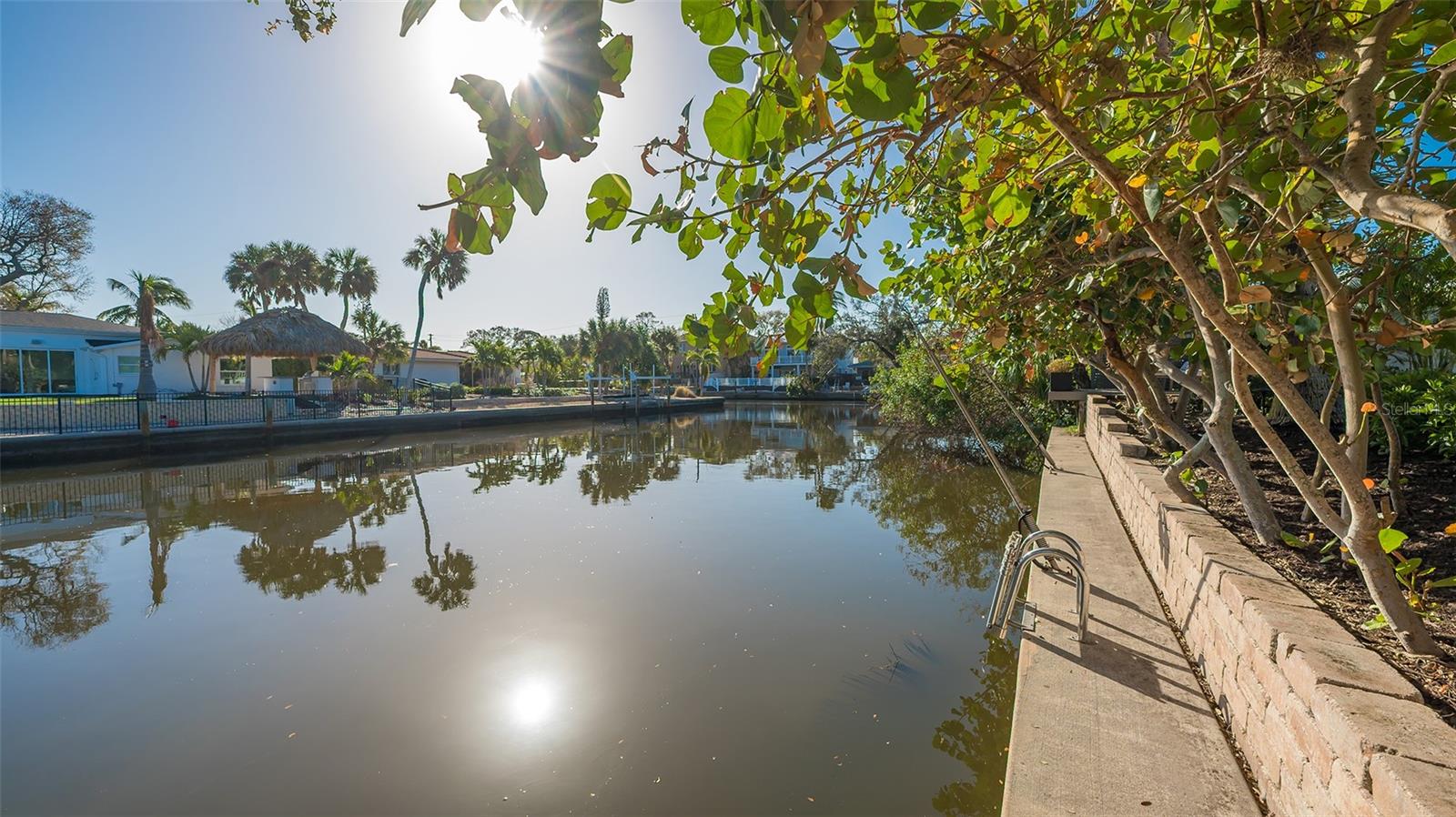 Nestled at the end of a quiet cul-de-sac on a deep-water canal near Siesta Key Village, this beautifully updated home blends luxury, comfort, and effortless coastal living. A bright, open layout welcomes you with higher ceilings and expansive windows that frame tranquil water views and lush tropical foliage, capturing the true essence of island living. The chef’s kitchen features gleaming quartz countertops, premium appliances, and abundant storage, while the inviting living room is centered around a cozy gas fireplace, which adds warmth, ambiance and creates the perfect setting for relaxing evenings or entertaining guests. Outdoors, the property shines with a solar-heated pebble-tec saltwater pool, lush tropical landscaping, and a private backyard overlooking the canal. Boaters will appreciate the grandfathered boathouse, 10,000-lb lift, refreshed decking, and easy 15–20 minute access to open water along the Grand Canal. An outdoor kitchen area with a barbeque grill makes waterfront dining effortless, while the convenient outdoor bathroom provides easy access for pool days and boating adventures. Inside, the desirable split floor plan includes three bedrooms, highlighted by a sun-filled primary suite with a lovely bath and custom closet. A separate office, den, or potential in-law suite—with its own exterior entrance and plumbing access—adds exceptional flexibility for guests, family, or work-from-home needs. Looking for an investment opportunity? This home offers excellent potential for desirable monthly or long-term rentals in a high-demand waterfront location just minutes from Siesta Key Village. The versatile layout—including the option for a private-entry suite—creates potential for additional income, making it ideal for buyers seeking both personal enjoyment and strong rental performance. French doors in all canal-facing rooms create seamless indoor-outdoor flow, inviting you to embrace Florida’s laid-back lifestyle. With its unbeatable combination of privacy, convenience, and coastal charm—plus world-famous Siesta Key Beach just minutes away—this home offers a rare chance to own a slice of paradise.